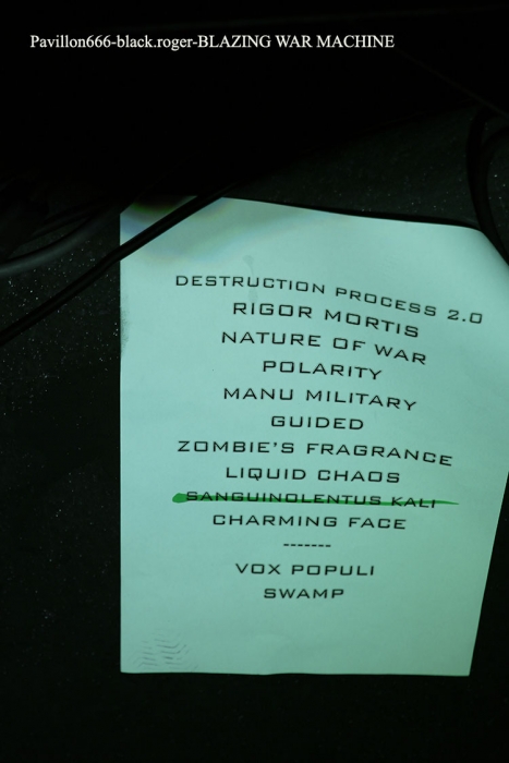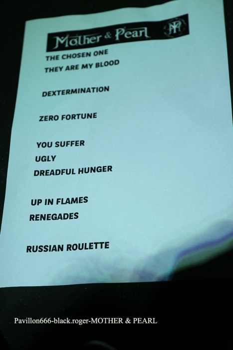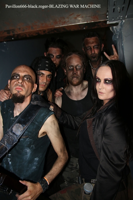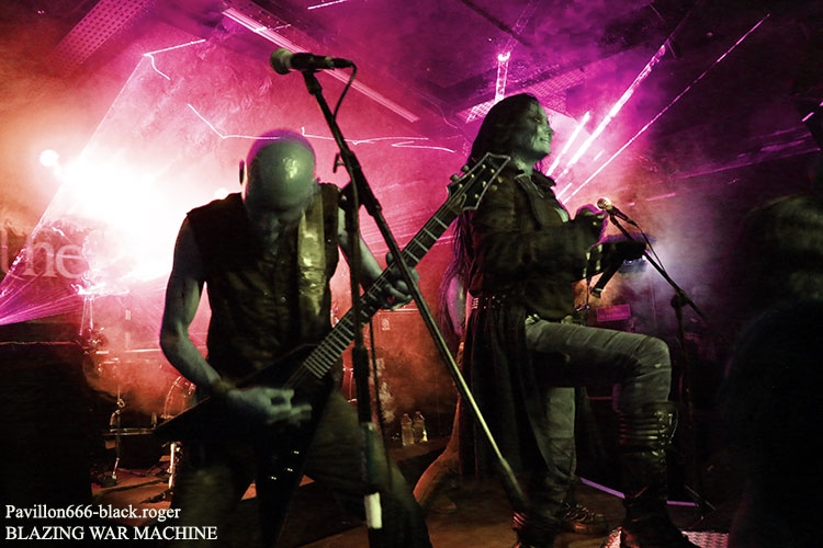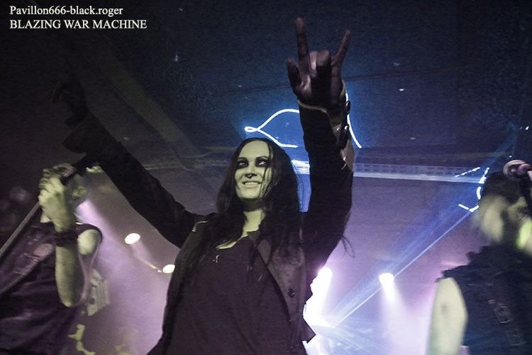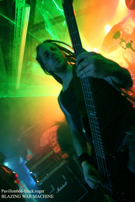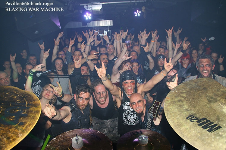 On commence à fond les « cannettes » avec le rock/metal en fusion (mais pas de confusion) de FACE 2 FAKE venant de Villeurbanne et qui nous présente son nouvel EP « acte II ». Alors inutile de se voiler la face, ni de se boucher les oreilles, nos lascars ne peuvent nier leur grande influence appelée Rage Against The Machine. En fait ils dépoussièrent avec énergie, savoir- faire et charisme la scène metal/hip-hop et cela leur va bien, très bien même. Les envois font mouche, les riffs accrochent et le chant rappé est bien mené par un gars qui a tout compris au style et sa démonstration scénique qui nous interpelle. Merci Face 2 Fake vous revenez quand vous voulez on aime. MOTHER & PEARL n’est pas venu ce soir au Rock n’Eat pour enfiler des perles (sic), mais pour nous mettre un « direct in your face » avec doigté, facilité et puissance de feu au taquet. Avec notamment la sortie récente de leur second album « psycho thrill », les Lyonnais semblent vouloir monter d’un cran à chaque concert donné auquel j’ai pu assister. Une bande de potes il me semble qui nous montrent en live une certaine complicité idéale afin de nous proposer un metal accrocheur, puissant, travaillé, aux débordements extrêmes bien souvent. Parler de metalcore en ce qui les concerne serait trop réducteur, parlons plutôt de metal moderne avec des musiciens qui ont apporté, chacun à leur façon, leurs influences allant du metal rageur au hardcore furibard sans occulter un côté mélodieux sous-jacent. Le public ne s’y trompe pas et réserve un accueil plus que chaleureux au groupe. Un titre avec en guest le chanteur de Face 2 Fake et un dernier titre attendu « russian roulette », emballés nous sommes ! Set-list en photo. Les membres de BLAZING WAR MACHINE débarquent sur scène enfin au milieu des lasers et des jets de fumée dans une ambiance apocalyptique et ça va être la guerre ce soir dans un Rock n’Eat chauffé à blanc, il fallait s’y attendre. Même si le port de Marseille était bouché par une sardine géante, Franky, Fab, irina, Izakar, Phil et Adam se sont retrouvé ce samedi soir à Lyon afin de nous faire goûter encore une fois à leur métal-indus extrême et symphonique. Et dans l’enfer des lights et d’un son à décorner un taureau en rut nous avons dégusté dans tous les sens du terme. Musiciens expérimentés, compositions recherchées, puissance exacerbée et présence scénique incroyablement forte et malsaine nous ont littéralement collé au plafond. Irina et ses acolytes ont su nous prendre à la gorge dès le début du set et la pression ne retomba à aucun moment. Ce fus la folie dans un public aux anges (au diable pardon) public qui s’est défoulé à l’aide notamment de circle-pits et autres wall of death, ambiance quoi ! Le groupe semble prendre de l’ampleur et ce n’est que mérité vu leurs dernières prestations comme ce soir à Lyon où, leur prestation a fait un malheur ! Soirée mémorable au final dans notre Rock n’Eat préféré. Merci aux trois groupes en lice, aux organisateurs et au public déchaîné pour l’ambiance instaurée |