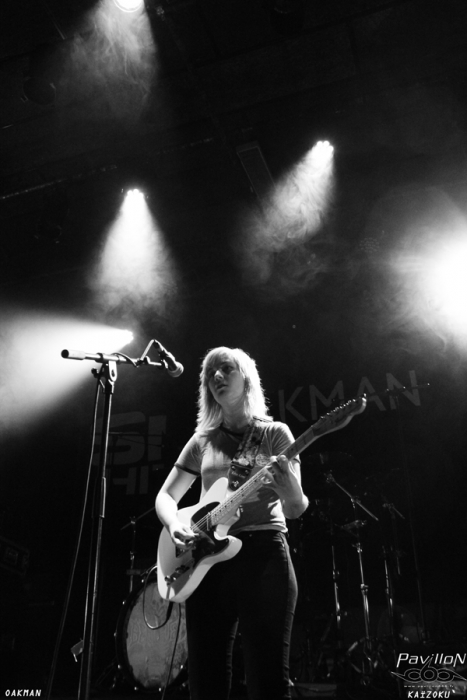 Oakman a ouvert la soirée avec un court set. Le trio lyonnais, petite sucrerie de la soirée, navigue entre délicatesse et fougue, romantisme et agressivité, toujours dans une ambiance pleine de douceur, sans heurt. La musique d'Oakman est émotionnelle, presque comme une voix intérieure. La voix de Marine, telle celle d'un ange lumineux est portée par de longues nappes musicales à la guitare et à la basse entrecoupées de riffs plus coupants. On sent que ces trois musiciens cherchent ce qui fonctionne dans la musique actuelle, tout en restant eux-mêmes. Un défi qu'ils paraissent relever.