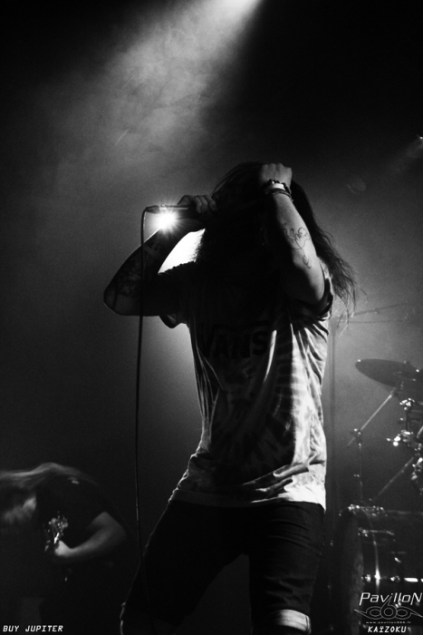Buy Jupiter devrait être une bonne entrée en matière pour ça. Une envie rageuse de jouer bridée par des soucis de balances qui ont l'air de durer des heures leur donnera encore plus de patate dès le début du set, bien trop court mais explosif à souhait. Forts de leur énergie débordante et de leur passion pour la scène, ces cinq Lyonnais font monter la chaleur du CCO d'un cran. On ne tient plus Pi, le chanteur, qui faisait les cents pas sur la scène le temps des derniers réglages et qui nous fera une petite démonstration d'escalade pendant le set. Buy Jupiter tourne beaucoup depuis leur formation avec un métal sur fond d'histoire intergalactiques qui passe bien de partout, simple et efficace.