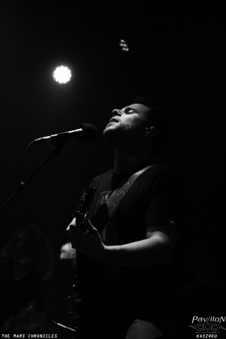 On se rapproche un peu de la Terre avec The Mars Chronicles et l'énergie se pose. On se retrouve ici à mi-chemin entre le post-rock atmosphérique et le métal progressif pour cette soirée hétéroclite. Un mélange marqué surtout par la voix mélodique de Devy Diadema et des nappes lourdes en arrière plan. Après avoir écumé nombreuses scènes à travers l'Europe et partagé des affiches avec des groupes comme Orphaned Land, Klone ou encore Dagoba depuis 2012 The Mars Chronicles viennent de sortir leur tout premier album, « Origins » en mars.
