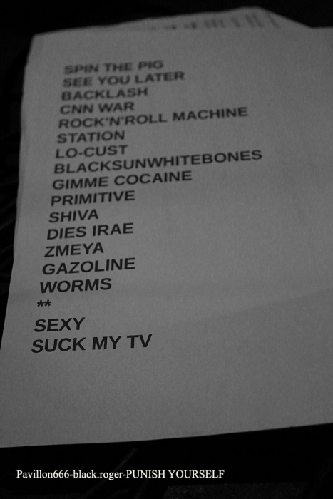 Et sur scène ça « tabasse » un max, le groupe vous prend à la gorge et ne vous lâche plus à l’aide de nouveaux titres comme « spin the pig » et « blacklash », mais aussi avec des anciens ayant fait leur preuve tels « primitive », « rock n’roll machine », « worms » et autres « shiva only is god » et « satan buddies ».