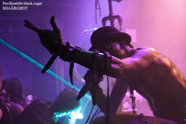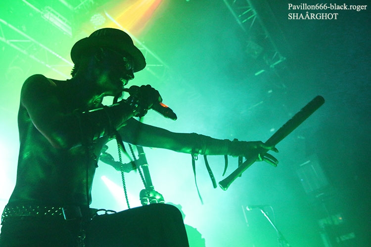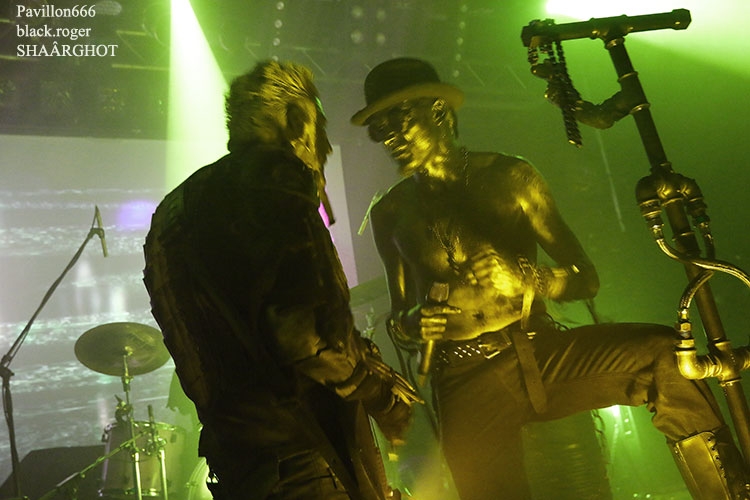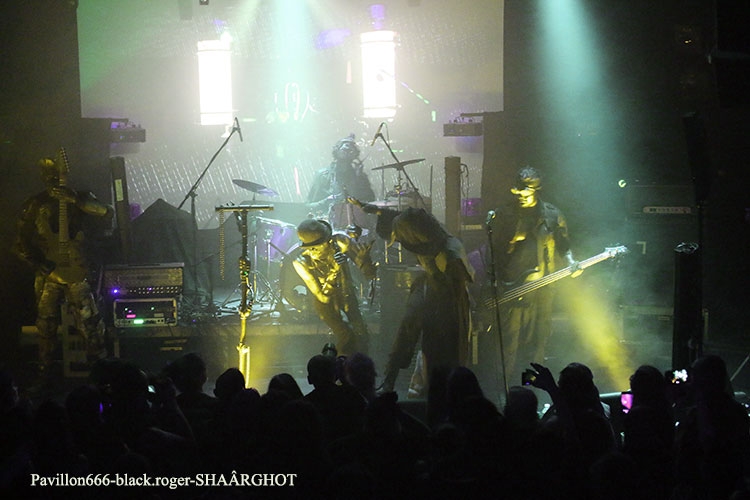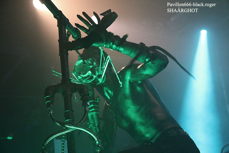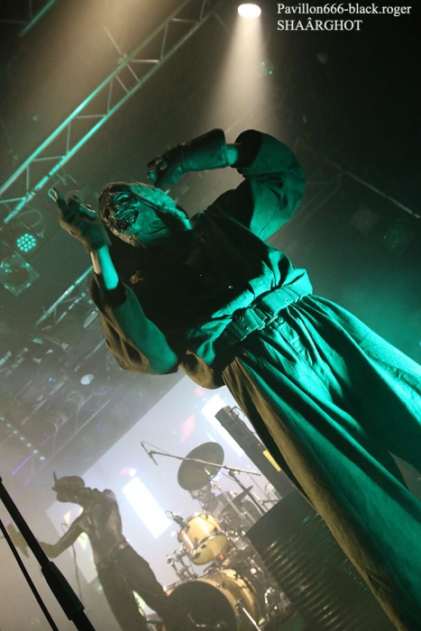 C’est SHAÂRGHOT qui ouvre le petit bal electro-dark metal du vendredi soir, et le moins que l’on puisse dire c’est que les personnages-musiciens de cette entité malsaine vont nous en mettre plein la vue (et les oreilles) dès les premiers titres ce qui met tout le monde d’accord, c’est sans appel !