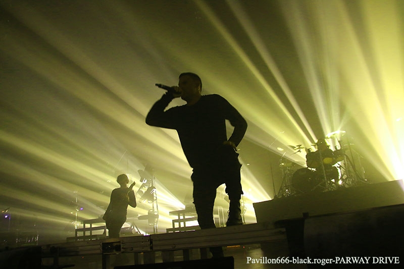 Il ne fallait pas être en retard ce mardi si vous vouliez voir les groupes d’ouverture, portes à 18 heures et première formation sur scène dès 18 heures 55 ! Ce sont donc les Américains de l’Ohio, MISSMAY I qui auront la lourde tâche de lancer le premier son de la soirée. Déjà vu il y a peu à Lyon au Warmaudio, ce combo n’avait pas convaincu. En sera-t-il autrement ce soir ? Et bien pas tout à fait en ce qui me concerne bien que la grande scène du radiant donne une autre dimension à leur prestation, je n’ai pu adhérer outre-mesure. Bien que détenteur de 6 albums en 11 ans d’existence dont le petit dernier « shadows inside » (2017) ce quintette malgré des mélodies et refrains accrocheurs a de la peine à convaincre et à se faire une place dans la scène metalcore qui fourmille de groupes plus ou moins valable depuis quelques années. Avec EMMURE du Queens-New-York aux « states », nous entrons dans une autre dimension metal et « core ». Le leader charismatique du groupe Frankie Palmeri nous propose toujours ses vocaux rappés et ses musiciens nous interpellent avec des envois souvent dissonants, graisseux, mangeant à tous les râteliers même celui du deathcore démolisseur de neurones. Malgré cela, malgré cette « originalité » les fans du groupe ne semblent toujours pas être légions. Leur dernier enregistrement de 2017 « look at yourself » n’a pas rameuté des troupes et en live c’est pareil, dommage ! L’habit ne fait pas le moine pourrait-on dire à propos des Australiens de THY ART IS MURDER. Malgré un décorum plus black que hardcore, ceux de Sydney naviguent toujours entre deux eaux, entre death et deathcore. Avec les aller-retour du frontman dans la formation rien n’a vraiment changé. On dirait que Thy Art Is Murder travaille (joue enfin quoi !) à la force du poignet ? Certes la voix caverneuse impressionne, le batteur défonce tout et les riffs sont lourds dans l’ensemble. Mais la même recette (qui n’est pas très originale) nous est servie d’albums en albums depuis 12 ans même avec le dernier opus en date « dear desolation ». Alors désolé les gars, l’immense back-drop et les capuchons ne font pas tout en live ! La tension monte, monte, est palpable dans le Radiant durant les minutes qui précédent la venue de PARKWAY DRIVE qui est très, très attendu, cela se voit à l’agitation dans un public qui est venu prendre sa dose de metalcore qui sort du lot. Car oui, les questions fusent de toutes parts, y-aura-t-il de la pyrotechnie, par quel titre le set va-t-il débuter etc, etc… Après les coups de semonce de l’intro la scène s’embrase de mille étoiles et c’est avec « wishing Wells », « prey » et « Carrion » que débute le show, car show il y a avec nos Australiens préférés. Ces Australiens formés en 2002 qui font actuellement un carton avec leur dernier opus « Reverence » objet de leur tournée actuelle cqfd. Parkway Drive ne s’est pas enfermé dans un style metalcore/modern metal, il a su puiser aux sources du heavy pour les mélodies et y ajouter le punch du hardcore, un certain tranchant de thrash aussi. Puissance et feu se percutent sans cesse en nous emmenant parfois sur des chemins ésotériques et épiques à l’aide de paroles mémorisables reprises en chœur par un public aux anges ce qui n’exclue pas des effusions physiques dans les parties « mur du son ». Parkway drive a donc tout comprit au film du metal actuel et sa réussite n’est pas « galvaudée », mais méritée. Alors, inutile de vous dire que leur concert de ce Mardi à Lyon a satisfait un large public metal c’est évident. Un seul mot pour cette soirée spectaculaire, merci § Merci à la SAS Concerts pour l’accréditation/pass photo accordée à Pavillon666 , merci à Avocado Booking et le Radiant Bellevue de Caluire, ce fut magique ! |