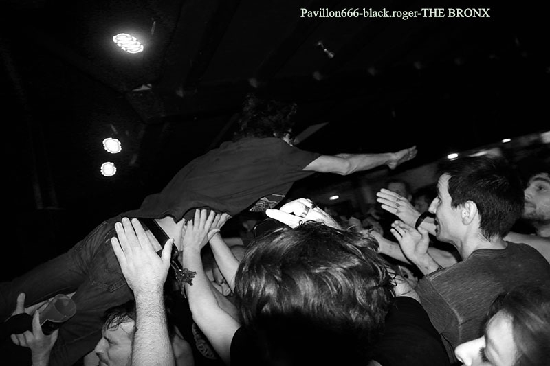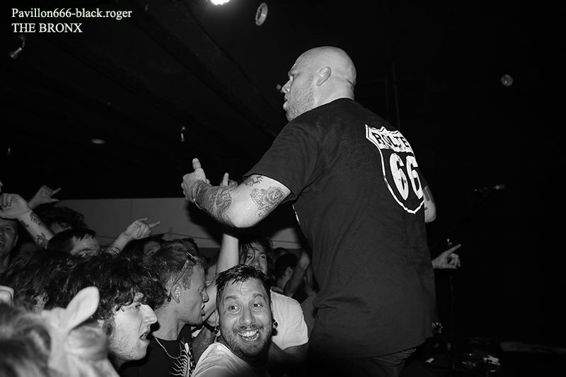 Effectivement dès le premier titre de THE BRONX le punk/hardcore Californien en vogue en ce moment projette tout le monde contre et dessus la scène dans une orgie de slams, bras levés et autres efusions physiques dans la joie et la bonne humeur, dans la sueur aussi. Dress-code au bout d’un moment, tout le monde torse nu, sauf les filles cela va de soi, quoique ?