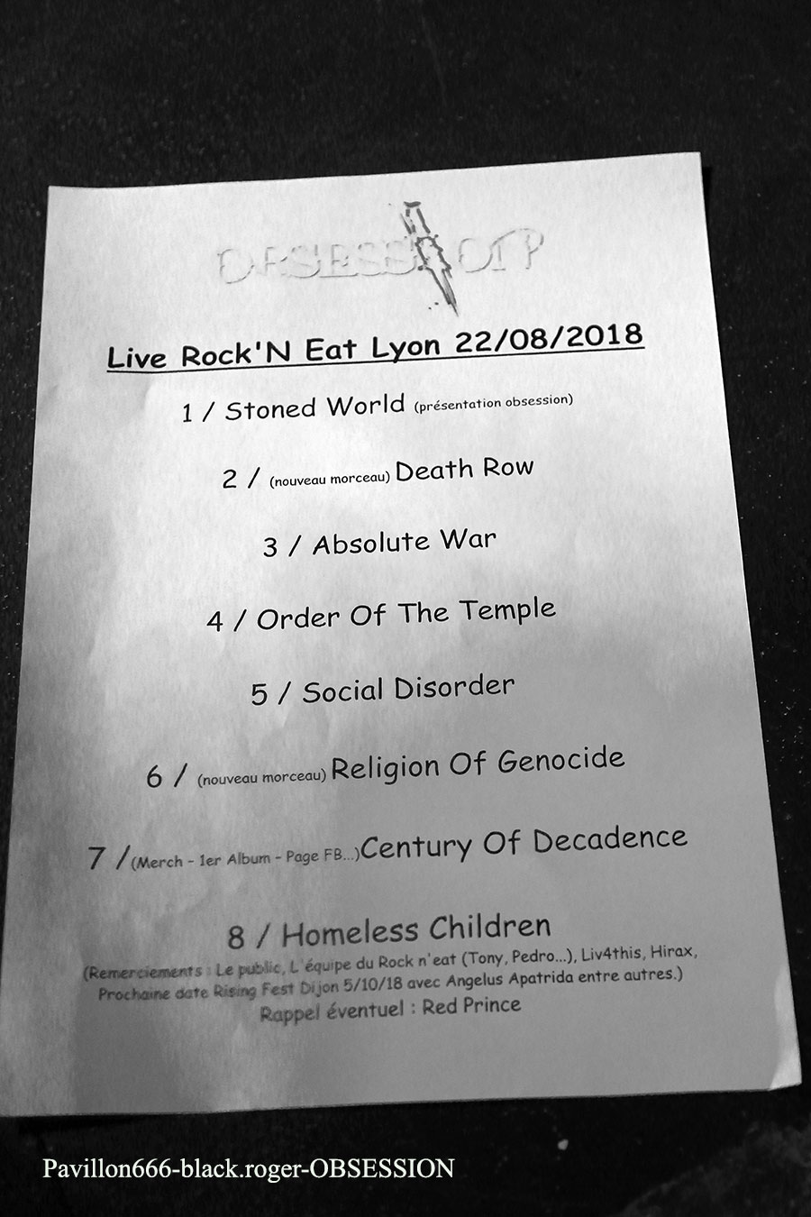 Et une légende du thrash Californien, une, au Rock n’Eat Live de Lyon ce Mercredi 22 Août. Il s’agissait bien sûr de HIRAX et de son inénarrable frontman Katon W. De Pena. Et afin d’ouvrir cette chaude soirée qui s’annonçait, ce sont les Jurassiens d’OBSESSION qui ont effectué le job sans problème. Alors thrash à tous les étages ce soir, en sous-sol plus précisément dans l’underground du quai Arloing, que la fête commence !