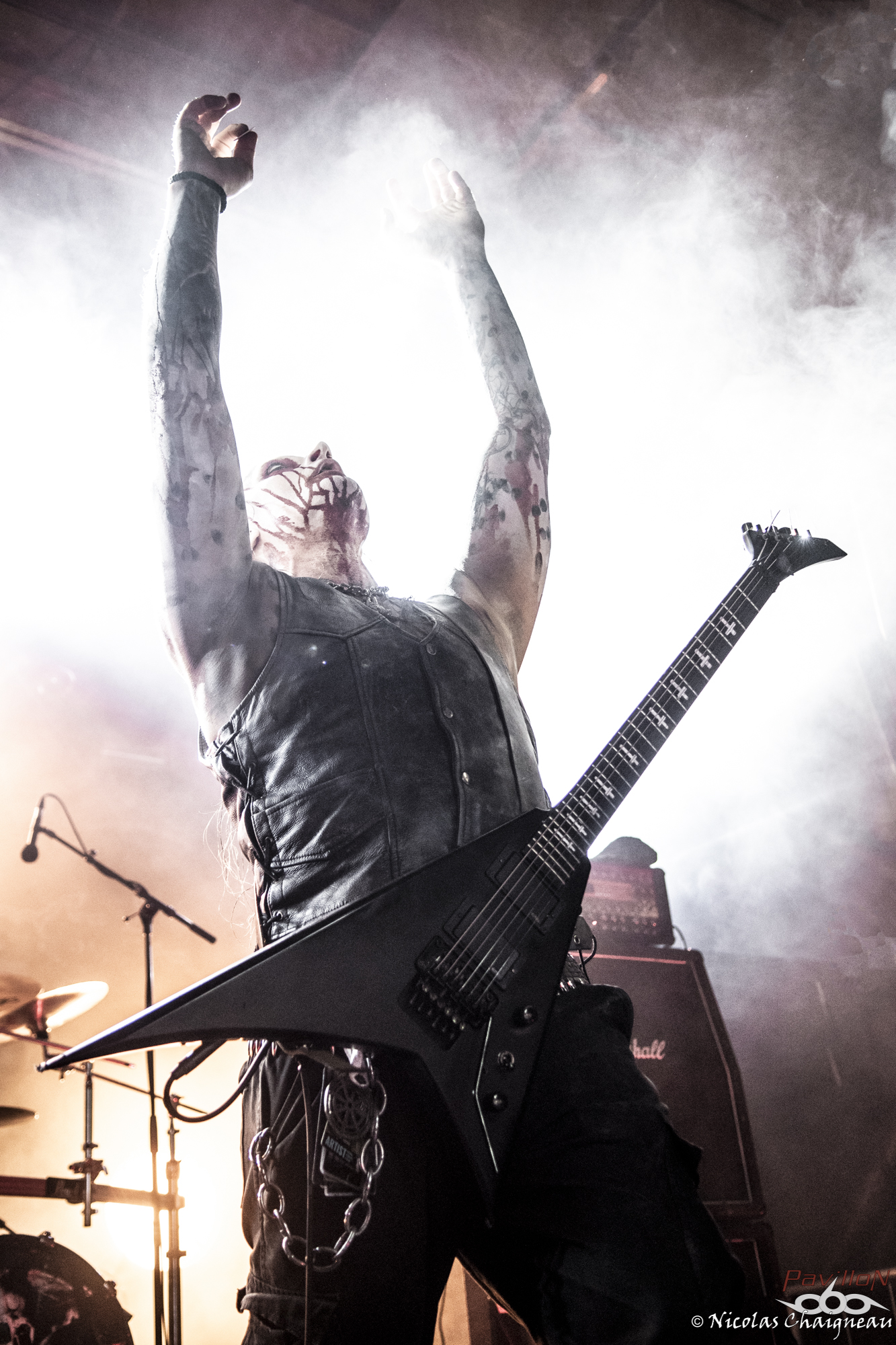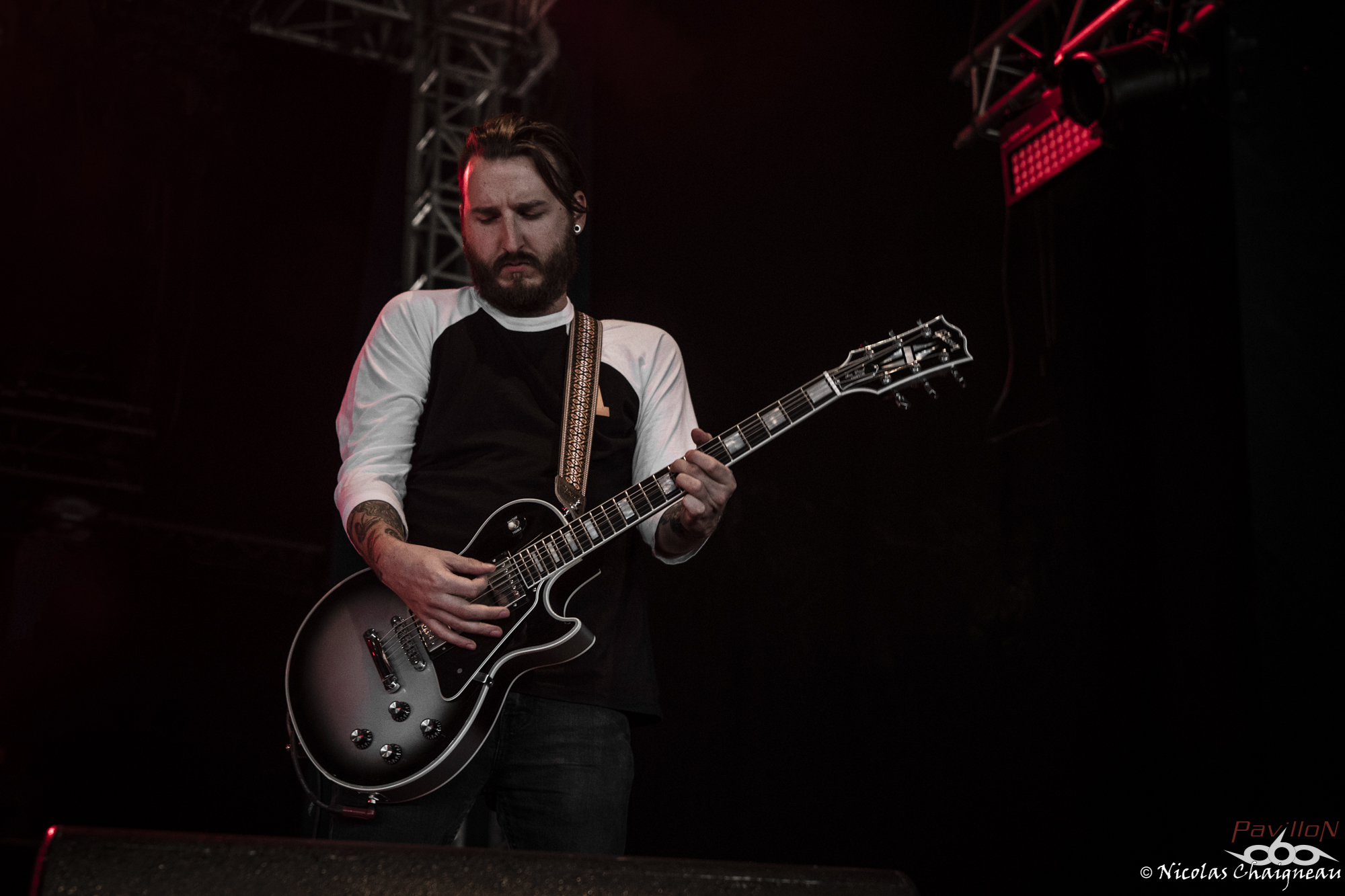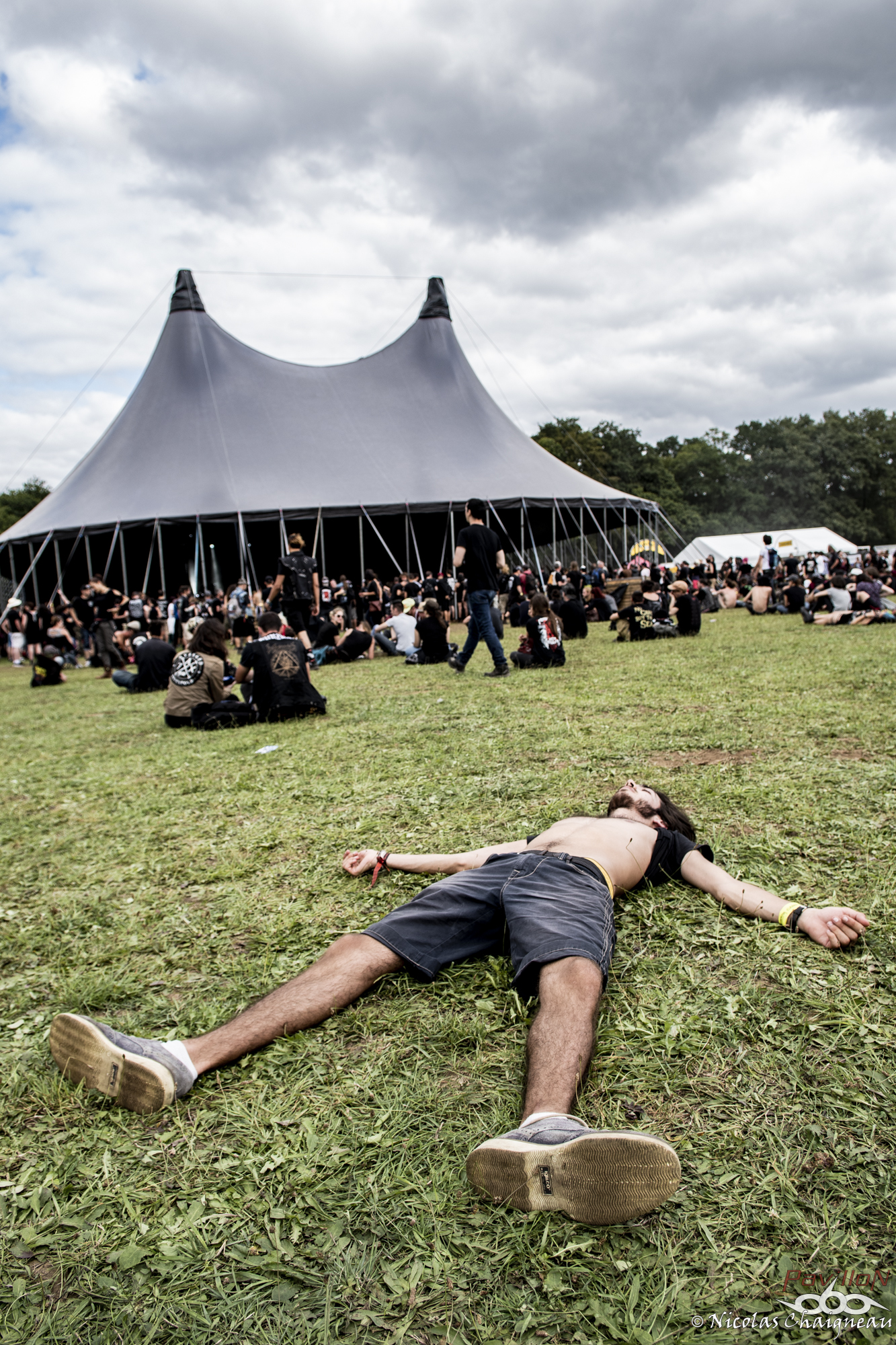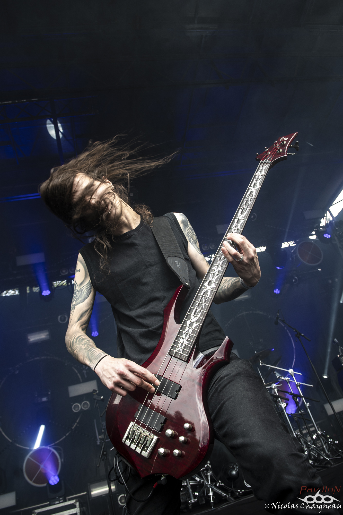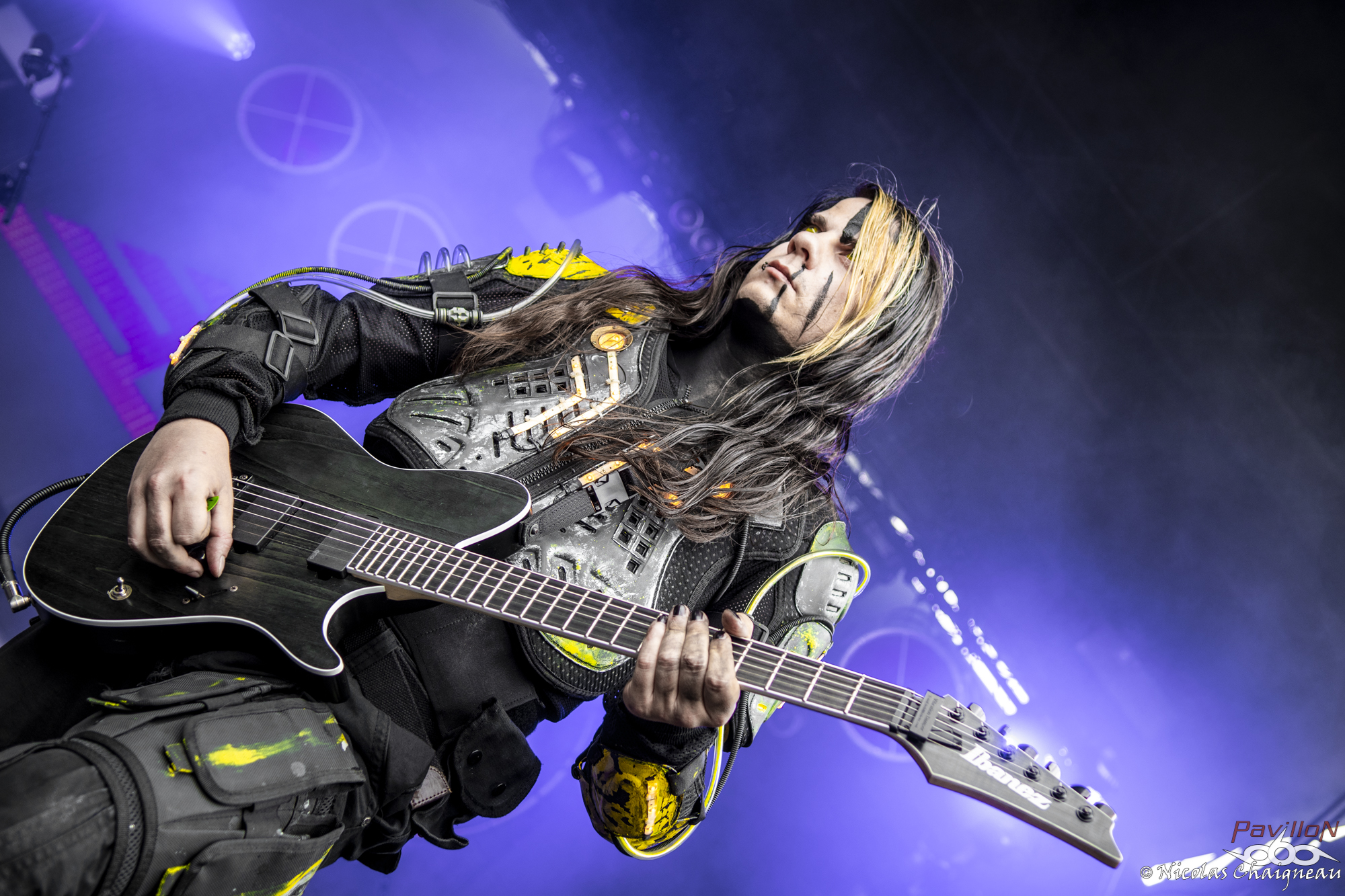 Après un rapide tour du site que j'approfondirai plus tard (il n'a quasiment pas changé), je me dirige vers la scène principale, la "Dave Mustage" pour voir The Lumberjack Feedback. Les lillois et leur sludge teinté de doom ont la tâche délicate d'ouvrir les festivités... et s'en sortent plus que bien ! Le groupe aux deux batteurs attire les premiers festivaliers. Pas très adepte du chapiteau, je décide d'aller à la petite Supositor Stage plutot que devant la Massey Ferguscene. Après tout, c'est un festival OPEN AIR ou non ? J'ai la nostalgie des éditions plus anciennes, je sais. Toujours est-il que j'y découvre Ende, au black ambiancé efficace. Le tout premier slam de ces trois jours a lieu pendant ce set, sorti d’un public encore en train de se chauffer mais motivé et dynamique. Si Ende était passé plus tard, l’ambiance aurait été très prenante dans le public, j’en suis certain. Il est très vite l’heure de retourner sous le grand chapiteau violet de la Dave Mustage voir les punkettes de Maid of Ace. Les quatre frangines britanniques viennent nous sortir un concert de punk… mollasson. Personnellement je n’ai pas accroché, il manquait un truc comme un peu de rage plutôt que seulement le look punk… ou je ne sais pas moi, de l’envie émanant des membres ? A part la chanteuse, disons le clairement les autres ont l’air de limite se faire chier sur scène, à part lors de petits éclats de pèche qui du coup semblent n’être que du jeu de scène forcé. On m’avait vendu ça comme autrement plus péchu et je repars déçu de cette performance. Par contre les Allemands de Cypecore venus sur la Supositor m’ont botté le cul. A mi chemin entre l’indus et le death, leurs morceaux nous mettent de bonnes claques. Le visuel n’est pas délaissé non plus, les membres était habillés d’armures de motocross noires couvertes de néons, maquillés au cambouis. Leur univers post-apocalyptique est bien amené sur scène et porté par un double charisme : celui puissant et dynamique du chanteur juxtaposé à celui froid et statique du guitariste et du bassiste. Sous le soleil breton le public se déchaine entre pogos et slams à tout va. D’ailleurs j’y fais aussi un tour, slam compris, bien entrainé par cette excellente découverte. Je ne perds pas une miette du show. Pas de doute, le Motocultor a bel et bien démarré ! L’ambiance retombe un peu pour le passage de Svart Crown. Non pas parce que le public n’apprécie pas (bien au contraire !) mais parce que les tropéziens envoient du lourd, du puissant qui résonne dans le sol. Peu de slams dans ce public, plutôt un grondement général d’appréciation du moment, parsemé de quelques pogos assez localisés. Même si Svart Crown est à la confluence des genres, on est plus proche d’un concert de black que de death dans le ressenti global. Pour une fois je ne vais pas me plaindre du chapiteau : dur d’imaginer un tel set en plein soleil. De retour devant ma petite Supositor Stage préférée, j’y découvre Nesseria. Bon, personnellement leur post hardcore n’est pas du tout ma came mais pour les festivaliers c’est un défouloir certain. Ce n’est pas le groupe pour lequel on verra le plus de monde assis dans l’herbe à regarder la scène mais je pense qu’ils ont leurs chances pour concourir au plus long pogo continu du weekend. La poussière commence à bien se soulever devant la petite scène et les vigiles qui y sont assignés commencent à avoir fort à faire pour rattraper les slammeurs qui sortent de nulle part. Mon estomac me rappelle à l’ordre : festival ou pas, il est temps de me sustenter ! Pour cela je dois aller chercher des tickets restauration… ce qui veut dire « attendre ». Attendre, oui. Une heure de queue qui n’avance pas pour récupérer les précieux sésames qui me permettront de satisfaire mon appétit. Je découvrirai au cours du weekend que je n’y suis pas allé au mauvais moment comme je le pensais mais que c’est globalement le temps normal. Un mauvais point pour l’organisation qui énerve tout particulièrement les festivaliers déjà assez remontés contre ce système en général (« à quand les bracelets cashless ? » entend-on un peu partout) Muni des précieux coupons orange, je me dirige vers l’un des food trucks présents cette année. Comme je sais que je finirai forcément avec une spatziflette de chez Avale et une galette-saucisse du festival à un moment ou un autre, j’opte pour le libanais… que j’ai ensuite fortement recommandé autour de moi. Il est bon de constater que l’intégration de food trucks au festival a été faite avec des commerçants proposant des produits de qualité, ça c’est un bon point ! En voyant l’attente pour le merchandising officiel, je décide par contre de ne pas m’attarder maintenant parce qu’à vue de nez j’en aurais de nouveau pour une grosse demi heure. Une bonne nouvelle pour le festival qui écoule comme des petits pains les préventes de la prochaine édition. Toutes ces péripéties m’ont tout de même fait rater le concert de Serenius et je ne vois qu’une infime partie de celui de Rendez-Vous, un show un peu hors du festival. Le quatuor plongé dans la pénombre nous produit un son électro ambiancé complètement décalé et étrange qui laisse le public à la fois perturbé et en un sens conquis… même si les festivaliers retournent très vite au metal qui les a menés à St Nolff ! D’ailleurs c’est le moment pour Devildriver de prendre possession de la Dave Mustage… et pour moi de subir pour la première fois du festival les restrictions du nombre de photographes autorisés dans le pit. Pas de photos de Devildriver dans cette chronique donc, tant pis ! J’ai été chanceux pour l’instant, on verra pour la suite. Toujours est-il que le death américain chope le Motocultor par les tripes pour le mettre sens dessus dessous ! Durant cette quasi heure de show on 