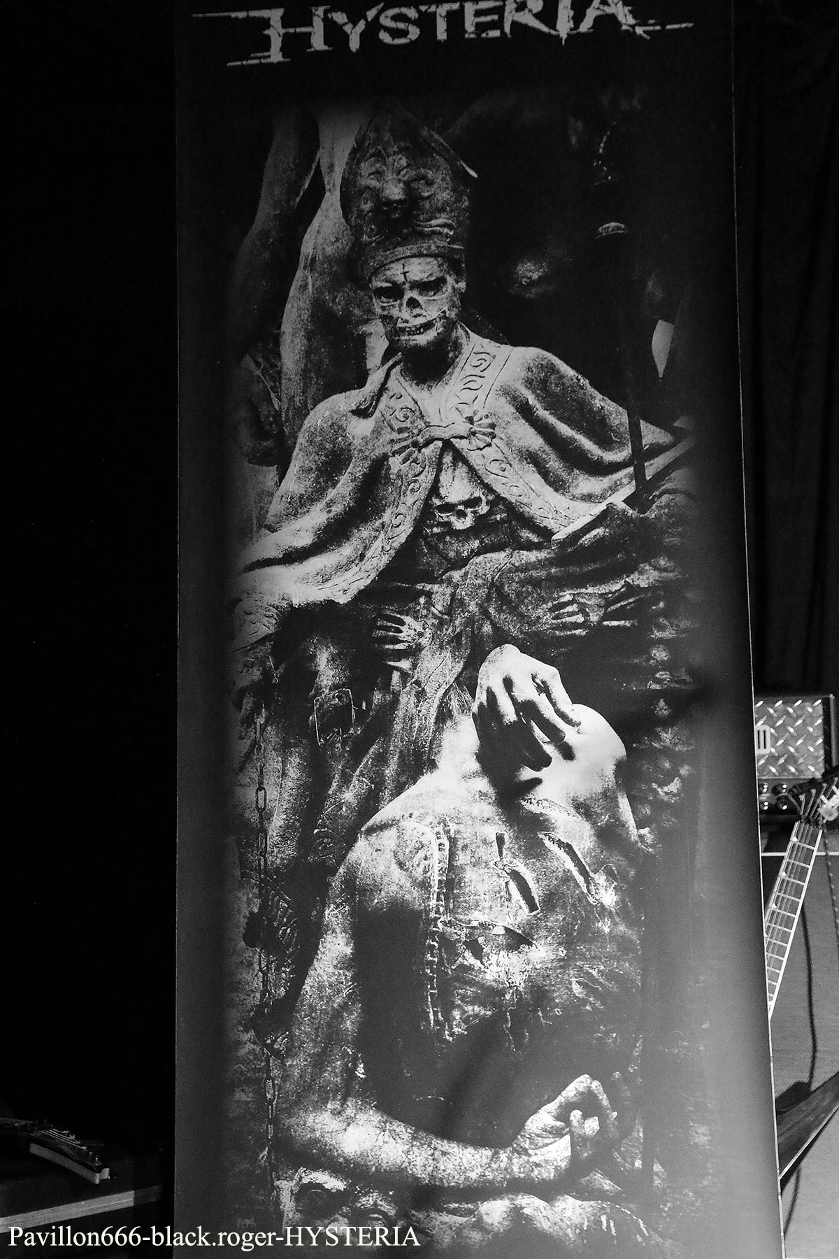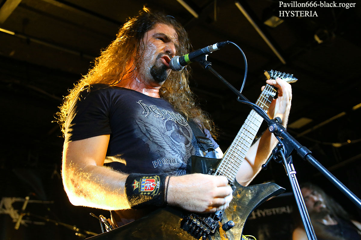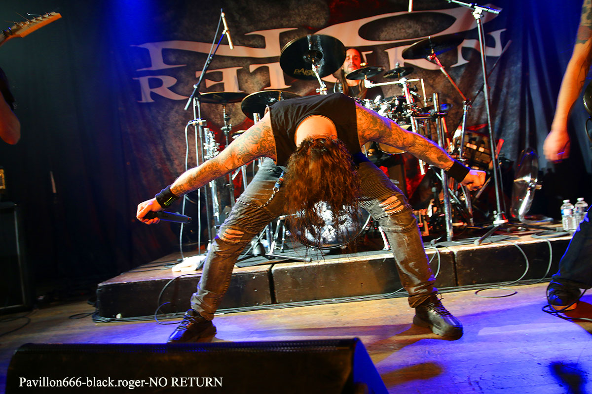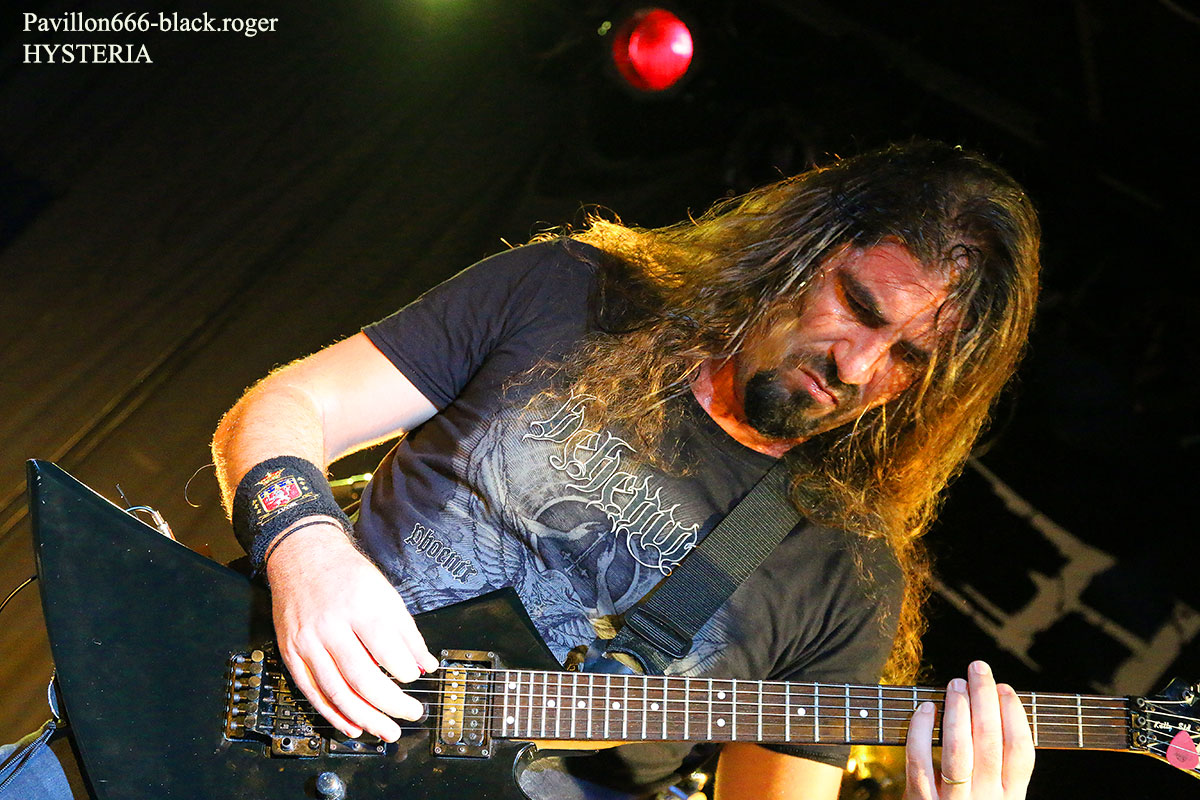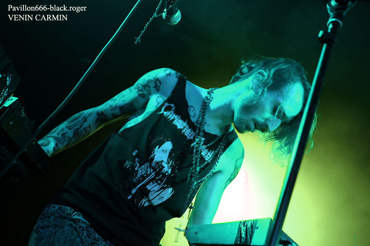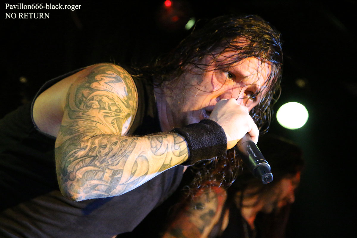 Black.Roger et Der Lehrer de votre webzine préféré se sont donc rendu sur les lieux afin de vous conter par la rubrique et les photos ce week-end pas comme les autres. Voici donc tout d’abord le compte-rendu du Samedi 13 Octobre, bonne lecture ! BUG (par Roger). Avec un léger retard dû à des ennuis techniques, BUG monte sur scène dès 15heures 20 avec la ferme intention d’ouvrir le festival à l’aide de bon son rockcore (si,si, ça existe) et stoner à l’occasion propulsé avec brio par Jérémy, Luc, Frantz, et Thomas. Depuis quelques années déjà (2013) le quatuor n’a pas « bugé » et fait parler de lui dans le secteur Rhône-Alpes, et ce soir ils se lâchent pleinement afin de débuter ce premier Dark breath Fest avec un certain professionnalisme, rock tout simplement, bravo les gars vous avez assuré ! EAST (par Roger). Panachage oblige, c’est EAST de Lyon qui nous propose maintenant sa dérive cold-wave venant de l’Est (pléonasme ?). Le trio manie avec dextérité une certaine nostalgie aux penchants Gothic pourquoi pas ! C’est froid comme un hiver en voie de disparition et chaud comme un beat électro. Après « hula hoop » un nouvel EP arrive incessamment sous peu, alors si vous voulez aller plus loin avec eux, suivez-les ils le méritent. En attendant ils nous ont convaincu aujourd’hui sur la grande scène de la MJC de Bourg-en-Bresse. HYSTERIA (par Jean) Il est 17h 30, lorsque les Lyonnais de HYSTERIA entament leur set sur la scène de la MJC de Bourg-en-Bresse devant un public attentif et curieux à la fois, nettement plus nombreux qu'en début d'après-midi. Ce quatuor a derrière lui plus de vingt ans d'expérience, de multiples concerts et festivals, trois albums à son actif, bref un groupe solide au line-up stable. HYSTERIA pratique un black-death metal authentique et sans concession, on a pu les voir en tournée en France, au Sylak Open Air et au défunt RRF, non loin d'ici. Ils ont un lien particulier avec notre département, l'un des leurs y réside, ADIPOCERE, organisateur de l'événement, est domicilié à Bourg. Sylvain, le chanteur, a la voix qui convient, profonde, puissante et grave, il est efficacement entouré de Jérôme à la guitare, Adrien (nouveau venu) à la basse, et bien entendu Xavier, le batteur de haut niveau que chacun connaît. Le set comprend des morceaux issus du premier album, d'autres plus récents, tous appréciés par un public qui essaie de « bouger » devant la grande scène, esquisses de pogo, headbanging, de jeunes enfants munis de casques tentent de suivre le rythme sous l'oeil de leurs parents – futurs métalleux ? L'ambiance est là, c'est l'essentiel, les gens aiment ce côté sauvage, à la fois sombre et viril. Un bref solo de batterie, et la prestation d'HYSTERIA arrive à son terme, sous les applaudissements nourris d'un public ravi. On se souviendra de ces 45 minutes trop vite passées… VENIIN CARMIN (par Roger). Après le metal brutal d’Hysteria voici de la dark/new wave avec un trio venu de Lyon, VENIN CARMIN avec Lula, François, Valentine. Comment décrire leur prestation ? C’est un rouge baiser qui vous ensorcèle à l’aide de compositions acidulées sur des tempi prononcés et alourdis par une basse omniprésente (et une bassiste attirante). Deux machines en duo ou duel (c’est comme vous voulez !), un chant pétillant comme du champagne vous emmène dans cet univers gothico/glam/dark à paillettes et ne vous lâche plus ? Le show fut chaud, l’ambiance torride, que demander de plus, je ne vous fais pas un dessin. CARCARIASS (par Jean). Ce groupe originaire de Besançon a déjà une longue histoire derrière lui. Il a vu le jour en 1991, il a connu ensuite une traversée du désert de plusieurs années avant de faire à nouveau parler de lui pour le plus grand plaisir de ses fans, nombreux ici, ce soir. Certains m'ont affirmé avoir parcouru 300 km pour voir et entendre les Bisontins. Le trio francomtois, Raphaël à la basse et au chant, Pascal à la guitare et Bertrand à la batterie, n'ont plus vingt ans, mais jouent avec un enthousiasme communicatif. On est franchement heureux pour ces trois artistes qui donnent tout ce soir, au DBF de Bourg-en-Bresse. N'oublions pas qu'ils jouent dans la cour des grands, qu'ils ont participé au Hellfest 2017 notamment, qu'ils sont proches de LOUDBLAST et BENIGHTED, entre autres. Technique, progressif ou mélodique, voire heavy, instrumental, peu importe les appellations, ainsi CARCARIASS plaît à un large spectre d'amateurs de metal. Et surtout ne leur demandez pas de quoi traitent leurs textes ! Ni politique, ni religion, c'est clair… Batterie hyperpuissante, voix inimitable, riffs redoutables, comme un rouleau compresseur, c'est cela, CARCARIASS. « Quelle maîtrise, pour leur âge ! », expression entendue au fond de la salle, qui résume bien le spectacle, le cadeau, offert par les Bisontins aux Bressans et aux autres...Et ce qui ne gâte rien, un frontman, Raph, un homme chaleureux et plein d'humour. Leur prestation inoubliable aura duré 50 minutes. Un rappel ? Non. Dommage. NO RETURN (par Jean). A partir de 22 heures et pour plus d'une heure, le groupe de thrash connu depuis près de trente ans dans l'ensemble de l'hexagone et au-delà, à savoir NO RETURN, aura la lourde tâche et l'honneur de retenir dans la salle les spectateurs qui ont tendance, à cette heure tardive, à quitter la MJC. Par ces nombreuses adresses au public, Mick le chanteur charismatique, comme on dit un peu facilement, réussira à tenir les fans de death-thrash en haleine jusqu' à la fin du concert. Il convient de présenter la formation, fondée en 1989 dans le Val d'Oise, qui a subi de profonds remaniements. Le line-up actuel du quintette comprend Joël Barbosa à la batterie, son frère David à la basse, Alain Clément et Geoffroy Lebon à la guitare, et depuis 2013, Mick au chant. NO RETURN a joué au Hellfest, au Summer Breeze en Allemagne, pays où 