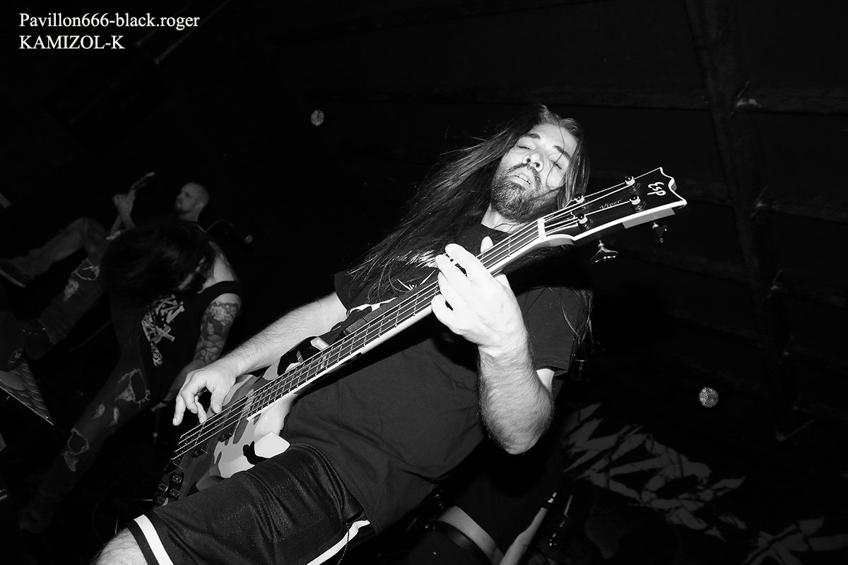 Le Dimanche soir, les organisateurs prévoient en général de débuter les concerts un peu plus tôt pour votre confort cher public. Or ce soir avec une montée sur scène dès 19 heures 30 nos amis locaux de KAMIZOL-K ont fait les frais de cette disposition car le public était bien maigre pour les accueillir, ce public qui arrivera en nombre … plus tard ! Mais qu’à cela ne tienne, ceux de Kamizol-K ne se sont pas démonté et ont assuré leur show très chaud comme sil la salle était « blindée », chapeau bas les amis ! Alors, pour ceux arrivés à la bourre et pour ceux qui ne connaissent pas encore, je vais vous dire que ce groupe composé d’un duo vocal agité et de musicos agressifs et tranchants ne fait pas dans la dentelle avec un style mélangeant habilement metal et hardcore. Et si vous voulez aller plus loin avec eux, procurez-vous leur dernier enregistrement intitulé « awakening », une bombe ! Set-list en photo. Non prévus à l’affiche au départ, ce sont les tourangeaux REAL DEAL qui ont effectué un remplacement au pied levé une semaine avant la date du concert, merci les gars ! Ce groupe « on the road » depuis 7 ans maintenant et possédant déjà un EP « the lion » et un album de 2016 intitulé « rotten mood » n’est pas venu ici ce soir pour enfiler des perles, mais pour nous bousculer avec énergie à l’aide d’un hardcore sans concession. Que dire à leur propos ? Et bien tout simplement que leur hardcore sent la rage à plein nez avec un frontman occupant la scène de long en large sans répit. Et pour le soutenir dans son propos, des musiciens aux riffs précis, une basse énorme et une batterie au taquet, génial non ? Alors nous leur disons merci encore une fois, vous revenez quand vous voulez, vous nous avez surpris dans le bon sens du terme évidemment. Avec SWORN ENEMY nous prenons en « pleine poire » un thrash/hardcore pas piqué des vers qui ravage tout sur son passage. Les deux guitaristes se renvoient riffs et soli pour mieux nous démolir ce qu’il nous reste de neurones. Breaks et accélérations feraient danser un cul de jatte. Et cette voix…rocailleuse à souhait ne flirtant pas avec le metalcore, non ici on est assez old-school et on vous le fait savoir durant presque une heure ce soir. Là, le public s’est enfin déchaîné en moshs imparables, ambiance agitée et physique donc, garez-vous si vous pouvez ! Bref, le set de Sworn Enemy a éclaté le Warmaudio et ce fus bien tout simplement. Manquait quand même un petit rappel, mais bon ! Soirée globalement réussie ce Dimanche soir 21 Octobre pour tout le monde présent. Merci à Lyon Hardcore, organisateur émérite Lyonnais, merci à un Warmaudio toujours aussi chaleureux et merci aux trois formations en lice, à bientôt pour de nouvelles aventures « musclées » ! |