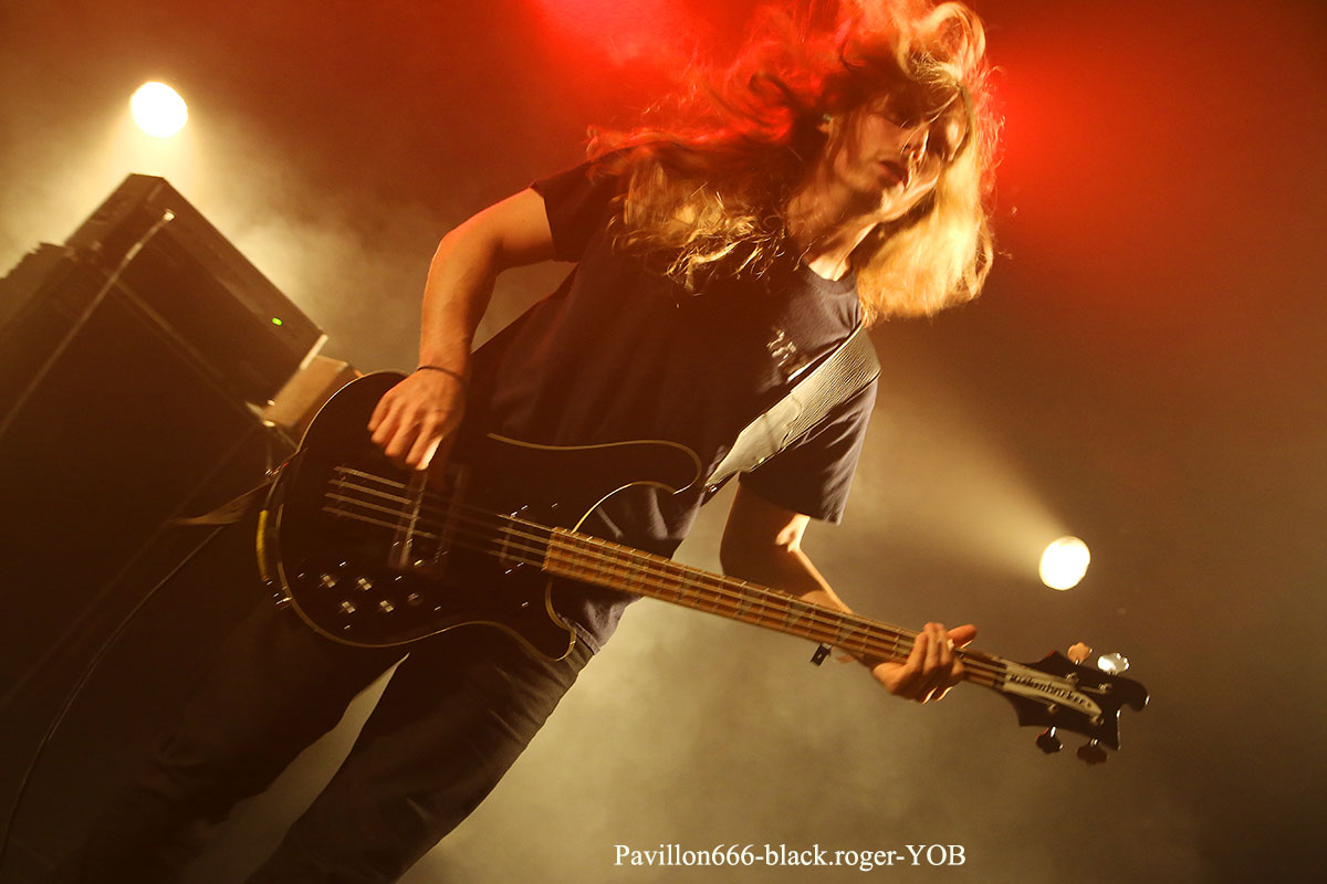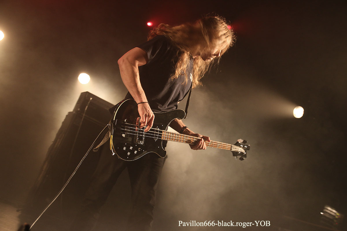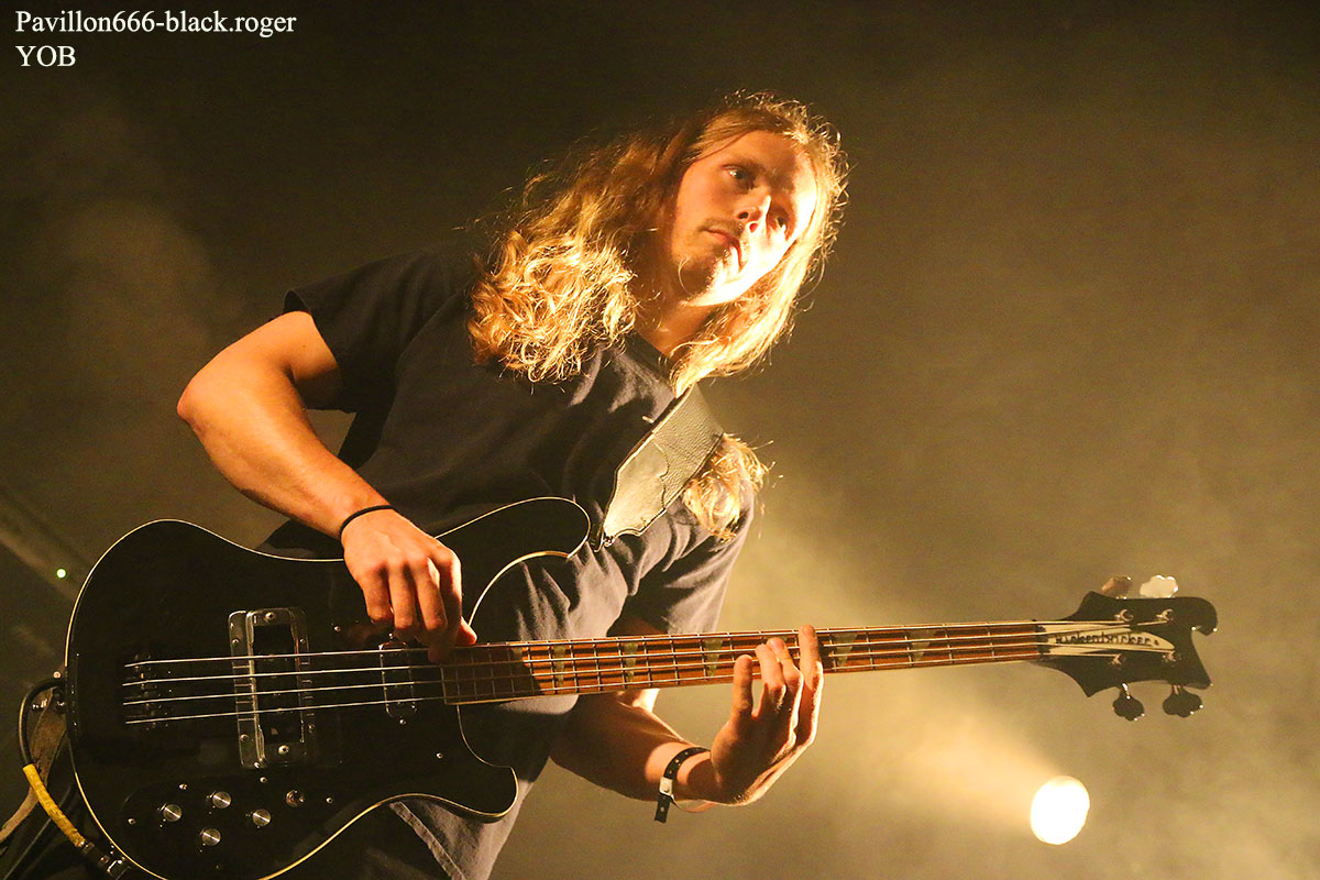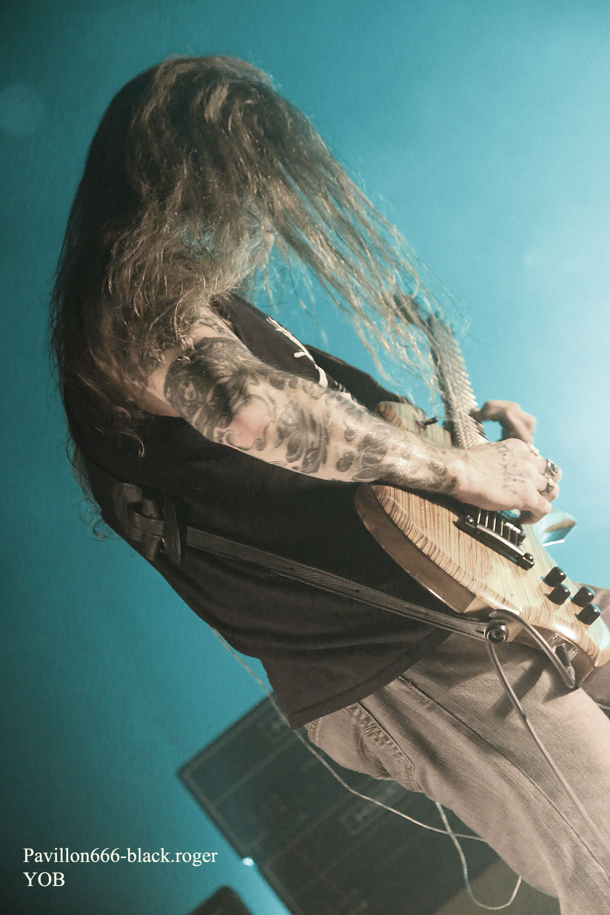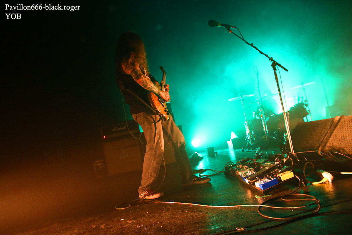 Avec WIEGEDOOD nous sommes plongés illico dans le lac noir d’un black-metal atmosphérique empreint d’un certain mysticisme de bon aloi. Trois ombres devant nous, trois musiciens possédés par leur musique dans une ambiance sombre avec seulement des projecteurs diffusant une lumière glauque dans les tons orange/rouge. Ces Belges font toujours la promotion de leur dernier album en date intitulé « de doden hebben het goed III », mais pas que. Pas de basse pour leurs envois, mais deux guitares se complétant à merveille et une batterie faisant trembler la scène de l’Epicerie dans un déluge sonore qui vous inonde l’esprit nous emmenant dans les tréfonds d’un enfer brûlant et destructeur. Wiegedood revisite donc une certaine idée brute du black-metal, un black-metal « jusqu’au boutiste » sans fioritures qui vous prend aux tripes tout simplement. Seul reproche ce soir, les hurlements de Levy Seynaeve un peu inaudibles car trop faibles (problème de son je suppose) mais au final le trio nous a offert près de 45 minutes de black intense nous entraînant dans un flash-back scandinave et magistral des 90’s. Place maintenant au doom, mais pas n’importe lequel, celui de YOB. Voici donc ce fameux trio de l’Oregon aux « states » qui nous fascine notamment avec la prestation inégalée de Mike Scheidt débordant d’originalité malgré le rapprochement que l’on pourrait faire notamment avec un certain Neurosis. Depuis plus de seize ans et 8 albums, dont le petit dernier de 2018 « our raw heart », Yob nous envoie sur les chemins torturés d’un doom aux dérives stoner, sludge et post-hardcore, rien que ça ! Yob nous sers une musique riche, riche de sonorités évoluant dans des compositions extrêmes allant du rock au metal, du doom au stoner et plus si affinité. Yob est incomparable dans la diversité de ses envois, de ses aventures complexes, de sa simplicité à vous faire ingurgiter ses déviances, ses sonorités inattendues qui vous interpellent. Bref, ce trio sort du lot dans ce que l’on appelle globalement le doom. Une identité très forte donc qui ne peut vous laisser indifférents qui que vous soyez, amateurs de metal créatif ou de rock au sens noble du terme, groupe mythique en fait, et pourquoi pas ! En tous cas ce soir la démonstration fut magistrale, intense et disons-le carrément, hors du temps et de l’espace, coup de cœur ! Merci à l’Epicerie Moderne de nous avoir proposé ce plateau de choix intéressant à plus d’un titre, et merci aux deux groupes venus d’ailleurs qui ont fait le show. |
