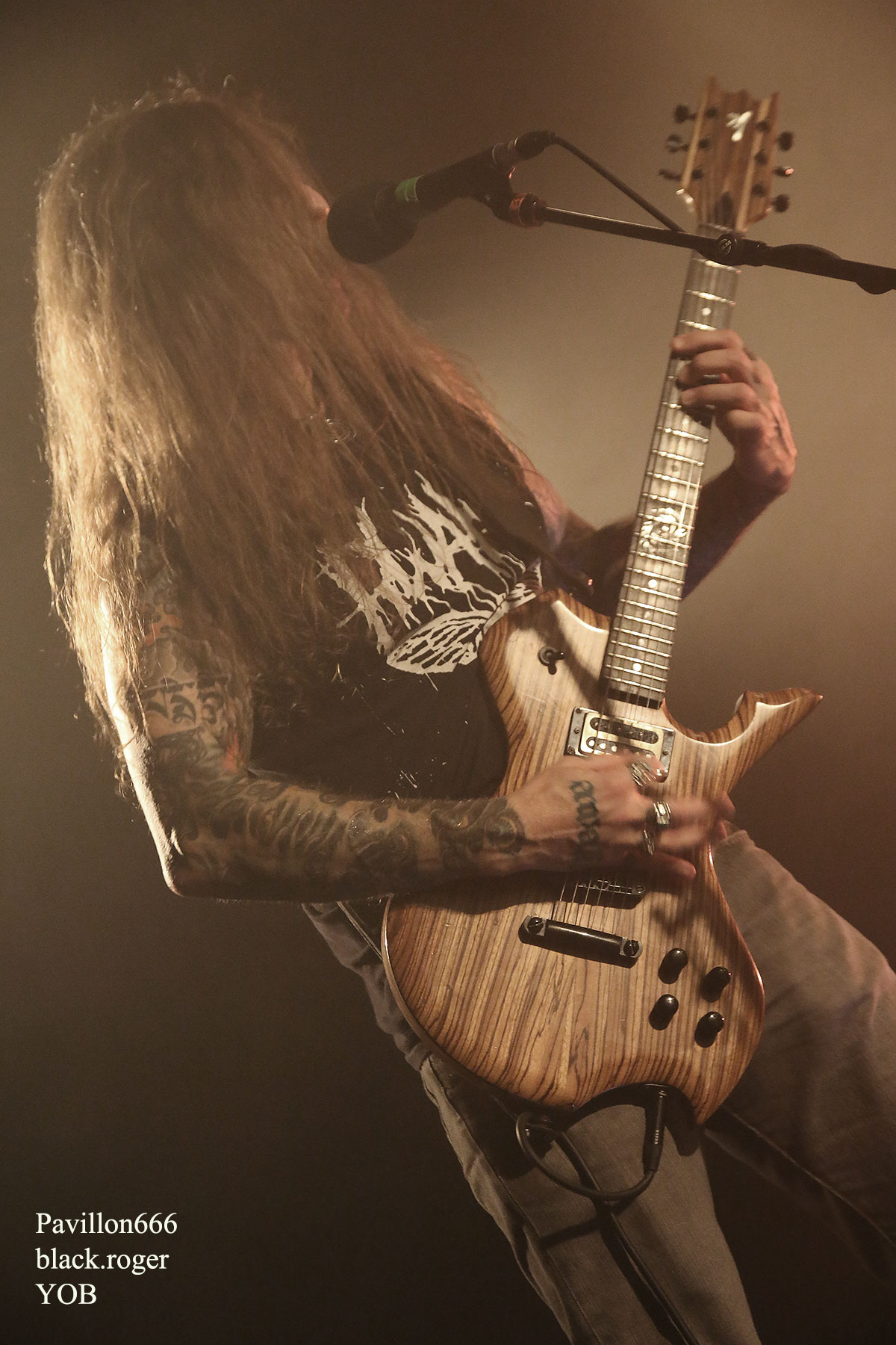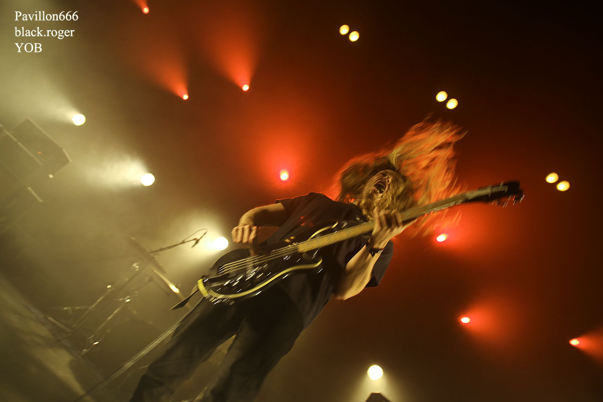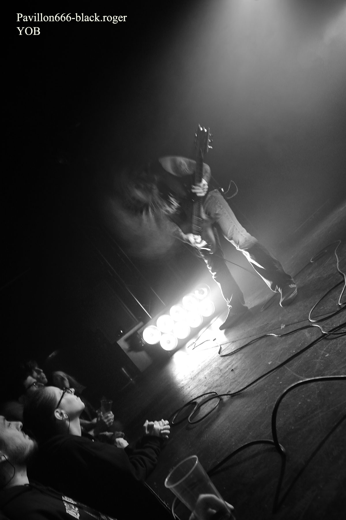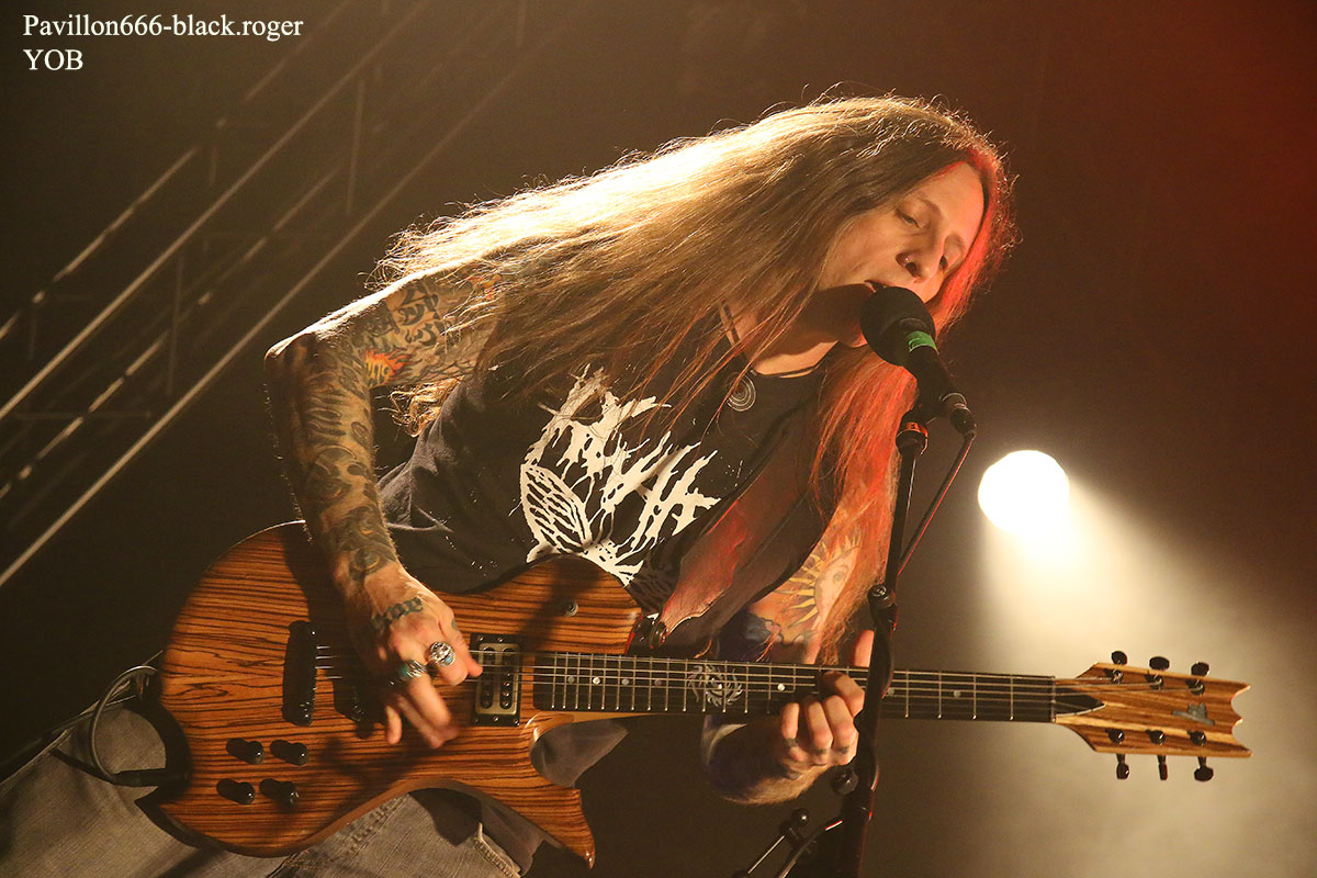 Avec WIEGEDOOD nous sommes plongés illico dans le lac noir d’un black-metal atmosphérique empreint d’un certain mysticisme de bon aloi. Trois ombres devant nous, trois musiciens possédés par leur musique dans une ambiance sombre avec seulement des projecteurs diffusant une lumière glauque dans les tons orange/rouge. Ces Belges font toujours la promotion de leur dernier album en date intitulé « de doden hebben het goed III », mais pas que. Pas de basse pour leurs envois, mais deux guitares se complétant à merveille et une batterie faisant trembler la scène de l’Epicerie dans un déluge sonore qui vous inonde l’esprit nous emmenant dans les tréfonds d’un enfer brûlant et destructeur. Wiegedood revisite donc une certaine idée brute du black-metal, un black-metal « jusqu’au boutiste » sans fioritures qui vous prend aux tripes tout simplement. Seul reproche ce soir, les hurlements de Levy Seynaeve un peu inaudibles car trop faibles (problème de son je suppose) mais au final le trio nous a offert près de 45 minutes de black intense nous entraînant dans un flash-back scandinave et magistral des 90’s. Place maintenant au doom, mais pas n’importe lequel, celui de YOB. Voici donc ce fameux trio de l’Oregon aux « states » qui nous fascine notamment avec la prestation inégalée de Mike Scheidt débordant d’originalité malgré le rapprochement que l’on pourrait faire notamment avec un certain Neurosis. Depuis plus de seize ans et 8 albums, dont le petit dernier de 2018 « our raw heart », Yob nous envoie sur les chemins torturés d’un doom aux dérives stoner, sludge et post-hardcore, rien que ça ! Yob nous sers une musique riche, riche de sonorités évoluant dans des compositions extrêmes allant du rock au metal, du doom au stoner et plus si affinité. Yob est incomparable dans la diversité de ses envois, de ses aventures complexes, de sa simplicité à vous faire ingurgiter ses déviances, ses sonorités inattendues qui vous interpellent. Bref, ce trio sort du lot dans ce que l’on appelle globalement le doom. Une identité très forte donc qui ne peut vous laisser indifférents qui que vous soyez, amateurs de metal créatif ou de rock au sens noble du terme, groupe mythique en fait, et pourquoi pas ! En tous cas ce soir la démonstration fut magistrale, intense et disons-le carrément, hors du temps et de l’espace, coup de cœur ! Merci à l’Epicerie Moderne de nous avoir proposé ce plateau de choix intéressant à plus d’un titre, et merci aux deux groupes venus d’ailleurs qui ont fait le show. |
