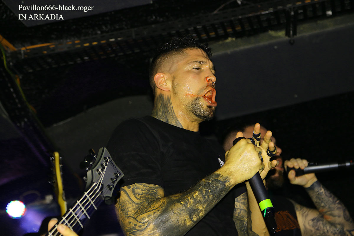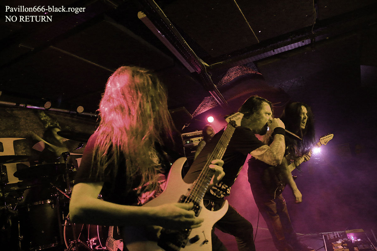 Au menu, en dehors des super pizzas proposées comme d’habitude, on nous a invité à tester de nouveaux cocktails, participer à une tombola gratuite (bonjour les éléphants roses…) et un tatoueur renommé a pu exercer ses talents en proposant en direct des « flash » dont celui du Rock n’Eat à tout un chacun (skared for life comme dirait Rose Tattoo). Et puis, et puis, deux « bêtes de scène », NO RETURN et IN ARKADIA ont mis le feu dans un rock n’eat « blindé » évidemment, alors musique maestro, mais pas n’importe laquelle ! Pour l’anecdote, NO RETURN avait joué il y a un an jour pour jour lors du premier concert donné dans notre club le Rock n’Eat donc qui en a vu passer des groupes depuis lors. Alors, je ne vous fais pas un dessin, nos cinq amis de No Return sont remontés « comme des coucous » et vont nous offrir ce soir un show copieux, prolongé si vous voulez, à l’aide d’une set-list piochant allègrement dans leurs nombreux albums (cf la set-list en photo). Leur death-thrash mélodique, mais agressif enfanté par Alain Clément a traversé presque trois décennies avec à la clé » dix albums et des concerts à la pelle notamment avec les plus grands internationaux du genre. Survolant les rythmiques plombées et les soli scalpel, Mick en frontman puissant et passionné vous prend à la gorge et ne vous lâche plus. Le groupe surfe maintenant allègrement sur la vague thrash/death plus en forme que jamais, succès mérité ? Oui je pense, j’en suis même sûr. Alors les gars vous revenez quand vous voulez vous serez toujours les bienvenus à Lyon comme ce soir dans un Rock n’Eat aux anges (au diable pardon !). Premier round de la soirée réussi les amis Le second round sera envoyé par nos Lyonnais préférés d’IN ARKADIA qui ne font pas dans la dentelle avec leur « blackcore » qui déchire tout, garez-vous ! Avec cinq albums au compteur en 12 années d’existence, ces « gones » ne sont pas venus ici au RNE ce soir pour nous susurrer de douces berceuses, mais pour nous coller au plafond à l’aide d’envois brûlants comme leur dernier titre « we are lions » qui a lui aussi un an d’existence. Alors merci les gars, effectivement sur scène vous êtes des lions et ce soir vous nous donnez le meilleur de vous-même (qui a dit comme d’habitude ?). Donc inutile de vous dire que votre hardcore metal fait mouche rien qu’à voir un RNE en sueur et en mouvement (et du sang un peu, hein Alix) du début à la fin de votre set. Vous étiez en terrain conquis ok, mais n’empêche ce soir l’ambiance fus au top niveau car vous avez su placer la barre encore plus haut. Seconde fois que je participe à l’un de vos concert (No Return également) en 15 jours et ma fois ce fus bien bon, que dis-je excellent tout simplement. Peu habitués à effectuer des rappels vous avez dû ce soir vous plier à l’exigence du public déchaîné, bravo les mecs, la famille était avec vous ce soir et vous nous avez renvoyés dans les cordes pour le pire ou le meilleur, le meilleur assurément ! Comment conclure cette petite chronique d’un grand événement ? Tout simplement en remerciant le Rock n’Eat (long live to you) et en remerciant tout le monde, musiciens et public pour l‘ambiance de « ouf » instaurée ce Vendredi 26 Octobre 2018. |