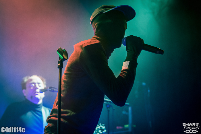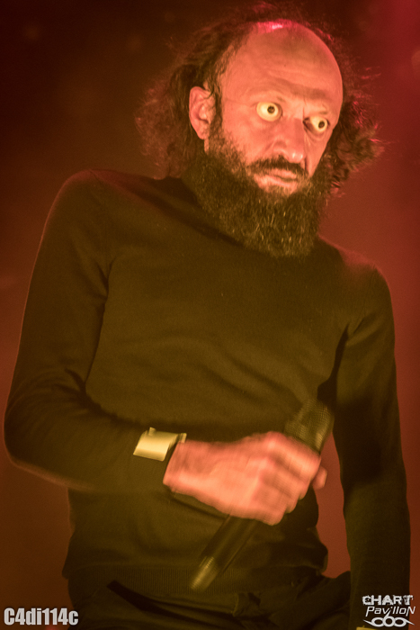 A quoi s'attendre lorsqu'on va voir 33,33% du trio le plus barré mais aussi le plus créatif de ces dernières années ? Surtout que cette date à Saint-Étienne est la première date de cette tournée et que l'album ne sera disponible que le lendemain. De plus, CADILLAC n'avait jamais joué en solo. Il s'agit donc d'une grande première. Mais comme l'homme est un performer et même si nous ne savons pas à quoi nous attendre, on se doute bien que cette soirée aura quelque chose d'unique. Arrivée sur scène d'un Cadillac façon STUPEFLIP avec le chapeau type Napoléon. L'introduction de ce concert nous rappelle forcément quelque chose puisqu'il s'agit du fameux monologue de Cadillac présent sur le premier album de STUPEFLLIP. Et oui mais ce n'était qu'un double car le vrai Cadillac fait son apparition cheveux longs et longue barbe. Et c'est parti pour une belle série de morceaux. Je ne pourrais pas vous citer grand chose car il s'agit d'une découverte intégrale mais je peux vous dire que le public se laisse très rapidement prendre au jeu. Après écoute de l'album, je peux tout de même vous révéler que l'intégralité du disque est joué ce soir là. Cadillac est un véritable frontman et même si son attitude peut parfois sembler bizarre, ou décalée, cela ne fait que renforcer son personnage. Oui, il s'agit bien d'un personnage, sorti d'une bande dessinée. Les yeux que lui et les musiciens portent leur donnent un côté Simpsons ou Guignols de l'info. Vous avez bien lu. Il y a des musiciens, un guitariste et un bassiste pas mauvais du tout. Certes il y a des samplers aussi et dans ce style, rien de surprenant. Le fait d'ajouter une guitare et une basse renforce le côté rock n' roll de l'ensemble et rend les choses encore plus vivantes. On se délecte de ce medley dédié à King Ju et STUPEFLIP qui reprend certains des passages les plus emblématiques de Cadillac sur les 4 albums du groupe avant de finir sur une version revisitée du morceau « Stupeflip » qu'évidemment tout le monde reprend en chœur.