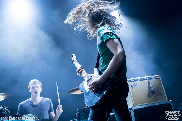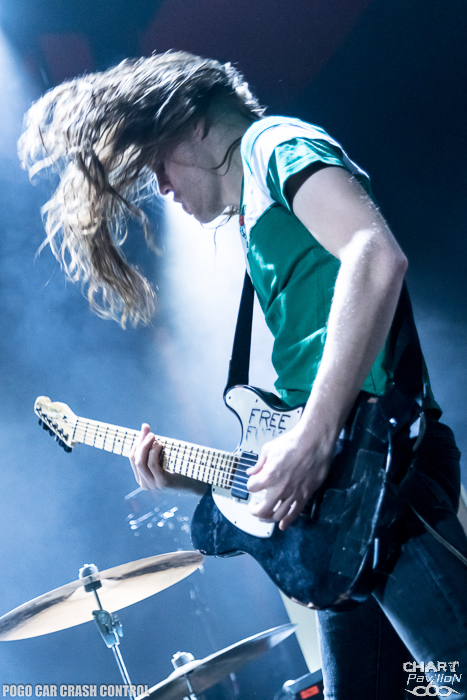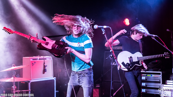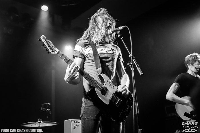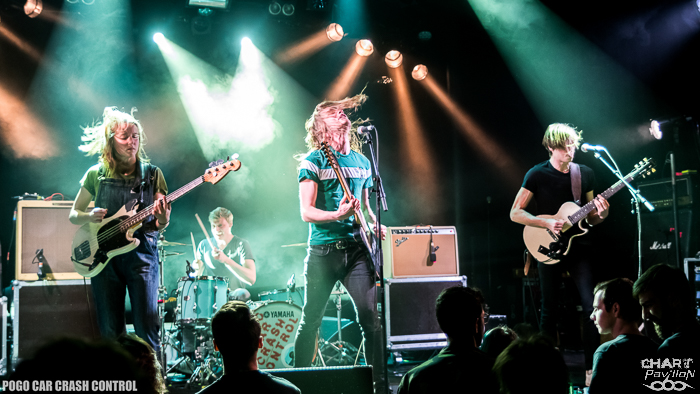 On attaque cette soirée par POGO CAR CRASH CONTROL. Pour ceux qui suivent STUPEFLLIP de près, vous aurez peut-être reconnu ce nom. Ce sont bien eux qui avaient joué lors de la Flip Party, la fête qui avait été organisée pour l'album « Stup Virus » en septembre 2017. C'est certainement ce qui a attiré la lumière sur cette formation mais il faut d'emblée ajouter que cette lumière est méritée. En effet, ce quatuor originaire de la banlieue parisienne a clairement de l'énergie à revendre. C'est du rock n' roll poussé à son paroxysme avec une énergie de dingue. Il ne faut d'ailleurs pas longtemps au public tassé dans la petite salle du Fil pour faire monter sérieusement la température ! Il y a de quoi. Ces morceaux détiennent une puissance extraordinaire et ces musiciens s'en donnent à cœur joie. STUPEFLIP a amené la lumière sur eux et c'est au public de maintenant prendre le relais car il y a là un excellent potentiel, surtout en concert. Un groupe à suivre et à aller voir !