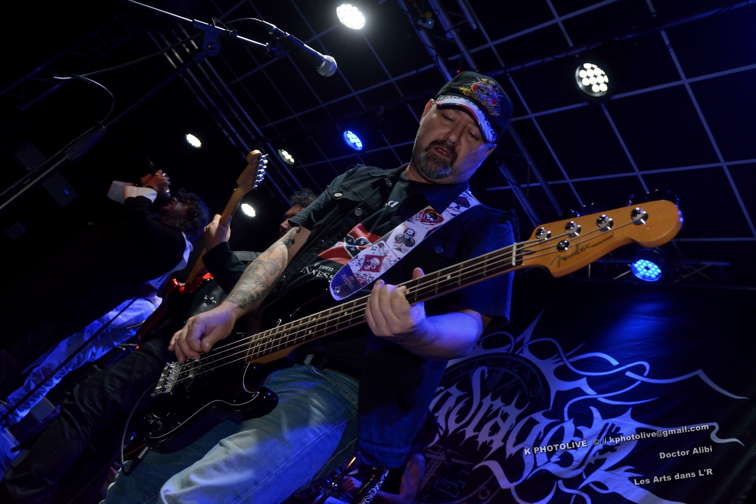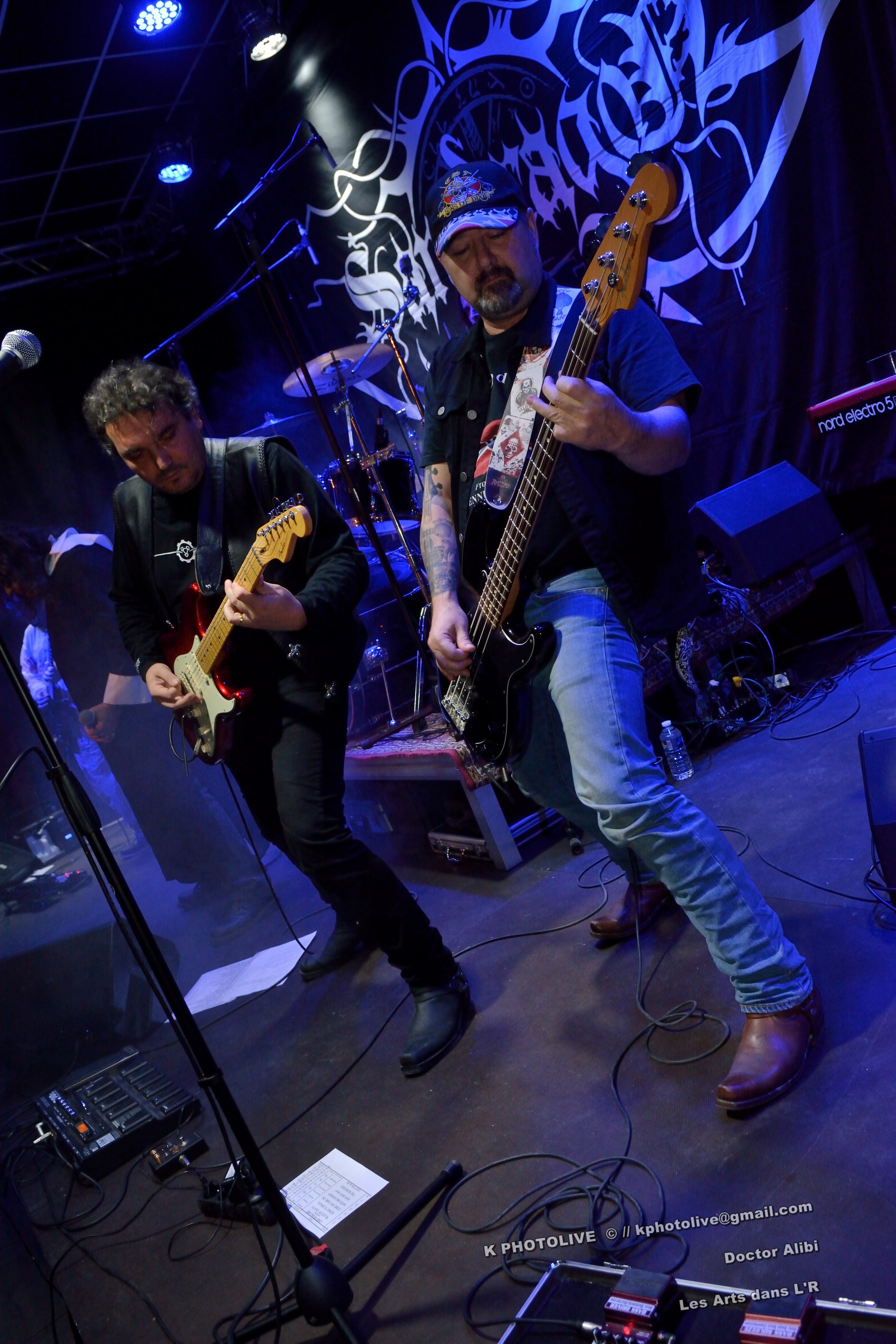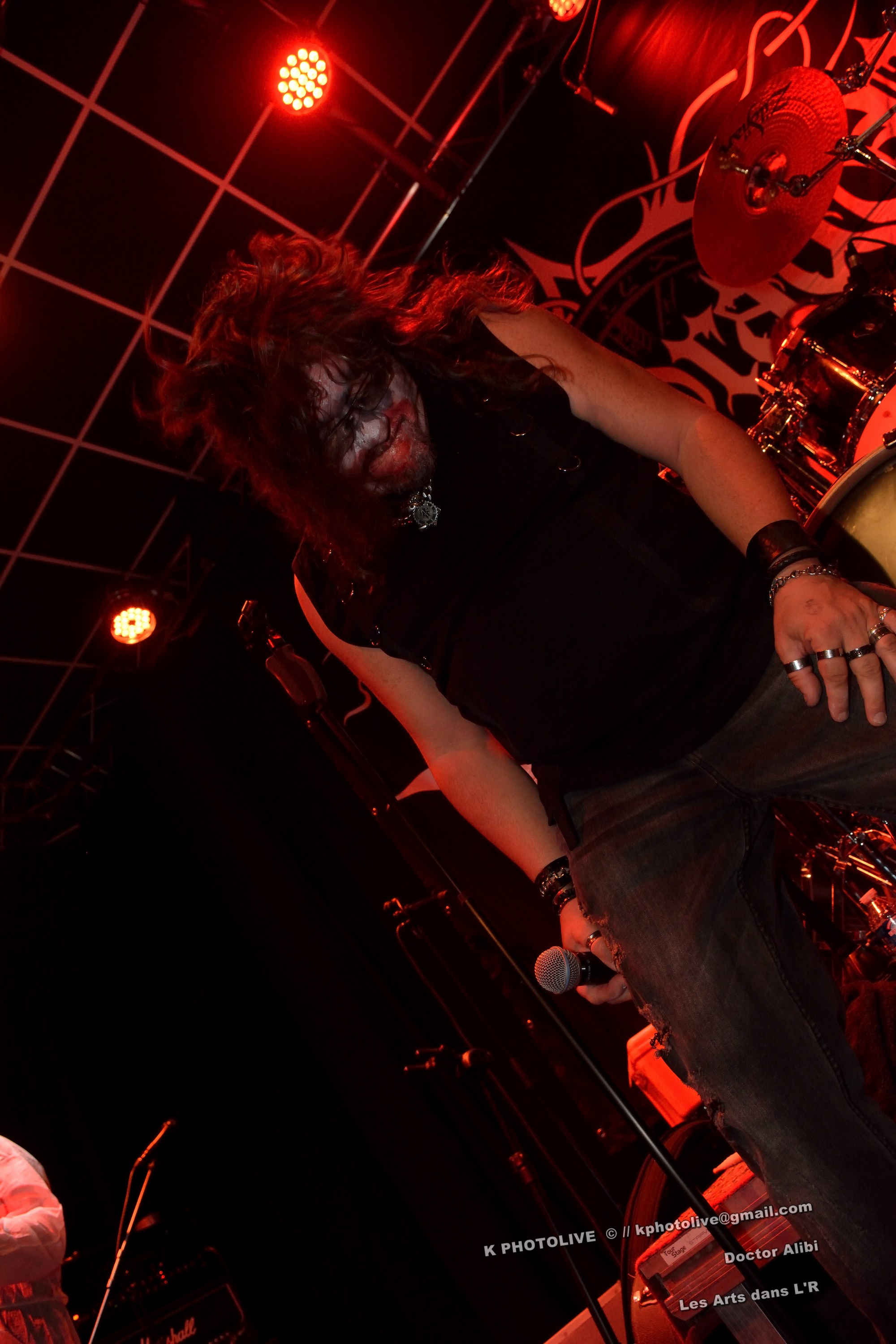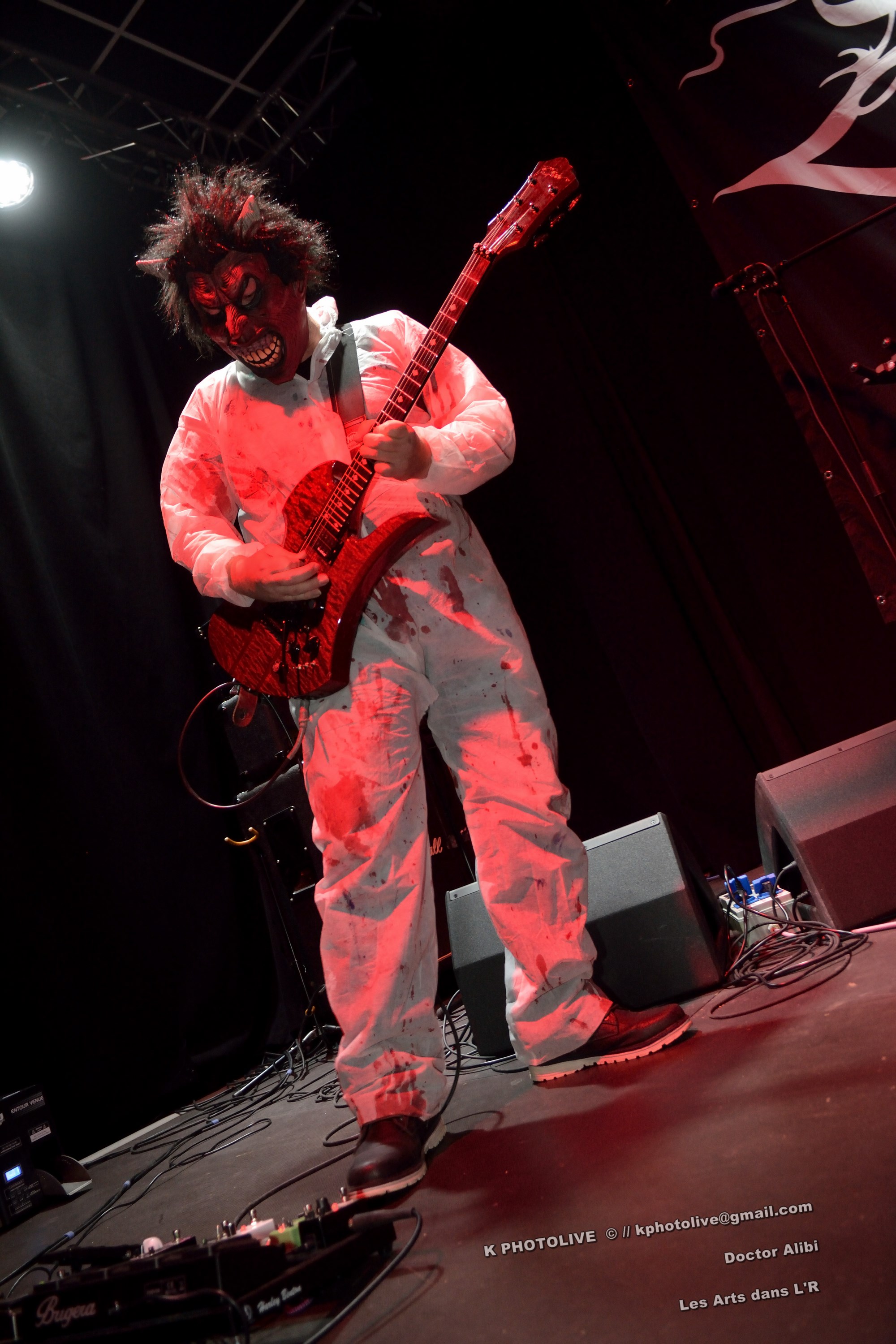 Un lieu assez inhabituel , un jour particulier, ce 31 octobre, Halloween ! Et un spectacle où tout le monde est assis dans la grande salle du Café-Théâtre « Les Arts dans l'R », à Péronnas, tout près de Bourg-en-Bresse, c'est assez inédit… Les gens, déguisés, maquillés, grimés, tous âges confondus, familles, amis, parents et enfants, dînent, bavardent, rient...Et soudain, à 20 heures 45, la scène s'anime, cinq personnes étrangement accoutrées, se mettent à « faire du bruit » ! Non, c'est plus sérieux, il s'agit du groupe DOCTOR ALIBI, originaire du Sud du département de l'Ain, qui a été choisi pour remplacer SILVER WIND, initialement prévu et qui a déclaré forfait.