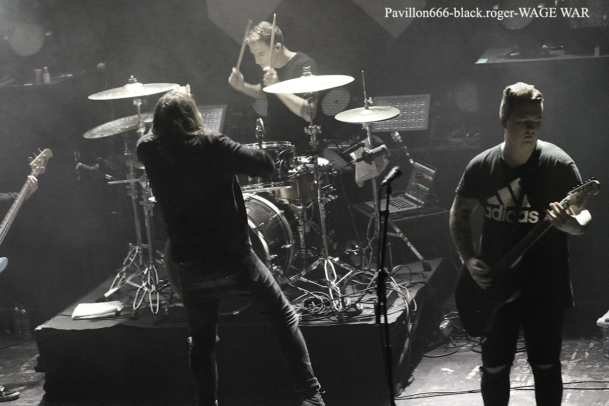 Il ne fallait pas traîner car 30 minutes après l’ouverture des portes à 19 heures, BETRAYING THE MARTYRS lançait déjà les débats avec la fougue et l’énergie qu’on leur connait. Les Parisiens emmenés par Aaron Matts nous présentent leur metal/hardcore/death/djent et plus si affinité depuis une dizaine d’année avec à leur actif déjà trois albums dont le remarqué « the resilient » paru l’an dernier. Après un début bien deathcore, le groupe nous offre maintenant plus de metalcore avec des musiciens combinant adroitement lourdeur, agressivité et mélodies. Bien sûr en live cette formation se lâche complètement dans une chorégraphie incroyablement agitée mais maîtrisée. Avec aussi un savoir-faire qui leur est propre maintenant et le haut de l’échelle du metalcore international est en vue pour eux. Preuve en est ce soir où malgré un set de seulement 30 minutes ils ont déjà mis en ébullition le Ninkasi, incroyable ! Les Floridiens de WAGE WAR entrent en scène pour 45 minutes d’un metalcore qui semble vouloir « varier les plaisirs » dans ce domaine, mais n’y parvient pas tout-à-fait (ceci n’engageant que moi précisons-le). Ici on flirte avec le deathcore, avec le neo-metal mais surtout avec pas-mal de divergence emocore. Alors ce quintette n’a plus rien à prouver en terme de metalcore « classique » mais pour ce qui est de l’originalité on repassera, de bonne idées mais pas trop. Evidemment en live avec un public bien chaud et quelques envois plus bourrins ça passe, mais jusqu’à quand ? L’assistance y a trouvé son compte vu les envolées « slamesques » et c’est bien là le principal dans cette soirée qui valait le « cou ». Changement de plateau pour la tête d’affiche tant attendue, les fameux metalleux de Lancaster (pays des Amish), USA. Le groupe défend toujours en live son dernier album en date « phantom anthem » paru en 2017, le 8ème en 15 ans d’existence. Et ce soir le quintette va tout remuer dans un kao chaud comme la braise et prêt à en découdre, pas de problème, il va assurer. Cette formation qui pourrait donner des leçons de metalcore a beaucoup de jeunes loups a compris que la scène était le but ultime de leur engagement musical et cela se ressent d’emblée, même si dorénavant, notamment sur les parties de guitare, la technique est bien aventureuse. Mais le frontman/aboyeur mène la danse et dans toute la salle on s’envoie en l’air, ce frontman qui avec humour aide filles et garçons à se projeter dans un public acquit à la cause du metalcore, le bon, le vrai, celui d’August Burns Red qui fête aujourd’hui donc quinze années de metal et de « core », « angry music for happy people », c’est écris en fond ‘écran sur scène, ok ! Après plus d’une heure de show, dont trois rappels, les Américains ont pris congé de la foule Lyonnaise qui reprend ses esprits après ce concert qu’il ne fallait surtout pas rater, quelle baffe ! Set-list : king of sorrow, composure, invisible enemy, fault line, the frost, beauty in tragedy, marianas trench, dangerous, meddler, back burner, ghosts, martyr, empire, drum solo, float, white washed. Merci à Sounds Like Hell Productions, organisateur émérite, aux trois groupes de la soirée, au Ninkasi pour l’accueil et au public qui a instauré une ambiance de dingue. |