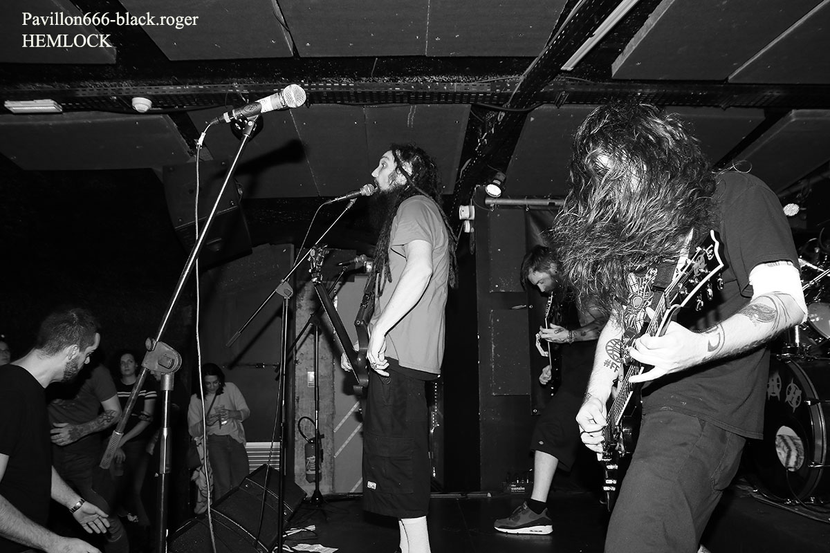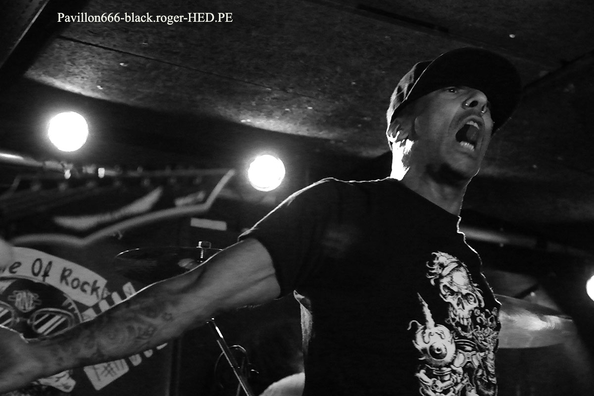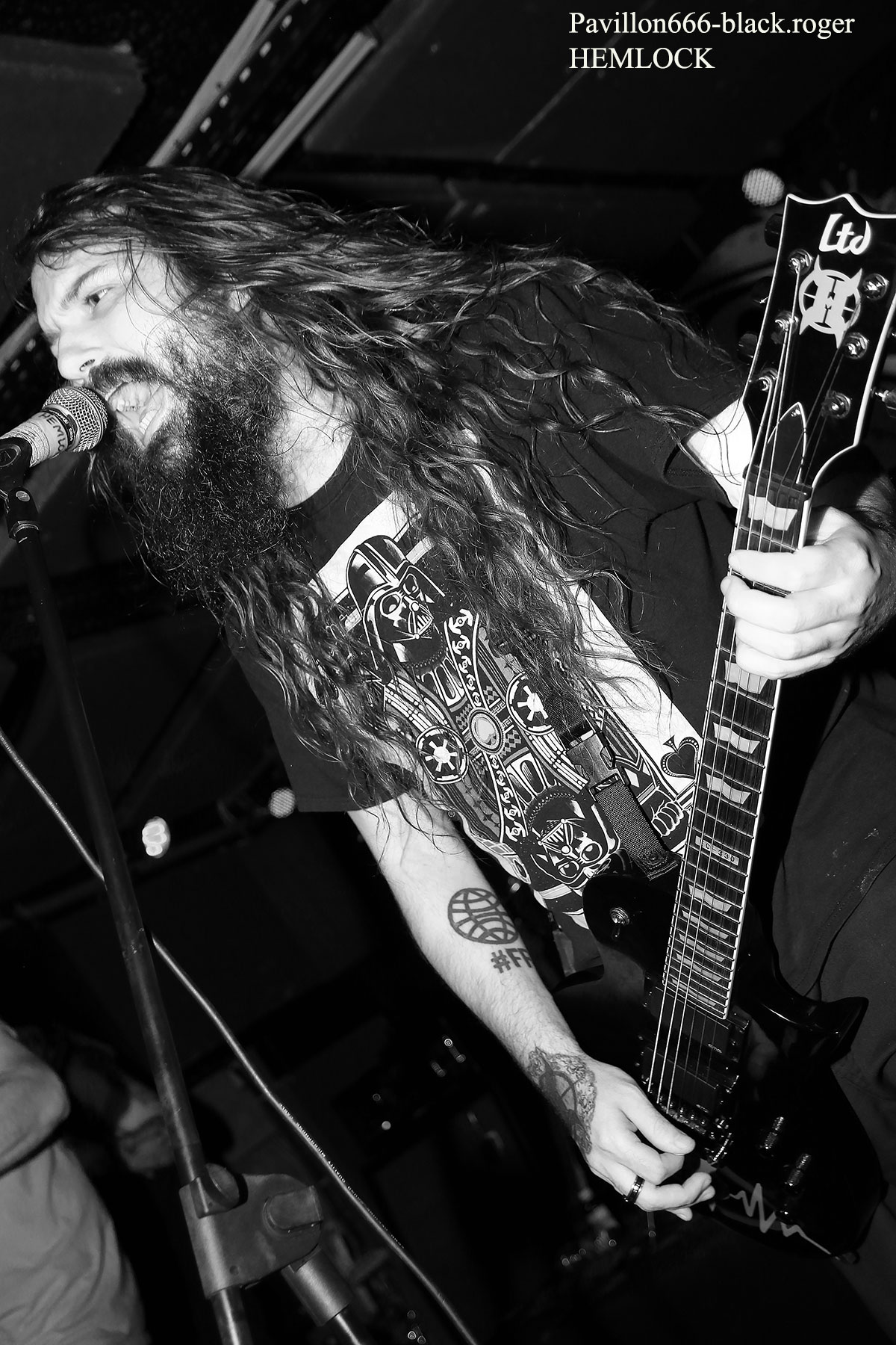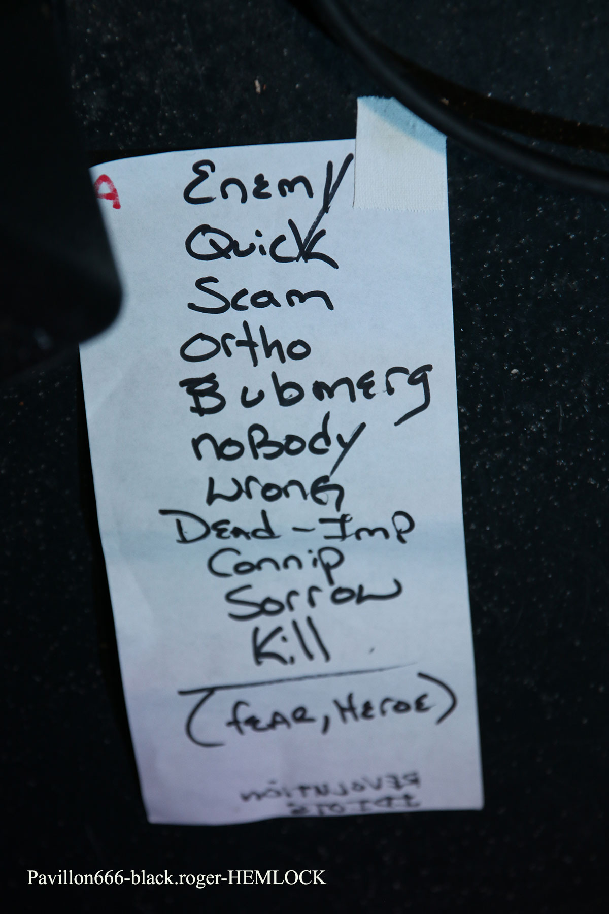 Déjà 7 années au compteur pour FACE 2 FAKE qui progresse d’année en année. Il est vrai que les musiciens de ce groupe ne sont pas nés de la dernière pluie rap-metal car ayant officié dans d’autres formations métalliques auparavant. Les ayant vu en action ici-même il y a peu de temps je constate que leur fusion rock-electro-hip hop a de la gueule maintenant et même si la grosse influence de Rage Against The Machine est omniprésente, leurs compositions tirent leur épingle du jeu. Et puis, la présence scénique de ces Lyonnais fait le reste, du coup le nombreux public déjà présent se laisse happer par leur show d’une rare intensité. Merci les gars vous revenez quand vous voulez. Set-list en photo Les « ricains » d’HEMLOCK prennent la suite sur les planches du Rock N’Eat pour un set, que dis-je, une performance physique et musicale puissante mais non dénuée d’un certain humour provocant. Plus de vingt années que ces thrashers fous sillonnent la planète avec sous leurs bras, pas moins de 9 albums dont le petit dernier intitulé « XXV » de 2018 qu’ils veulent nous faire « avaler » comme le micro du chanteur durant le set. Une pensée me traverse l’esprit subitement, comment n’ai-je pas découvert ce groupe jusqu’à présent ? C’est génial ce qu’il font, ils jouent comme des dieux, ne se prennent pas au sérieux, mélangent allègrement tous les styles de metal ou presque, passant du thrash à la Slayer au death old-school d’un Obituary en passant par la case dub/reggae. Alors nous avons dégusté dans tous les sens du terme avec ce groupe formé notamment par les frères Smith, Chad (chant/basse) et Brian (batterie). Une conclusion s’impose donc, formation à voir et revoir sans modération, ce fus incroyable ce soir. Set-list en photo HED.PE, c’est une longue histoire qui débute en 1994 sous l’impulsion de Jahred Shane un incroyable frontman d’une formation qui a transformé son punk originel en neo mais pas seulement. Avec Hed.Pe c’est le voyage à la Jamaîque aussi avec ce mélange improbable de reggae, rock, punk avec subitement des envois délires flirtant avec le hard-rock, voire le metal. Et puis il y a cette voix, cette présence, ce charisme de Jahred qui se promène sur les sons en fusion tel un équilibriste déjanté. Le tout sur des airs qui puent le groove, un groove qui fait transpirer les fans et tout autre public qui a mis le doigt dans l’engrenage de la fusion punk/hip hop. Les musiciens qui accompagnent ce soir Jahred sont un guitariste au doigté punk, un bassiste remarqué dans ses propos aventureux et un batteur tout ébouriffé par les mouvements complexes du groove et de plus très inspiré. Ce show nous a paru court au final surtout pour les fans ultimes qui ont pris ce soir leur « dose », mais le concert fut magique et mouvementé (chaloupé aussi), alors merci Hed.Pe ce fus hors du temps ce soir. Sert-list en photo. Merci au Rock n’eat live, merci aux musiciens des trois formations en lice, et bien entendu merci à ce nombreux public qui a rempli notre club préféré, on recommence quand ? |