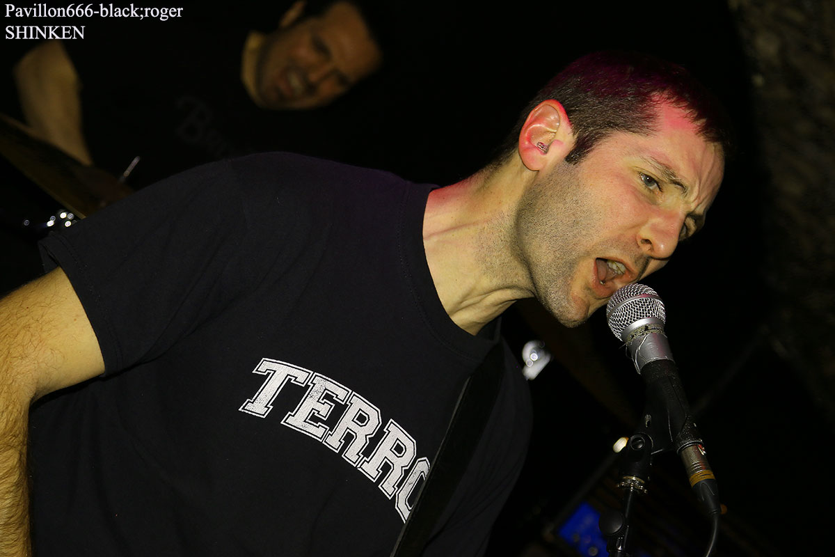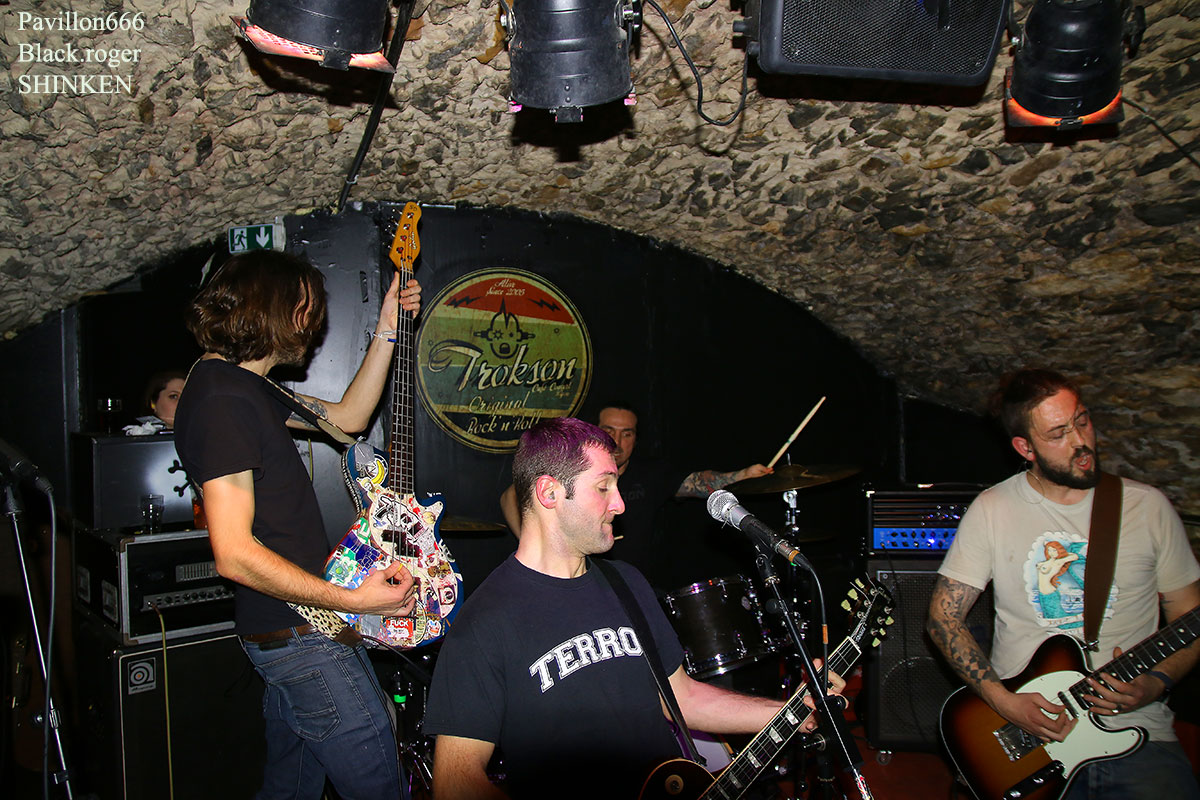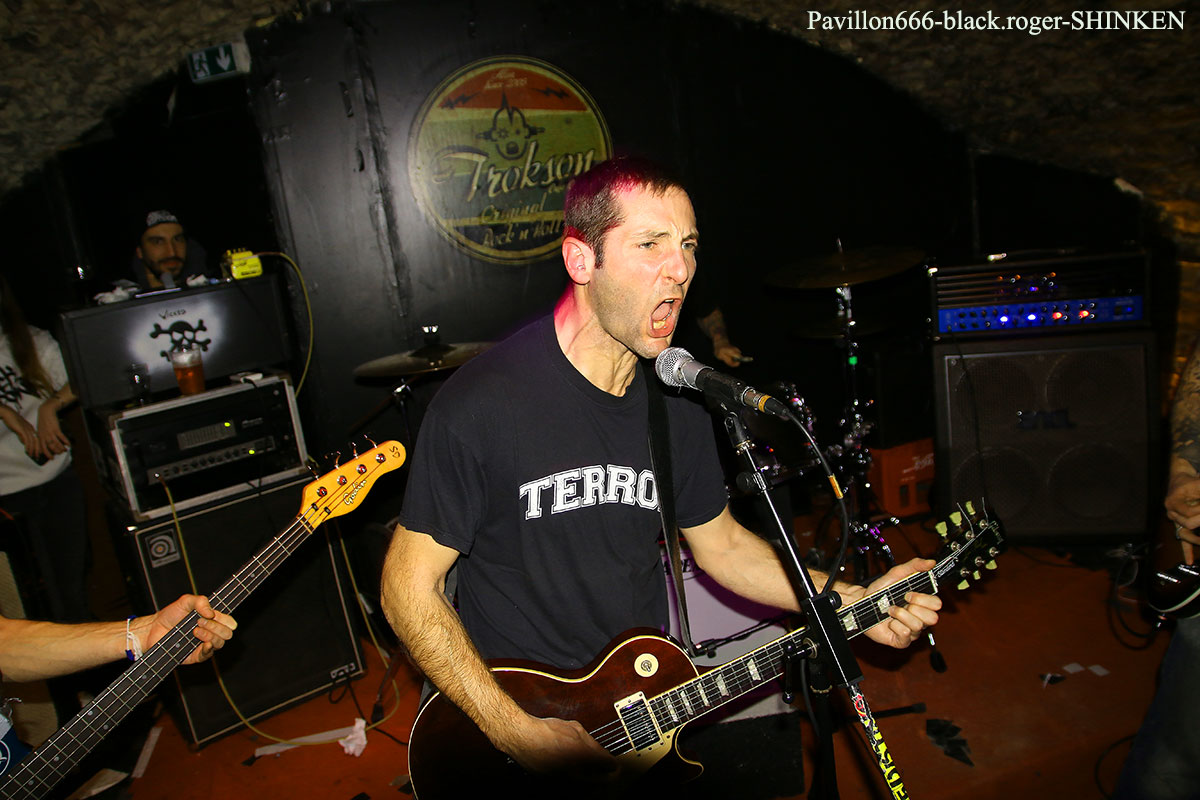 Une bonne ambiance règne déjà dans le bar du Trokson vers 21 heures lorsque l’on descend dans la cave afin d’accueillie les jeunes Lyonnais de WICKED qui vont donner leur premier concert. Et ils ne vont pas être déçus du voyage car dès le premier titre tout part en « live » dans le pit. La famille hardcore de Lyon est là bien présente et ça va voler dans tous les sens je ne vous fais pas un dessin ; Breakdowns, moshpits musclés, shampooing à la bière et pieds de micros voyageurs, ça c’est hardcore, muscle et karaté comme dirais nos amis de « Ta Gueule ». On en prend plein la gueule donc et pour leur premier show ceux de Wicked n’en croient pas leurs yeux ni leurs oreilles. Mais au fait, que dire de cette prestation ? Que du bon en fait, malgré les petits problèmes inhérents aux débuts en live que connait chaque nouvelle formation (cohésion). Bonne basse ben présente, bonne « gratte », batteur remarqué et frontman qui devra prendre un peu plus d‘assurance, mais cela viendra car les bases et les idées sont là pour un crossover hardcore/thrash qui me fait penser au thrashcore des « ricains » de Power Trip (si vous connaissez). Bref ça démarre bien pour eux, alors bienvenue dans la famille hardcore les gars. Des ennuis d’ampli-guitare vont quelque peu retarder le début de la prestation des grenoblois de SHINKEN, le bassiste plein d’humour nous faisant patienter. Mais une fois que tout sera en ordre la machine hardcore Shinken va démarrer à fond les manettes (les cannettes ?). Et le public, un peu statique sur les premiers titres va à nouveau tout renverser dans la cave du Trokson bien entendu. Les vestes tombent, les casquettes restent vissées et le pit s’agite, se comprime par vagues dans ce lieu plein à craquer. Shinken n’est pas un nouveau venu dans la scène hardcore (2007) et sait comment vous prendre à la gorge avec ses compositions (Eps et album) qui ne refont pas le monde du punk-hardcore, mais qui vous font comprendre ce monde en y rajoutant une bonne dose de « groove » imparable. Ces musiciens ayant opéré dans d’autres formations auparavant connaissent donc la « musique », no problem ! Donc, c’est du direct « in your face » qui vous arrive sans crier gare et l’on ressent les bonnes influences en filigrane d’Agnostic Front, de Madball ou encore de Raised Fist. Alor pour les isérois ce fus bien « chaud-patate » ce soir dans la sueur du Trokson, nous avons bien apprécié, merci Shinken vous revenez quand vous voulez. Merci aux organisateurs, merci au Trokson, merci aux deux groupes de « coreux » et naturellement merci à ce public vraiment présent ce soir dans tous les sens du terme. |