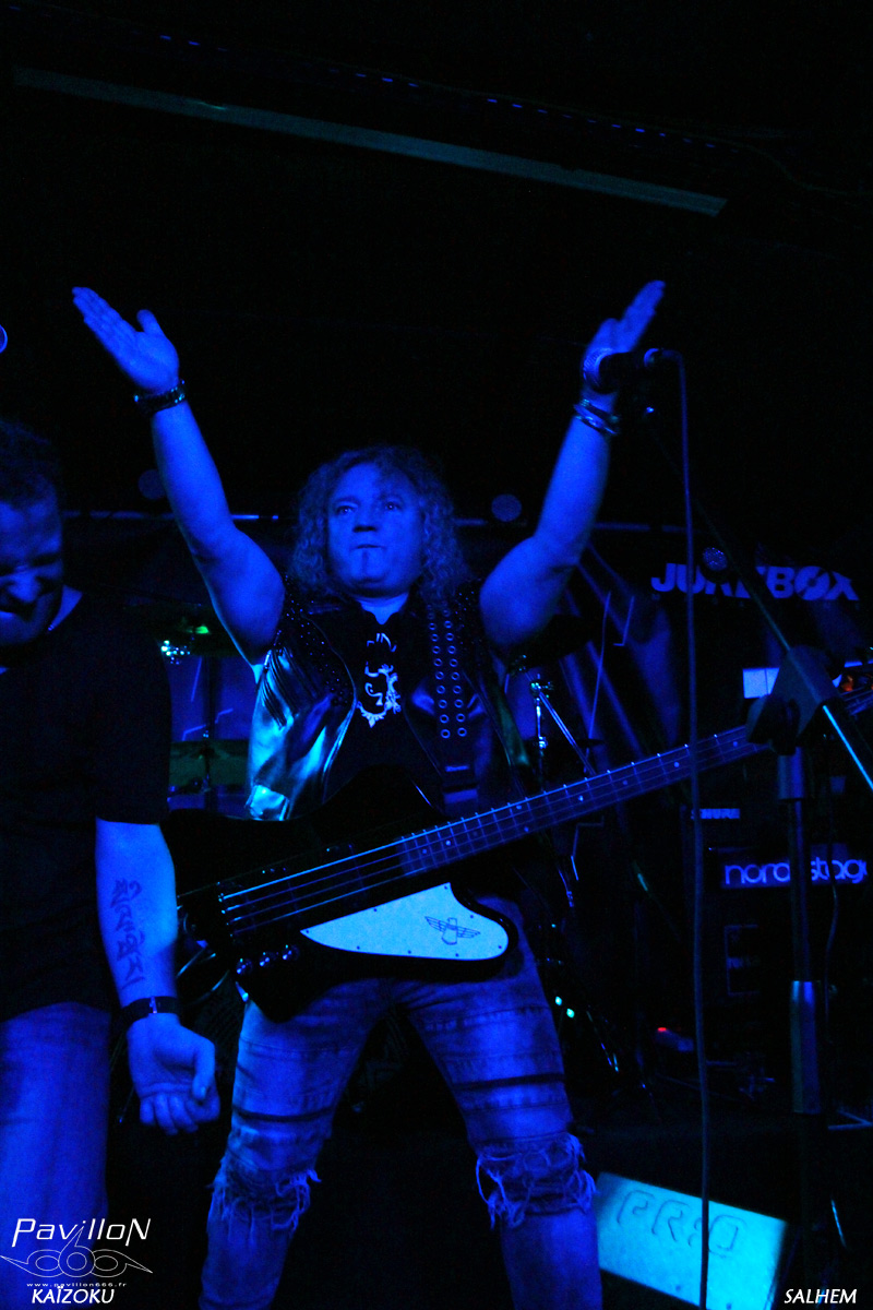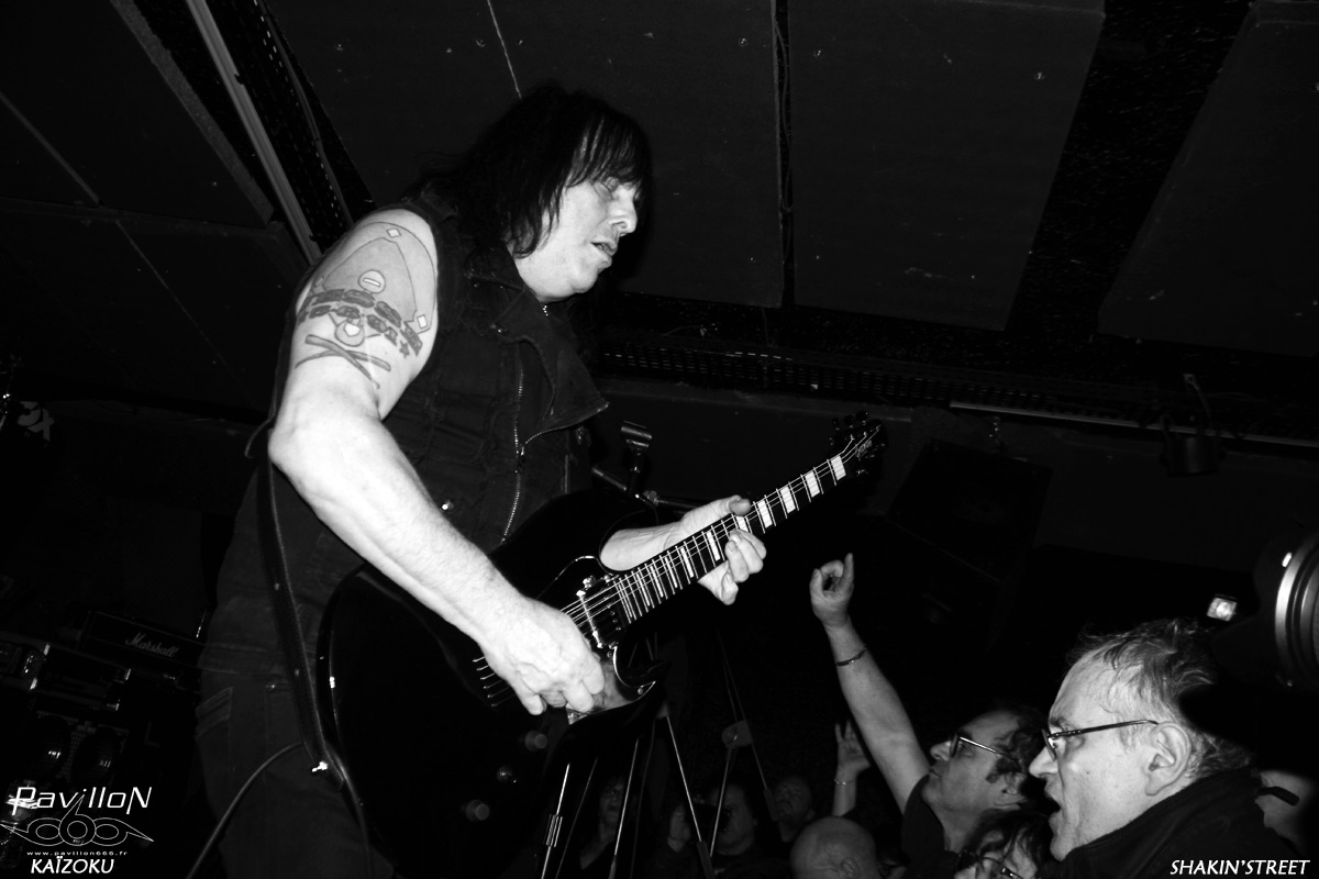 Concert, ce n'est pas le mot exact pour qualifier cette soirée. Ici je vais plutôt vous parler d'une expérience spacio temporelle. En effet le Rock'n'Eat s'est transformé mardi dernier en machine à voyager dans le temps et je suis heureuse d'avoir été témoin de cet événement. En première partie nous retrouvions Salhem, groupe régional qui arpente les scènes depuis quelques temps et où l'on retrouve Markus Fortunato, basse à la main, sourire aux lèvres, comme à son habitude. Il y a forcément un côté heavy dans le rock de Salhem avec ce son de clavier, les envolées et l'esprit qui va avec. Du rock oui, mais en français s'il vous plaît (sauf le dernier morceau « Lost ») . Du rock comme on aime, engagé, enragé, à l'ancienne. Un petit côté Trust ou Vulcain plane dans l'air côté paroles. Les harmonies ne sont pas toujours très heureuses, mais qu'à cela ne tienne, c'est l'esprit qui compte. Petit coup de cœur pour « Brûler les Sorcières » qui l'incarne bien cet esprit dont je parlerai par la suite. Le Rock'n'Eat, blindé comme rarement, se réchauffe de plus en plus et le public se presse devant la scène. Shakin'Street est annoncé au micro, ils sont attendus comme le messie. Les deux The Dictators NYC Dean Rispler à la basse et l'excellent JP Patterson à la batterie (vêtu d'un t-shirt de l'OL) arrivent sur scène accompagnés de Freddie Katz et Ross The Boss (ex Manowar). Déjà acclamés, ce n'est encore rien par rapport à l'arrivée de Fabienne Shine sur scène. Un accueil chaleureux, presque familial. La qualité et quantité de photos, dont je m'excuse par avance, est représentative de l'ambiance. Lumières rouges à l'ancienne, public collé serré devant la scène, il a été très difficile de se mouvoir et de frayer un chemin pour l'objectif au milieu de la forêt de téléphone du premier rang malgré la gentillesse et la galanterie de certains de mes voisins. Le show est lancé. Je ne vais pas mentir, j'ai eu du mal à me mettre dedans. Le début me semble désuet au premier abord, bien que j'affectionne particulièrement l'âme de cette musique, je ne m'y retrouvais pas ce soir. Tout me semble passé, dépassé même, dans un premier temps, bien qu'habituée, moi la « gamine » née en 85, à écouter du vieux rock depuis mon enfance et à arpenter les salles dans cette ambiance là. Mais habituellement dans ce genre de concert old school je m'y retrouve car il y a un vrai mélange de générations, une sorte de passage de relais, qui avait du mal à se faire ce soir là. Une petite étincelle a jaillit lorsque j'entends « No Time To Lose », mais ça n'a pas suffit. Il fallait que je change de point de vue pour me mettre dedans. Je n'avais pas envie de louper le coche, parce qu'il faut le dire, ce n'est pas tous les jours qu'on a la chance de voir des groupes de cette époque sur scène et dans des conditions qui rappellent leurs débuts (scènes intimistes et underground, le rêve de chacun d'entre nous qui n'était pas encore né à cette époque). Puis ce lien vers ce passé inaccessible, que j'attendais c'est finalement fait, pas devant la scène, mais sur un coin de table, lors d'une discussion. Un récit, une anecdote, l'histoire d'une génération contée au fond du bar. L'histoire d'une boucle temporelle bouclée pour toutes ces personnes autour de moi qui ont vécu l’explosion de cette musique fin des années 70. L'histoire de cette musique née dans un contexte bien particulier, qui a donné une impulsion de vie, de liberté, de révolte, à la jeunesse d'une époque précise, à un monde en difficulté, et qui est tout à fait à propos encore en 2019. Se donner du courage et l'envie de se battre, pour se sentir en vie, pour se sentir libre, par la musique. « C'est la musique qui sauvera les âmes et le monde », je suis tout à fait d'accord ! « Il faut avoir vécu une telle période pour être pris au tripes, ou avoir un esprit emprunt de liberté et de révolte, toujours sur le qui vive, qui ne veut pas se ramollir, jamais. ». Voilà ce lien, ce passage de relais que je n'avais pas encore palpé au milieu de cette foule prise dans ses souvenirs. La musique, ce langage universel qui est raccroché à la mémoire la plus profonde du cerveau, fait remonter les souvenirs, les sensations les plus enfouies. Et ce qu'a vécu le public ce soir là c'est une vague de souvenirs, auditifs, olfactifs même, des bribes de sensations d'une époque passée qui se ressentent dans la chair. Ce n'est pas de la mélancolie, juste des sensations, comme une délicieuse madeleine de Proust. C'est ça, le sens de cette soirée, que je ne voulais plus voir finir. Après ce bout de discussion qui a ramené les choses à leurs places je me suis sentie enfin happée. J'ai pu vivre la fin du concert complètement dedans, les tripes remuant sur le rythme punk de la batterie, au milieu des gens sautillant comme à l'époque, cheveux lâchés, gestes saccadés et presque en transe pour certains. Ce fût un régal de voir jouer des classiques comme « I Wanna Be Your Dog » ou « Vampire Rock », par ces musiciens qui les ont joué à leurs débuts et qui ont partagé des scènes avec les plus grands nom du rock (Alice Cooper, Blue Oyster Cult, AC/DC, Led Zeppelin..). Ces musiciens à la vie incroyable ont aujourd'hui vieilli, c'est indéniable, mais l'esprit, les valeurs et l'énergie sont toujours intacts, toujours authentiques.. et toujours d'actualité. Un grand merci au Rock'n'Eat d'avoir fait le boulot de la Dolorean pour nous faire passer une soirée comme à cette époque que je n'ai pas connu. Merci à ces groupes qui font vivre l'âme du rock à travers les âges. Merci à Laurent Sage pour son travail et son investissement qui ont permis tout ça. Sans ces musiciens, qui arpentent encore les scène la guitare à la main, et leur public, tout ceci serait mort. Sans la transmission tout ça serait mort également, donc un merci tout partic