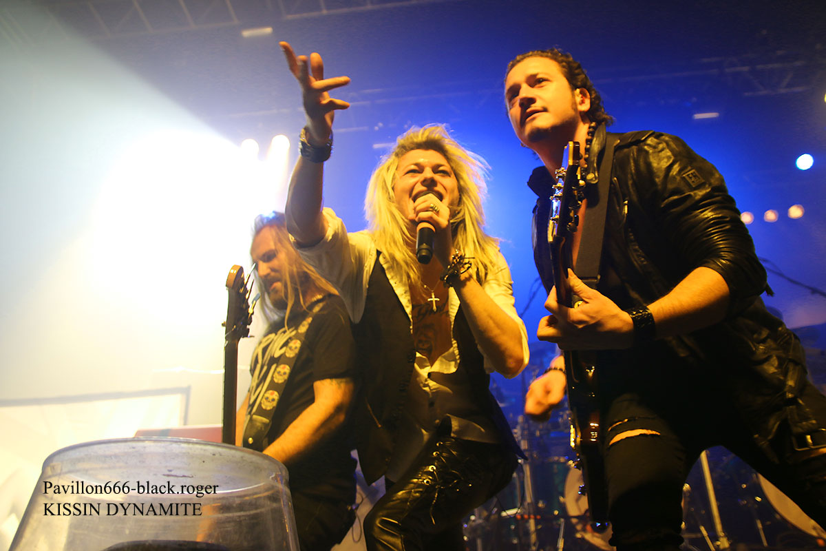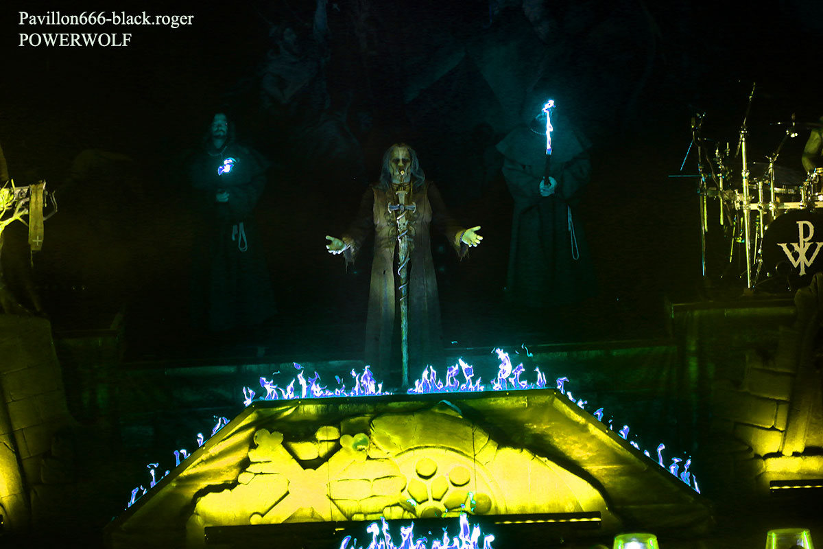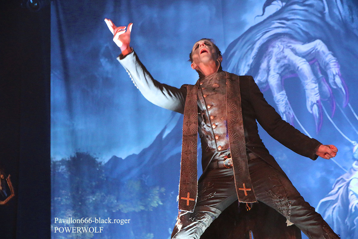 Pour cette messe, deux « enfants de chœurs », deux groupes, AMARANTHE et KISSIN DYNAMITE se sont succédés sur scène avant la célébration grandiose de « The Sacrament Of Sin » de nos amis d’outre-Rhin. A l’appel de cette célébration organisée par Live nation et la SAS Concerts, les fidèles du heavy-metal ont répondu présent afin de « communier » et de « pécher » tous en chœur. La longue file d’attente se déroulait devant le Transbordeur dès la fin d’après-midi et tout le monde n’était pas encore rentré dans les lieux lorsque les teutons de KISSIN DYNAMITE entamaient leur set, il était 18heure 40 ! Ces Allemands de Tübingen profitaient de l’occasion pour nous présenter leur nouvel album « ectasy » cela va de soi. Au menu du heavy/glam énergique avec un frontman charismatique (Hannes) qui en fait des tonnes en live, ce qui vous donne presque le « tournis ». Après 11 années passées au service du metal mélodique cette formation connait toutes les ficelles pour vous mettre dans sa poche, notamment à l’aide de refrains imparables. Hannes rend visite à chacun de ses musiciens pour des clichés bien heavy-metal, ces musiciens qui assurent musicalement parlant, c’est sans appel. Trente minutes pour convaincre l’assistance, pari gagné ils ont convaincu haut la main. Les Suédois d’AMARANTHE arrivent ensuite dans un Transbordeur qui cette fois a fait le plein. Ceux de Gothenburg nous présentent eux aussi un nouvel opus à défendre en live et intitulé « helix ». Cette formation de metal mélodique a la particularité de nous faire apprécier (ou pas) trois voix, une chanteuse et deux chanteur, chacun y allant de son registre particulier. Mais bien entendu la chanteuse Elize contribue à mettre en avant ce groupe qui passe allègrement du heavy à la pop (trop) samplée sans que vous ne vous en rendiez compte. Enfin si, pour certains cela devient un peu trop « mainstream » et ils se retrouvent au bar. Mais pour la grande majorité du public la recette des Suédois fonctionne vous mettant plein de paillettes dans les yeux et vous ne frôlez pas l’indigestion ? Mais après tout chacun est libre d’apprécier (ou pas) cette pop-metal, mélodique à outrance qui vous caresse dans le sens du poil. Le (les) chant sont quand même bien étudiés et les mélodies accrocheuses, mais où est le metal là-dedans ? La meute de loups POWERWOLF se prépare derrière un grand rideau et l’affluence, maintenant à son comble, piaffe d’impatience et c’est normal. Et ce public va hurler dès l’entrée en scène des Allemands découvrant une grandiose mise-en scène propre à Powerwolf. En 15 années d’existence, cette formation a progressivement « travaillé » ses thèmes de prédilection et aujourd’hui le groupe monte, monte, monte et étale sa notoriété acquise à la force du poignet nous proposant un heavy-metal « nouveau », festif dirons certains, mais je n’aime pas trop ce qualificatif. A l’image d’un Sabaton, d’un Ghost ou d’un Batushka, le heavy se renouvelle et attire à nouveau les masses. Au final nous ne pouvons que nous en féliciter car finalement Powerwolf l’a bien mérité. En effet, le « mâle dominant » de la meute, Attila Dorn a le don de rassembler tous les métalleux de par sa présence charismatique et de par sa faculté à faire chanter tout public amateur de liturgie sombre aux décors cinématographiques. Mais Attila n’étant pas le seul sur scène il convient de s’intéresser aux autres musiciens (amis) qui pour chacun d’eux, un rôle bien précis est à tenir et ma foi (sic) ils s’en sortent très bien évoluant dans ce décorum bien étudié, bien éclairé pour un spectacle grandiose mettant en valeur des titres évocateurs et religieusement démoniaques. Comme ce soir, où après « l’intro « lupus daemonis » la cérémonie nous présente notamment des titres extraits de « the sacrament of sin » mais aussi des compositions extraites de leur grande discographie, le tout se terminant par « wolves against the world » bien entendu. Un Powerwolf audacieux nous a comblé ce soir, a démontré que le metal était toujours en évolution et capable de nous surprendre encore et encore, alors « metal is religion », oui, cent fois oui ! Set-list : lupus daemonis, fire and forgive, army of the night, incense & iron, amen & attack, let there be night, demons are girl’s best friend, killers with the cross, armata sthigui, blessed & posessed, where the wild wolves have gone, resurrection by erection, stossgebet, all we need is blood, we drink your blood, lupus de, agnus dei, sanctified with dynamite, coleus sanctus, werewolves of Armenia, wolves against the world. Merci aux organisateurs, au Transbordeur, aux trois formations qui nous ont donné un spectacle d’enfer et merci au public pour l’ambiance. Merci à Elodie de Him-Media pour l’accréditation accordée à Pavillon666. |