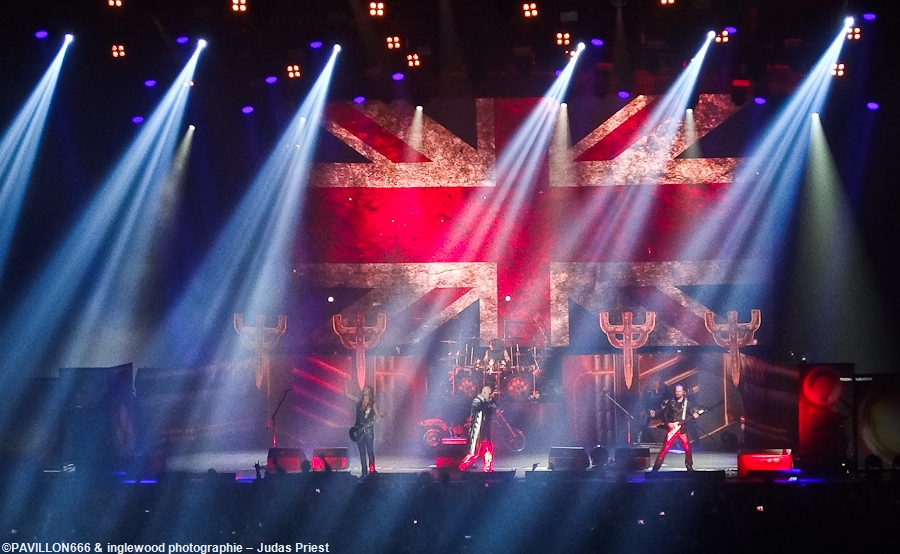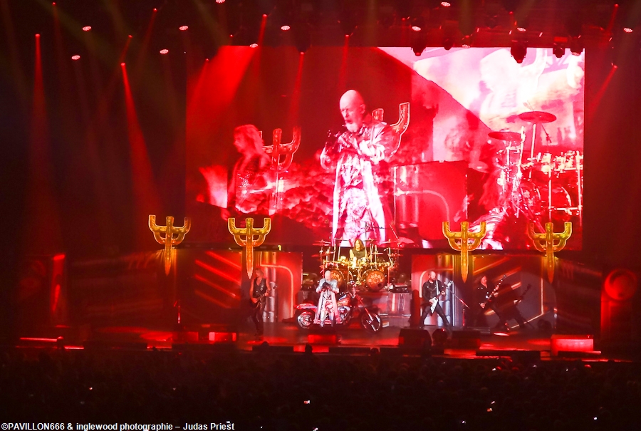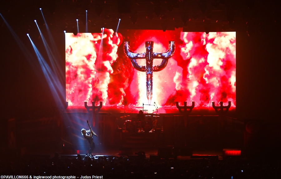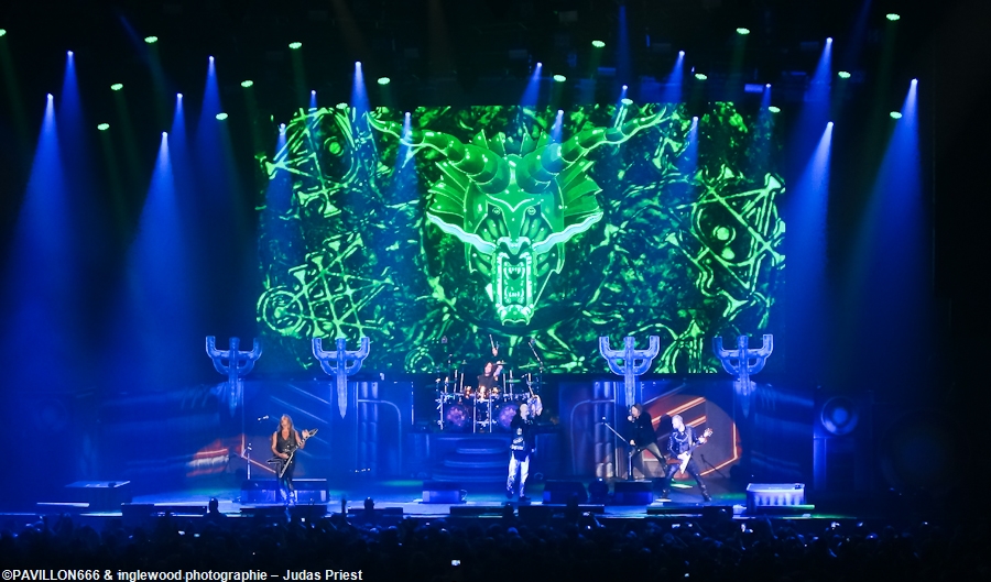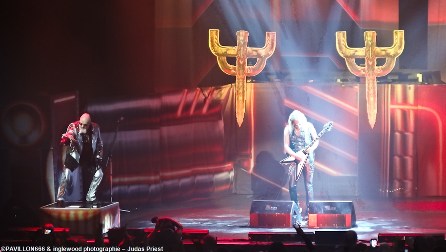 Je dois bien vous avouer que je me suis posé la question à la sortie de ce concert de Judas Priest, ce dimanche 27 janvier au Zénith de Paris. Avant cela, parlons de la première partie et du groupe Disconnected qui en avait la charge. Déjà conquis par leur premier album « White Collosus » sortie l’année dernière, j’avais hâte de voir le colosse se défendre dans l’arène du Zénith. La tâche s’annonçait compliquée tant le fossé avec la tête d’affiche semblait profond. En effet, les Français de Disconnected dispenses un métal moderne, technique (sans être chiant) mélodique et puissant terriblement rafraîchissant. Bref, a priori, pas trop la came du fan du Priest. Disposant d’un peu moins d’une demi-heure, le quintet n’a pu s’exprimer qu’avec cinq morceaux. Un peu perdu sur la grande scène quasiment intégralement bâchée afin de cacher les imposants décors de la tête d’affiche, le groupe a compensé par une bourrasque d’énergie communicative. Ne laissant pas de temps mort, Disconnected a su, au travers d’une set-list intelligente, inviter le public dans son univers. Les premiers rangs ont immédiatement réagi positivement. Une prestation d’excellente facture pour un groupe en devenir et dont on devrait entendre parler. Malgré mon grand âge, je n’avais jamais vu Judas Priest sur scène. C’est un groupe dont je connais quelques albums, dont l’excellent « Firepower », un groupe qui fait partie du paysage mais qui était déjà « du passé » pour moi quand je me suis intéressé au métal et ça ne date pas d’hier. J’étais donc tout impatient de voir des légendes m’en mettre plein la tronche, de succomber aux joies des envolés de flying V, de faire résonner la voix de castra sur des lyrics déchaînes… Et bien oui !! tout était là, des décors jaunes-orange bien kitsch, des projections en images de synthèse reprenant les logos des albums (bien kitsch), des costumes de scènes cuirs/clous, la Harley, la cravache, du « painkiller » et du « breaking the law » ! Le fan de base fut aux anges et se fit entendre et voir, en témoignent les pogos et les chœurs sur TOUS les titres. Les titres, que des classiques, furent exécutés de manière irréprochable, Rob Halford sillonnent la scène de droite à gauche, atteint toutes les notes et les deux guitaristes, Richie Faulkner et Andy Sneap tricotent magistralement. Une superbe comédie musicale Heavy Metal. Quoi ?! Eh oui, c’est là que le bât blesse à mon sens, le groupe semble en pilotage automatique, zéro spontanéité et zéro communication avec son public. Il n’y a que Halford et Faulkner qui soient en avant, les trois autres restes en retrait tels des musiciens de session, du coup, visuellement on s’ennuie un peu. Quant à la mise en scène, si le côté kitsch amuse au début, il devient un peu fade et donne cette désagréable impression cheap. Quelque effet pyrotechnique aurait ravivé cette mise en scène ! Peut -être avais-je trop d’attentes ? Quoi qu’il en soit, ce fut un bon spectacle et j’en suis sorti globalement satisfait tout comme la grande majorité du public présent, il suffisait d’écouter les commentaires et de voir les mines ravies dans les couloirs du Zénith. Merci à Olivier Garnier pour l'invitation accordée à Pavillon666. La Set List : Firepower Running Wild Grinder Sinner The Ripper Lightning Strike Desert Plains No Surrender Turbo Lover Killing Machine The Green Manalishi (With the Two Prong Crown) Night Comes Down Guardians Rising From Ruins Freewheel Burning You've Got Another Thing Comin' Hell Bent for Leather Painkiller Rappel: The Hellion Electric Eye Metal Gods Breaking the Law Living After Midnight Pour des raisons de confidentialité YouTube a besoin de votre autorisation pour charger. Pour plus de détails, veuillez consulter nos Politique de confidentialité. |