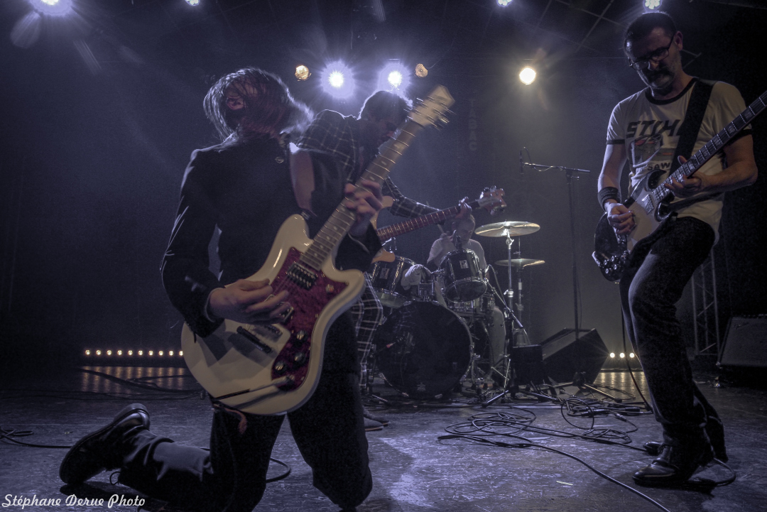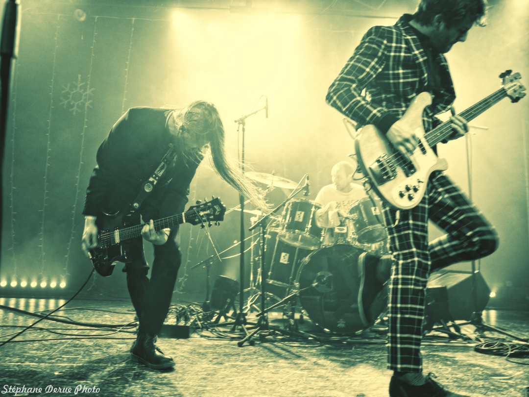 Pour fêter ses 10 ans, la MJC LE SILO a eu la bonne idée de nous concocter une soirée endiablée sous le signe du partage, des rencontres et de la diversité musicale. bien pro. Pour commencer, les Mégots, groupe fondé en 2011, nous ont distillé un subtil mélange de chanson française teinté de rock. Des personnages hauts en couleurs, des histoires savoureuses et drôles, interprétés avec brio par de très bons musiciens, (guitare, contrebasse, batterie et accordéon ) et un chanteur qui outre son talent d'interprète est également Membres du groupe Christophe Gadois : Chant. Nicolas Devillers : Contrebasse Yannick Broeckx : Batterie, Cajon. Philippe Thouan : Accordéon. Alix Laplanche : Guitare. 2HeadedDog. Rien qu'en voyant le nom de ce groupe sur une affiche, on sait d'avance que l'on ne fera pas le déplacement pour rien. A chaque prestation, le niveau monte d'un cran....ou deux comme ce soir. Car ils étaient en très grande forme nos quatre lascars. Ce groupe punk-rock a ce petit quelque chose en plus qui fait la différence. Je crois que cela s'appelle le talent. Très bons musiciens, une rythmique qui bastonne, des guitares qui régalent, et trois voix qui s'harmonisent à merveille. Les morceaux vous rentrent dedans et c'est difficile de ne pas avoir envie de sauter dans tous les sens... Heureusement j'ai l'excuse de devoir faire les photos car de toute façon mon coeur ne tiendrait pas !!! Le jeu de scène est également captivant entre le bassiste, Anthyme, une sorte de pantin désarticuler et Djess à la guitare qui est un véritable zébulon. Un disque en préparation et une tournée cet été.... aucune excuse pour passer à côté de ce bijou. Membres du groupe MANU/Drums+vox DJESSY/Guitars+Vox OLIVIER/Guitars+Vox ANTHYME/Bass+Vox Yousaidstrange : Groupe normand, originaire de Giverny, ce quatuor est promis à un bel avenir. Leur album, enregistré à Portland, est un mélange de rock psyché, de dream-pop et parfois de quelques accents new-wave. Une batterie magistrale, une basse bien présente et des guitares torturées servent des compositions ambitieuses, lancinantes, entêtantes, parfois déroutantes mais toujours d'une richesse extrême. Un côté expérimental vient enrobé le tout avec un énorme travail sur le son, l'ambiance. Allez vite sur leur page FB pour les découvrir car ce groupe vaut que l'on prenne la peine de le découvrir. Membres du groupe Eliot / Matthieu / Martin / Hector |
