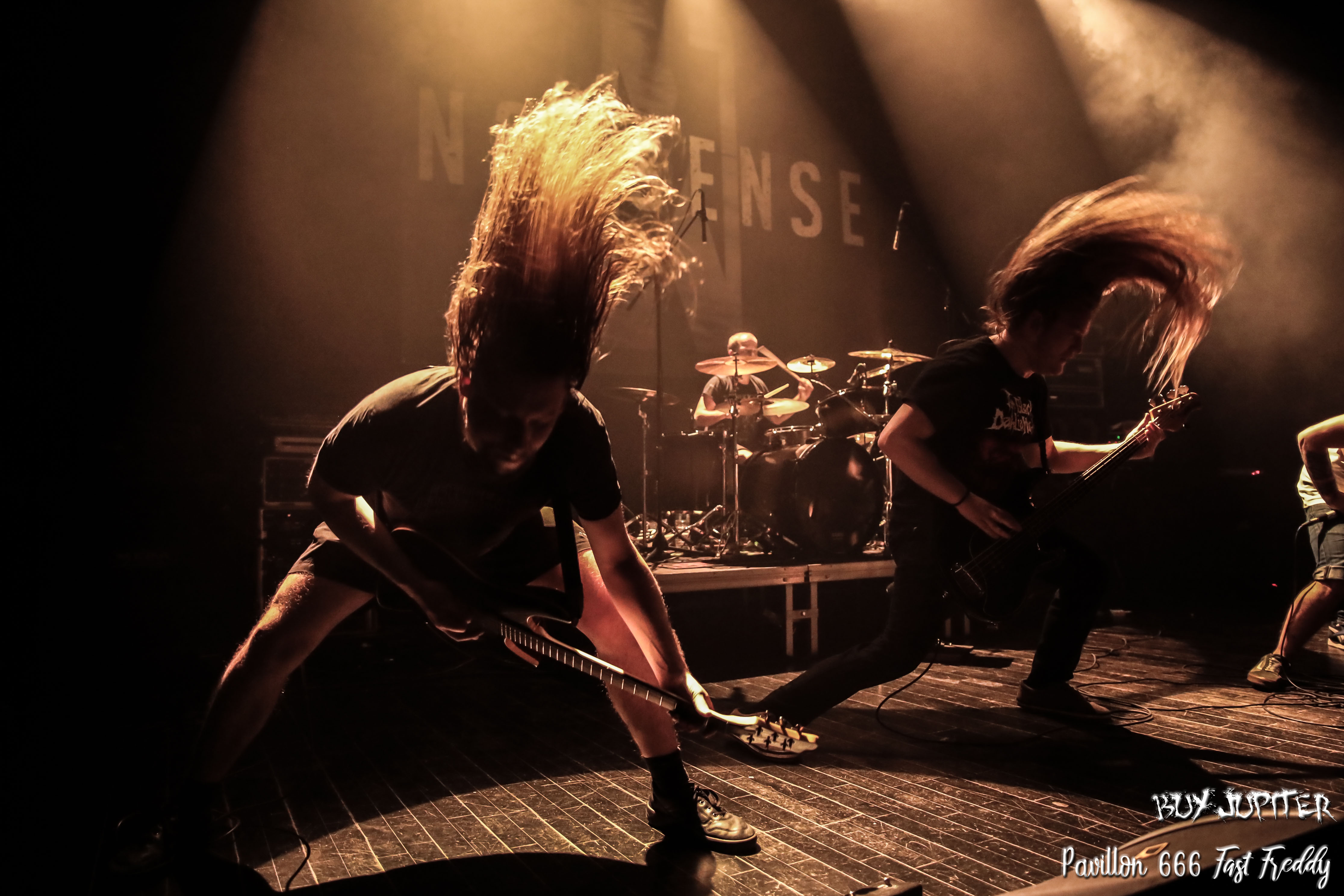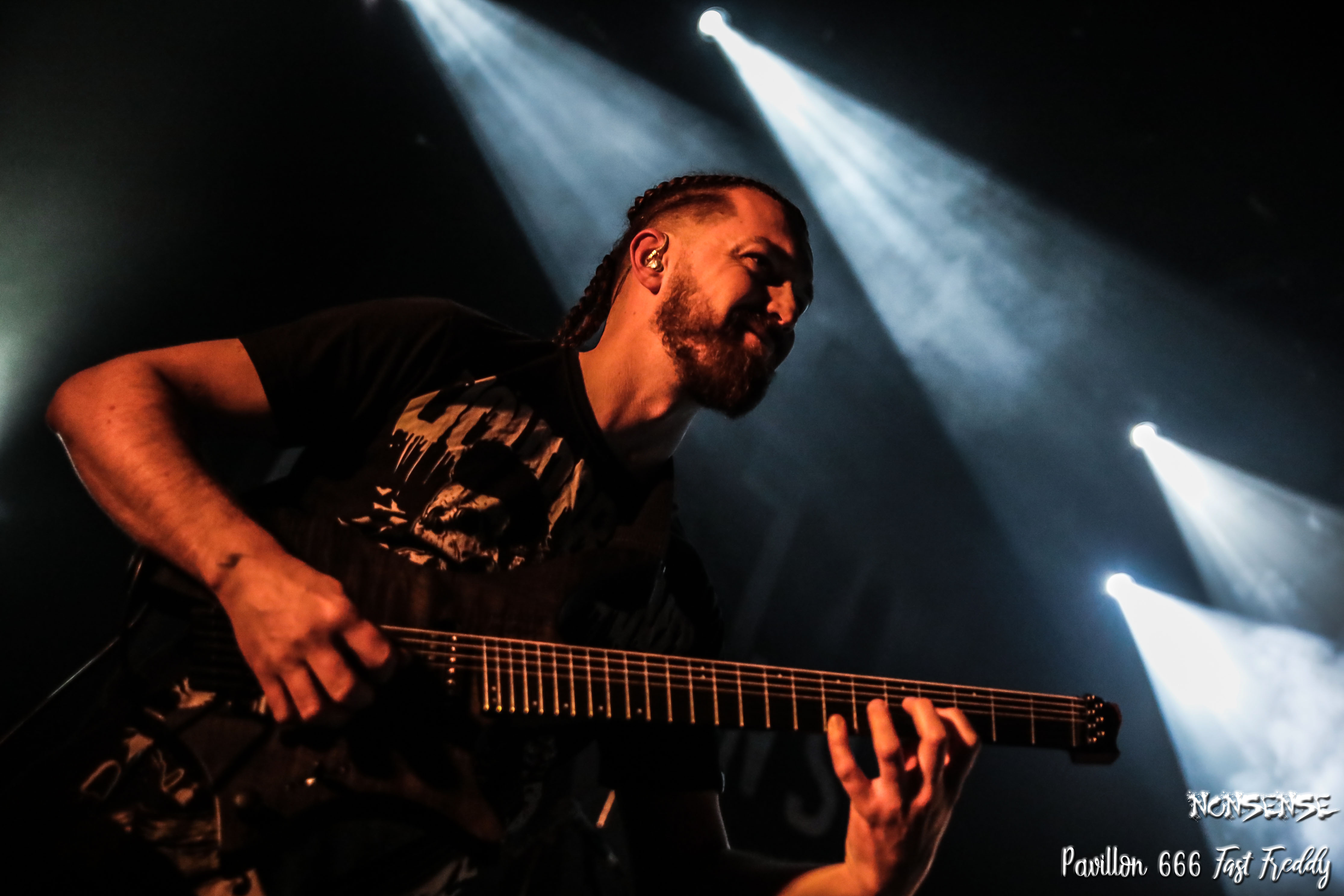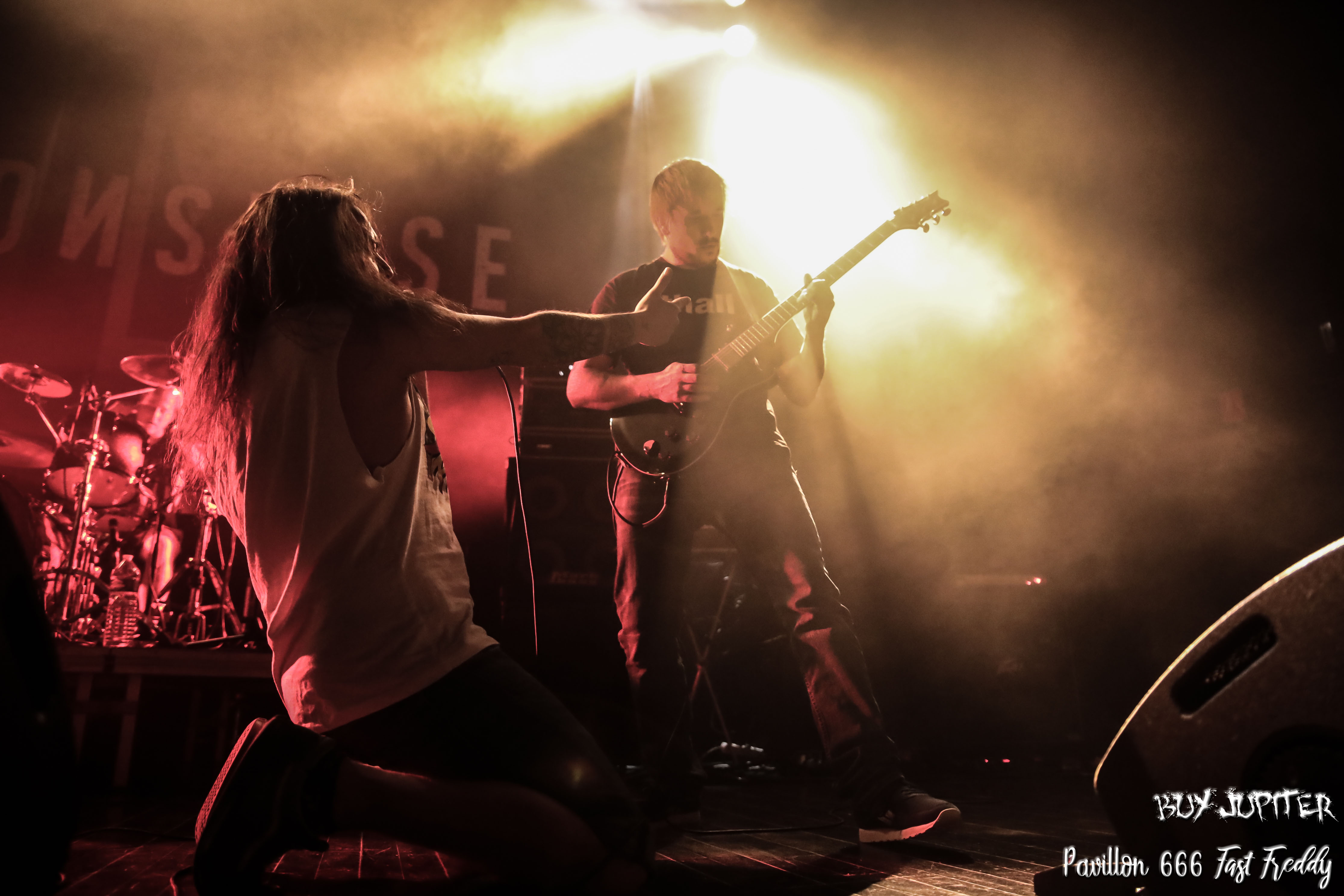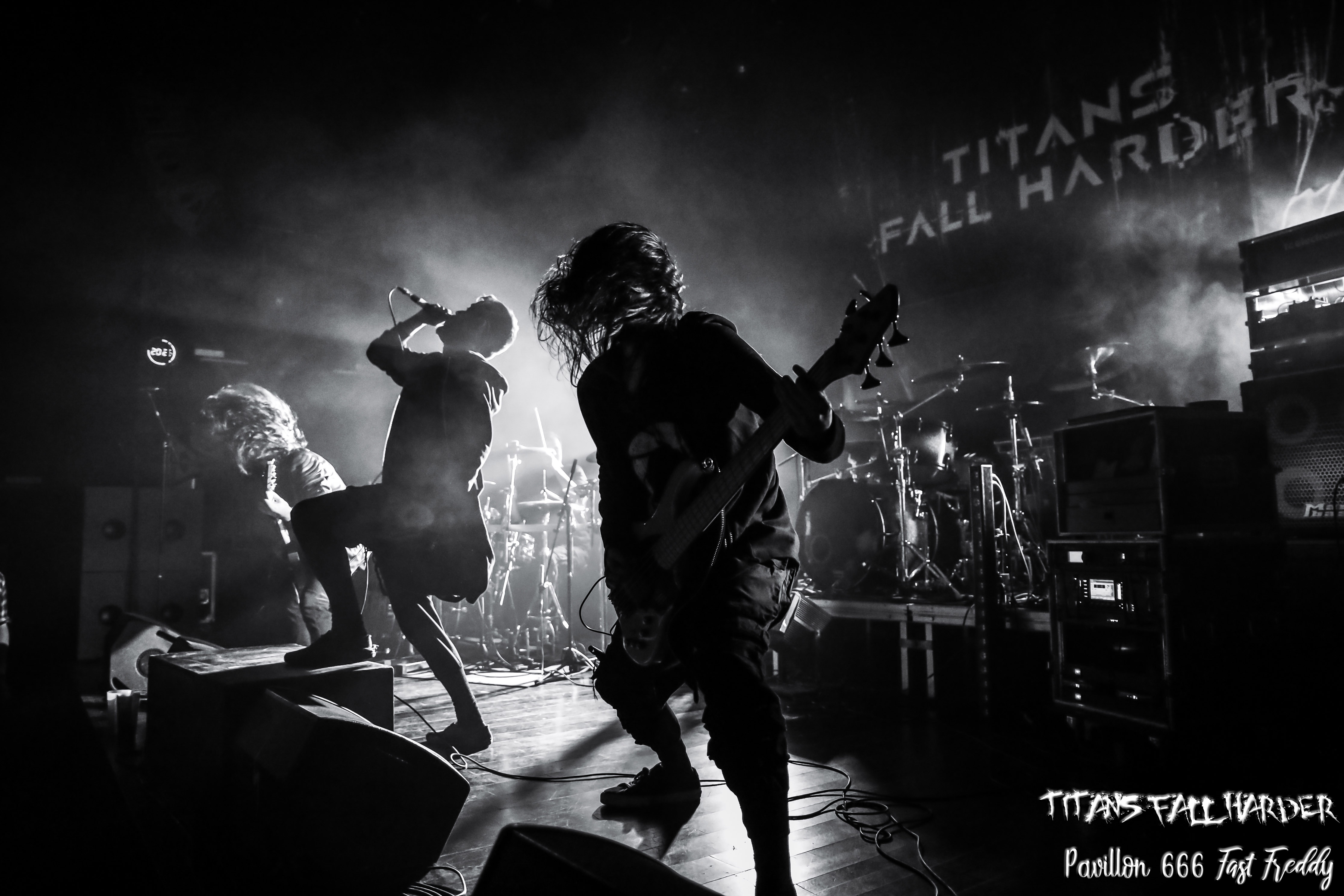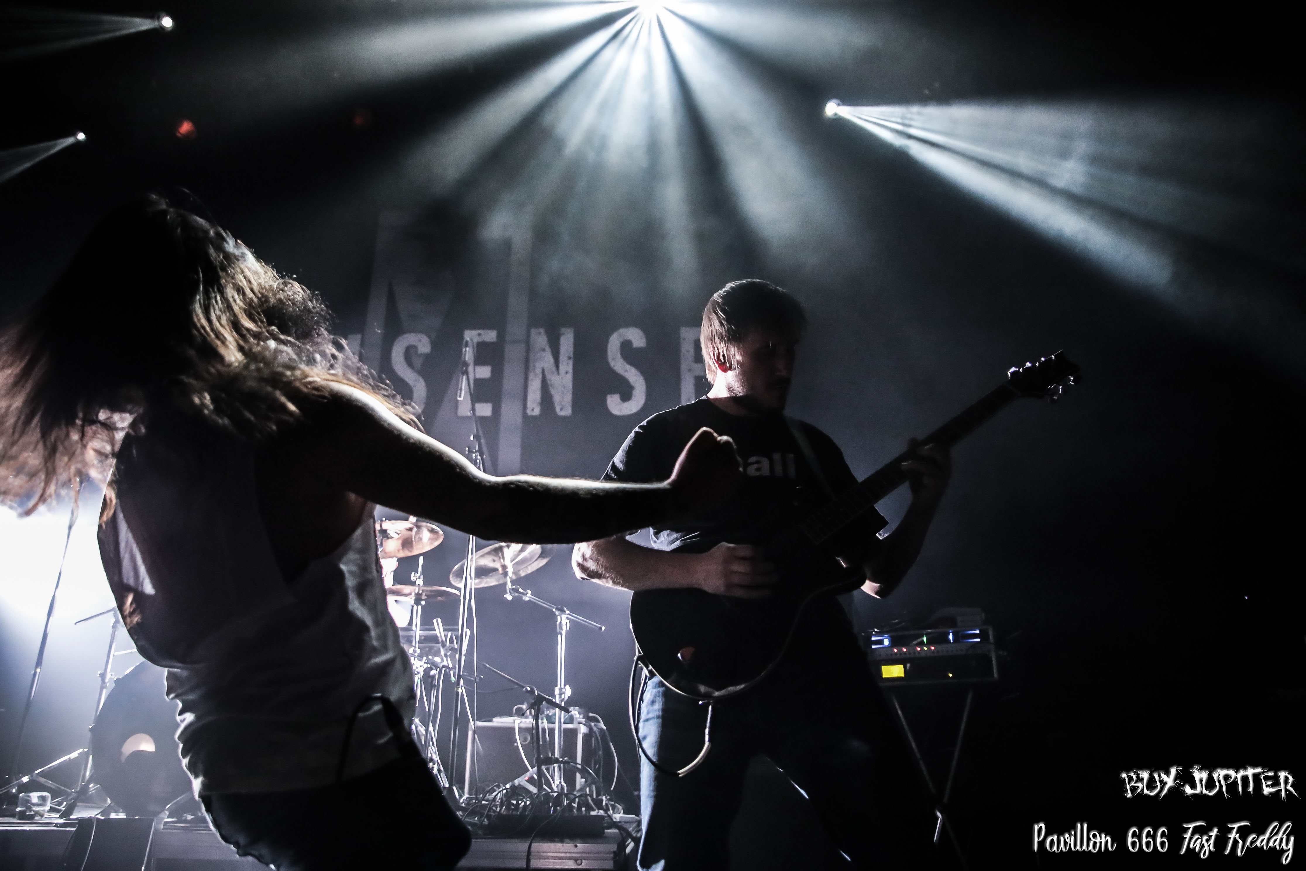 BRON / JACK JACK / 8 février 2019 By Fast Freddy C’est la même affiche que celle de la release party à l’occasion de la sortie du 2ème opus de BUY JUPITER il y a un peu plus d’un an sauf que l’ordre est quelque peu inversé et pour cause : c’est au tour de NONSENSE de fêter comme il se doit la sortie de son dernier EP « Away from Black Days » et pour l’occasion, pourquoi changer une équipe qui a fait ses preuves ? Sauf que cette fois-ci, c’est au JACK JACK à Bron, sous la houlette de SOUND LIKE HELL que s’est tenue cette sauterie !! Let’s go ! C’est à TITANS FALL HARDER que revient l’honneur et la charge d’amener le public du JACK JACK à température ! Jeune formation grenobloise, TITANS FALL HARDER, qui puise son inspiration dans des groupes tels que MESHUGGAH, ARCHITECTS ou encore SEPTICFLESH, n’y va pas par 4 chemins ! D’emblée, ils ouvrent la boîte à gifles avec des morceaux et ne la refermeront qu’une quarantaine de minutes plus tard. Sur une scène sans light de façade, les ombres de TITANS FALL HARDER se démènent comme des diables, écho cependant peu retentissant dans un public encore peu nombreux en ce début de soirée. Les morceaux sont envoyés avec puissance avec un son qui fait la part belle à la basse et la double pédale, style du groupe oblige mais qui d’après certains amènent un sentiment de répétition ! Bref, ne faisons pas la fine bouche ! Nous avons eu droit à une belle entrée en matière qui indique que la soirée sera placée sous le signe de l’énergie et de la sueur qui va avec ! Question débauche d’énergie, on peut faire confiance à BUY JUPITER, combo lyonnais qui s’est inscrit dans le paysage Metal avec deux EP (Departure et Crossworld) de très bonne facture -en attendant celui qui va clore leur trilogie et dont la sortie est annoncée en juin- et des live puissants, tant sur le plan musical que sur la prestation scénique du quintet qui ne joue pas petits bras sur les planches ! Et la dérouillée de ce soir s’inscrit dans la droite ligne de ce qu’ils font de meilleur dans le registre ! 50 minutes de show non-stop passées à la vitesse de l’éclair plébiscité par un public désormais en nombre et reconnaissant de cette performance une fois encore superbe ! Pi (chant) est intenable, grimpant sur les enceintes, les murs, se mêlant au public à maintes reprises et offrant des vocalises variées dans ses hurlements ! Martin (basse) livre une excellente prestation scénique également, énergique (j’ai mal pour ses cervicales), consistante tout comme Manus et Vinz (Guitares) ! Lucas n’est pas en reste derrières ses fûts qu’il martèle avec force pour donner encore plus de poids à l’ensemble l Vous l’aurez compris, chacun donne tout ce qu’il a en soute, sans retenue pour un résultat final époustouflant qui incite à la bagarre… Comme toujours oserais-je dire ! BUY JUPITER possède toutes les qualités pour prétendre à être accroché sur des affiches prestigieuses ! Y’a du potentiel qu’on se le dise ! Place aux très attendus NONSENSE pour un moment de gloire ! Né au début des années 2010 sous l’impulsion de Seb (guitare), NONSENSE a déjà un bon p’tit bout d’route à son actif ! Après avoir joué à deux reprises en ouverture de TEXTURES (2014-2016) et partagé la scène du SYLAK (2016), les lyonnais ont pris le temps d’enregistrer un premier EP « On earth » (2016) auquel succèdera l’opus « Away from Black Days » qui sort ce jour et qui est le prétexte de la fiesta du jour ! A son arrivée sur scène, le quintet lyonnais est chaleureusement ovationné par une foule acquise à la cause et qui est plongée dans le « Coma » titre du premier morceau ! « The urge », morceau phare de dernier EP et qui a fait l’objet d’un clip, suit dans la foulée et pousse déjà l’ambiance au sommet ! Les compos ont de quoi donné le tournis aux adeptes des morceaux plutôt linéaires ou convenus ! Ici, les portées musicales sont loin d’être droites ! Les changements de rythme sont foisons et la voix d’Olivier, tout en maitrise, balaie large, des hurlements agressifs de circonstance à des parties claires et chantées qui font échos à des passages plutôt prog tout en technique ou des moments bien Djent mis en valeur par un chaos rythmique puissant… Influences multiples obligent ! Les yeux brillants et le sourire sur le visage des membres du groupe au fur et à mesure que le live déroule traduisent à la fois la joie qui est la leur de pouvoir faire partager de la sorte leurs nouveaux morceaux mais également la satisfaction de voir le public totalement en osmose avec eux… Olivier va d’ailleurs y aller de son bain de foule ! « Redeeming light » et « Inertia » nous amènent déjà vers la fin du set avec toujours la même ferveur et la même sueur qui se dégagent de la scène… et de la fosse ! « Black Days » vient porter l’estocade au grand dam de tous, tant la fête fut réussie ! Merci aux groupes pour leur prestation aboutie, mention spéciale pour NONSENSE et au Jack-Jack pour l'organisation, à SOUND LIKE HELL pour la promotion, au JACK JACK pour son accueil et au public pour la folie partagée ! Une bien belle release party mes aïeux ! |