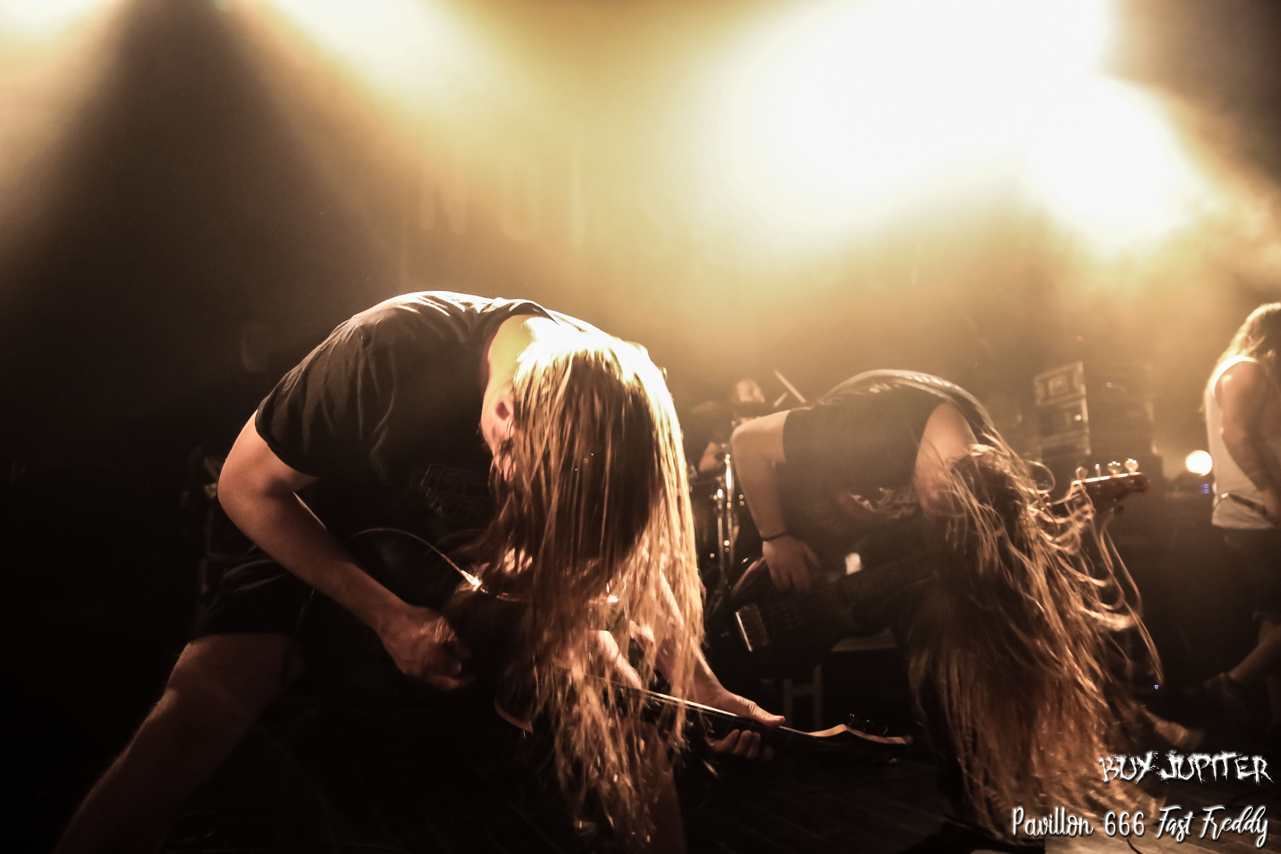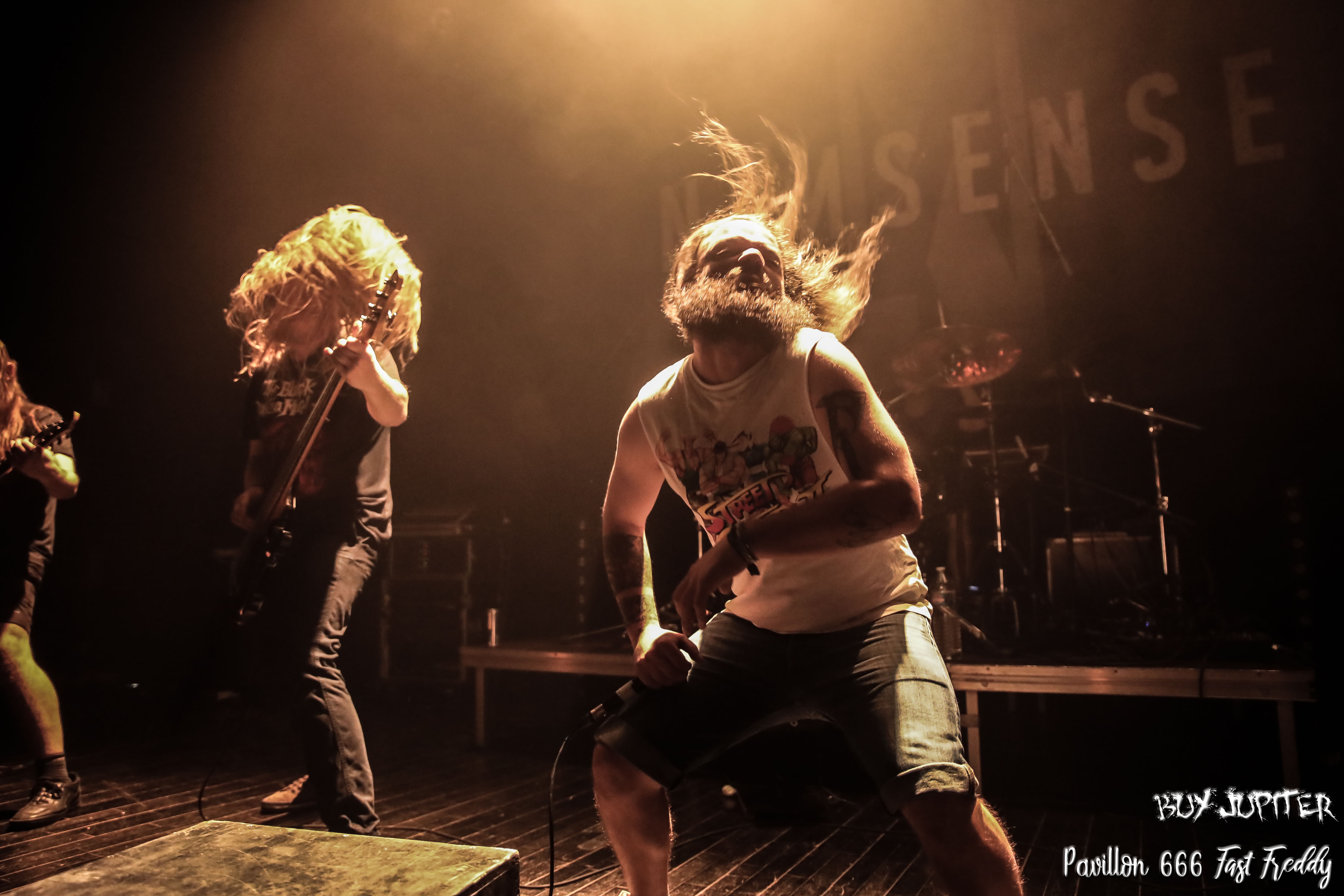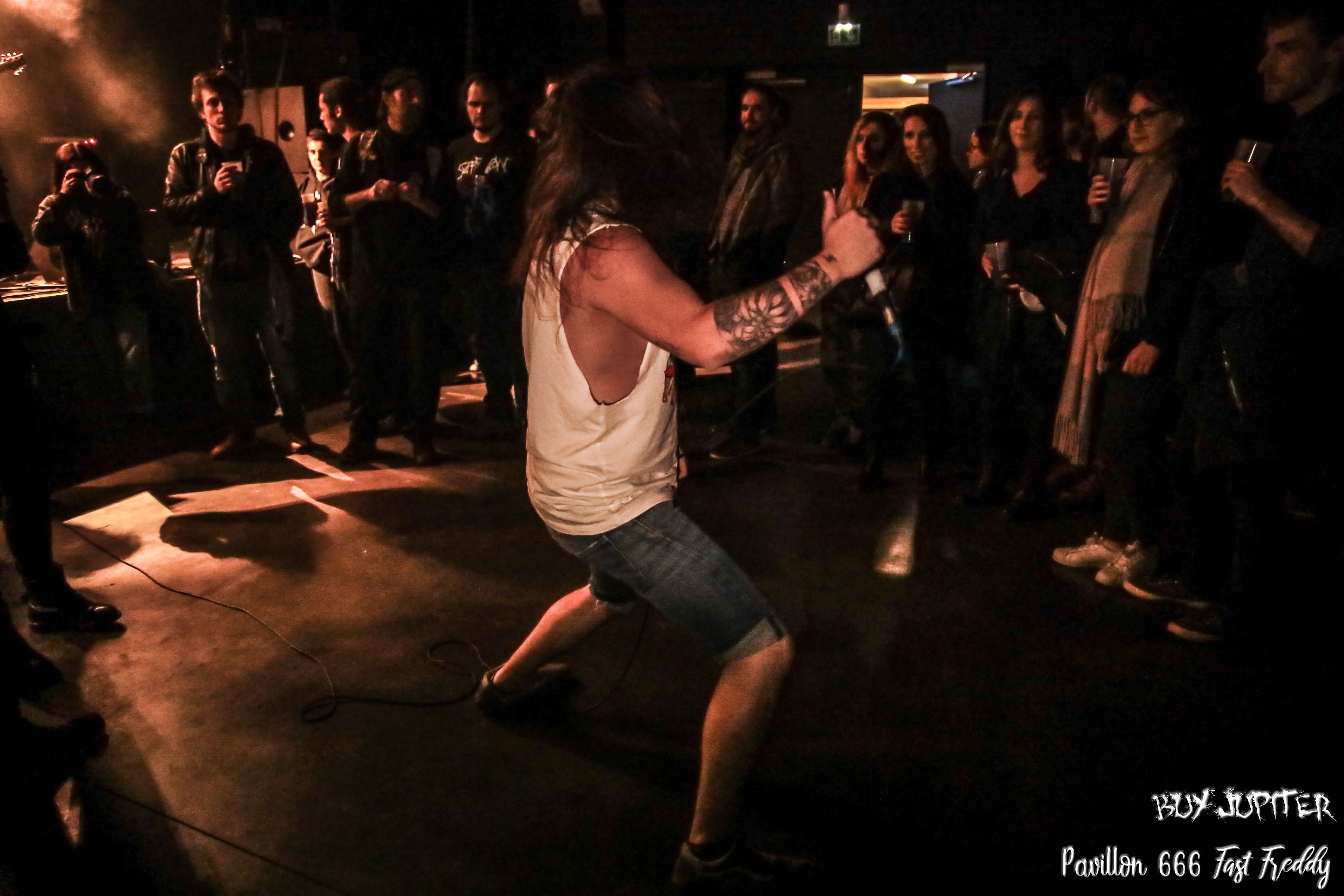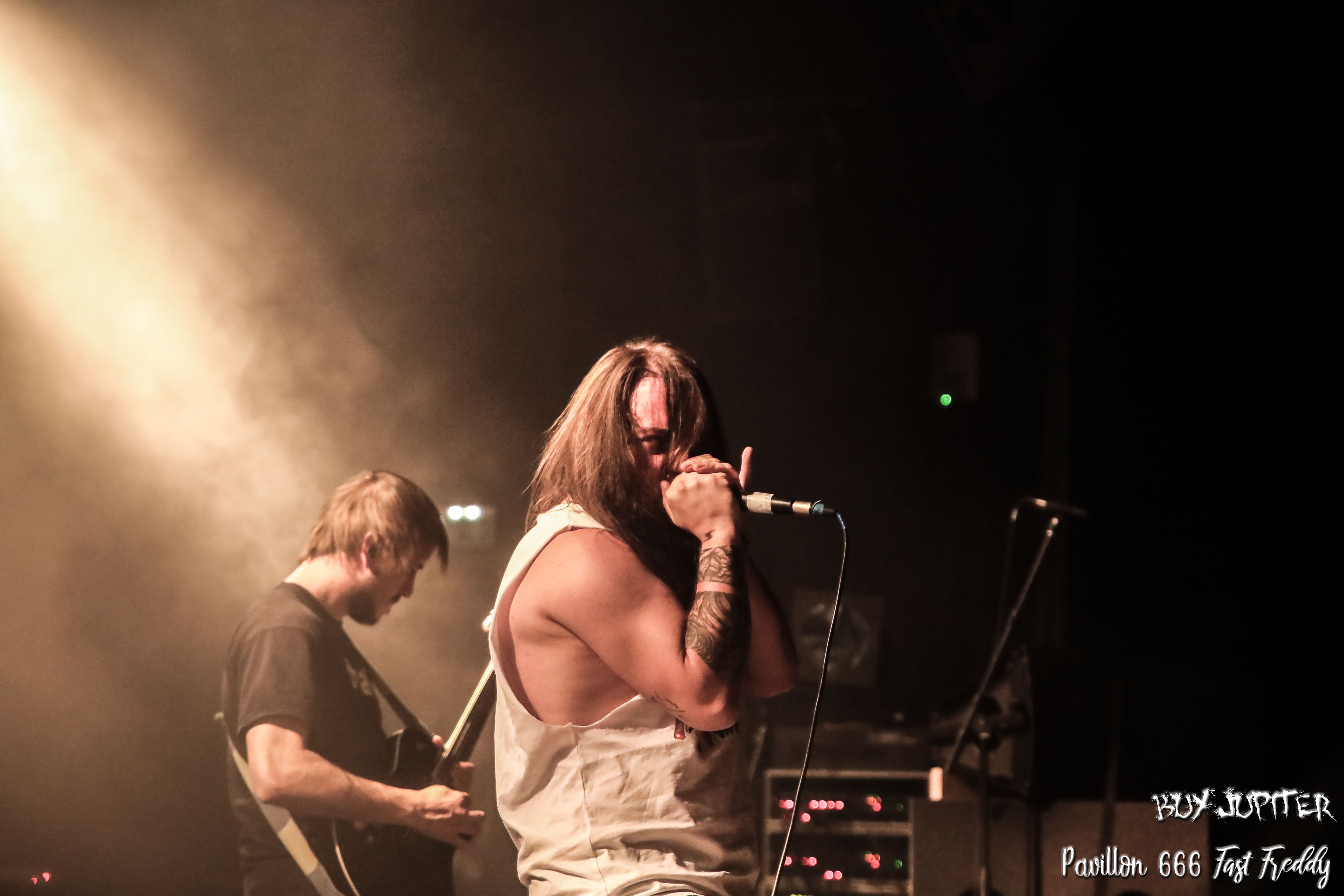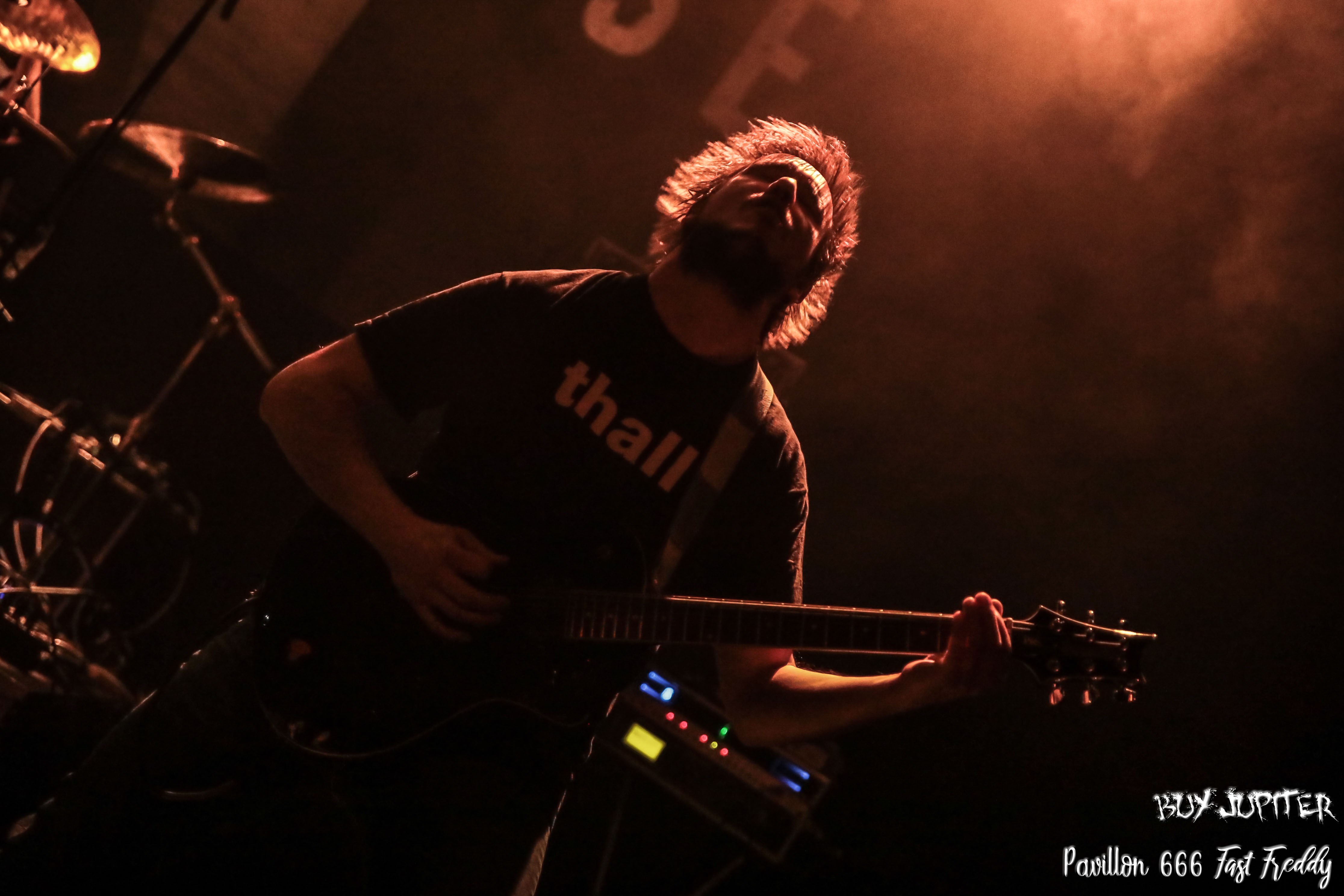 BRON / JACK JACK / 8 février 2019 By Fast Freddy C’est la même affiche que celle de la release party à l’occasion de la sortie du 2ème opus de BUY JUPITER il y a un peu plus d’un an sauf que l’ordre est quelque peu inversé et pour cause : c’est au tour de NONSENSE de fêter comme il se doit la sortie de son dernier EP « Away from Black Days » et pour l’occasion, pourquoi changer une équipe qui a fait ses preuves ? Sauf que cette fois-ci, c’est au JACK JACK à Bron, sous la houlette de SOUND LIKE HELL que s’est tenue cette sauterie !! Let’s go ! C’est à TITANS FALL HARDER que revient l’honneur et la charge d’amener le public du JACK JACK à température ! Jeune formation grenobloise, TITANS FALL HARDER, qui puise son inspiration dans des groupes tels que MESHUGGAH, ARCHITECTS ou encore SEPTICFLESH, n’y va pas par 4 chemins ! D’emblée, ils ouvrent la boîte à gifles avec des morceaux et ne la refermeront qu’une quarantaine de minutes plus tard. Sur une scène sans light de façade, les ombres de TITANS FALL HARDER se démènent comme des diables, écho cependant peu retentissant dans un public encore peu nombreux en ce début de soirée. Les morceaux sont envoyés avec puissance avec un son qui fait la part belle à la basse et la double pédale, style du groupe oblige mais qui d’après certains amènent un sentiment de répétition ! Bref, ne faisons pas la fine bouche ! Nous avons eu droit à une belle entrée en matière qui indique que la soirée sera placée sous le signe de l’énergie et de la sueur qui va avec ! Question débauche d’énergie, on peut faire confiance à BUY JUPITER, combo lyonnais qui s’est inscrit dans le paysage Metal avec deux EP (Departure et Crossworld) de très bonne facture -en attendant celui qui va clore leur trilogie et dont la sortie est annoncée en juin- et des live puissants, tant sur le plan musical que sur la prestation scénique du quintet qui ne joue pas petits bras sur les planches ! Et la dérouillée de ce soir s’inscrit dans la droite ligne de ce qu’ils font de meilleur dans le registre ! 50 minutes de show non-stop passées à la vitesse de l’éclair plébiscité par un public désormais en nombre et reconnaissant de cette performance une fois encore superbe ! Pi (chant) est intenable, grimpant sur les enceintes, les murs, se mêlant au public à maintes reprises et offrant des vocalises variées dans ses hurlements ! Martin (basse) livre une excellente prestation scénique également, énergique (j’ai mal pour ses cervicales), consistante tout comme Manus et Vinz (Guitares) ! Lucas n’est pas en reste derrières ses fûts qu’il martèle avec force pour donner encore plus de poids à l’ensemble l Vous l’aurez compris, chacun donne tout ce qu’il a en soute, sans retenue pour un résultat final époustouflant qui incite à la bagarre… Comme toujours oserais-je dire ! BUY JUPITER possède toutes les qualités pour prétendre à être accroché sur des affiches prestigieuses ! Y’a du potentiel qu’on se le dise ! Place aux très attendus NONSENSE pour un moment de gloire ! Né au début des années 2010 sous l’impulsion de Seb (guitare), NONSENSE a déjà un bon p’tit bout d’route à son actif ! Après avoir joué à deux reprises en ouverture de TEXTURES (2014-2016) et partagé la scène du SYLAK (2016), les lyonnais ont pris le temps d’enregistrer un premier EP « On earth » (2016) auquel succèdera l’opus « Away from Black Days » qui sort ce jour et qui est le prétexte de la fiesta du jour ! A son arrivée sur scène, le quintet lyonnais est chaleureusement ovationné par une foule acquise à la cause et qui est plongée dans le « Coma » titre du premier morceau ! « The urge », morceau phare de dernier EP et qui a fait l’objet d’un clip, suit dans la foulée et pousse déjà l’ambiance au sommet ! Les compos ont de quoi donné le tournis aux adeptes des morceaux plutôt linéaires ou convenus ! Ici, les portées musicales sont loin d’être droites ! Les changements de rythme sont foisons et la voix d’Olivier, tout en maitrise, balaie large, des hurlements agressifs de circonstance à des parties claires et chantées qui font échos à des passages plutôt prog tout en technique ou des moments bien Djent mis en valeur par un chaos rythmique puissant… Influences multiples obligent ! Les yeux brillants et le sourire sur le visage des membres du groupe au fur et à mesure que le live déroule traduisent à la fois la joie qui est la leur de pouvoir faire partager de la sorte leurs nouveaux morceaux mais également la satisfaction de voir le public totalement en osmose avec eux… Olivier va d’ailleurs y aller de son bain de foule ! « Redeeming light » et « Inertia » nous amènent déjà vers la fin du set avec toujours la même ferveur et la même sueur qui se dégagent de la scène… et de la fosse ! « Black Days » vient porter l’estocade au grand dam de tous, tant la fête fut réussie ! Merci aux groupes pour leur prestation aboutie, mention spéciale pour NONSENSE et au Jack-Jack pour l'organisation, à SOUND LIKE HELL pour la promotion, au JACK JACK pour son accueil et au public pour la folie partagée ! Une bien belle release party mes aïeux ! |