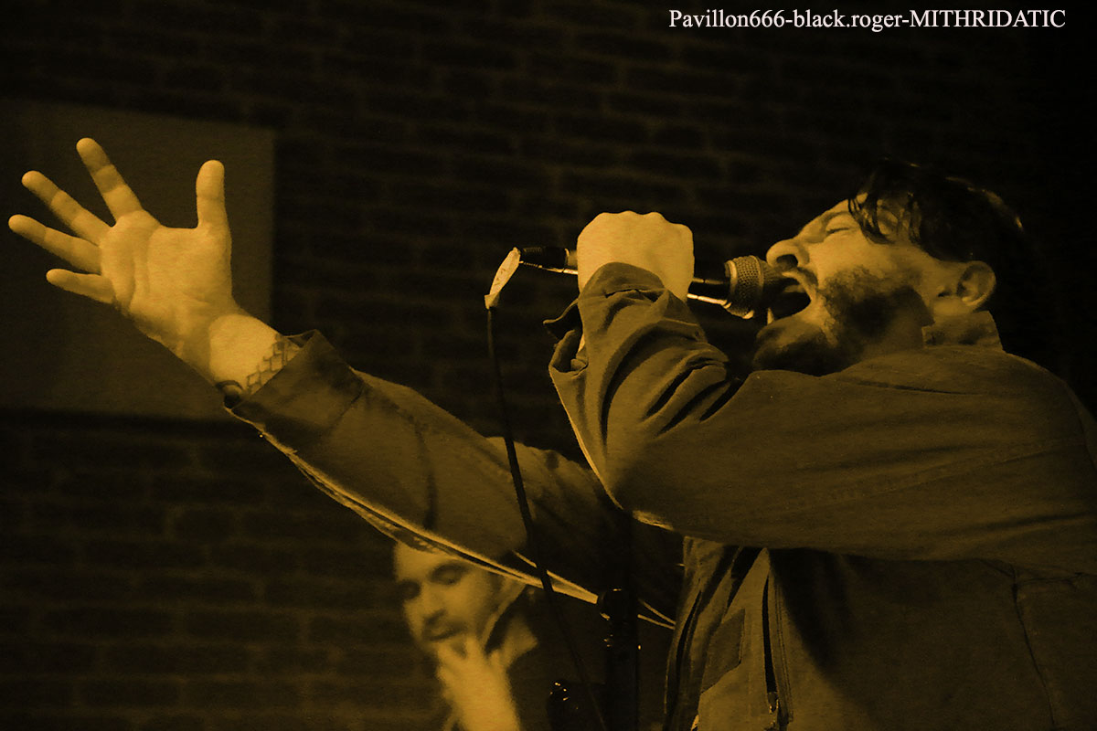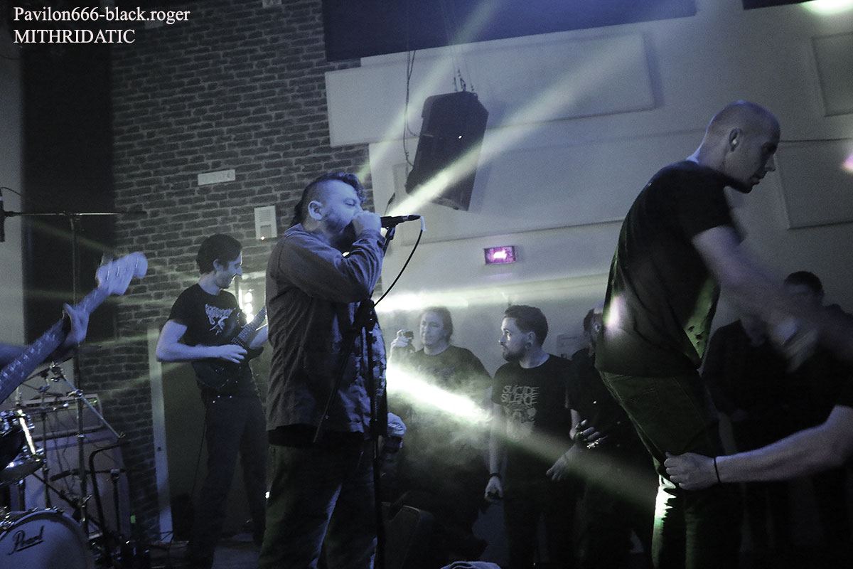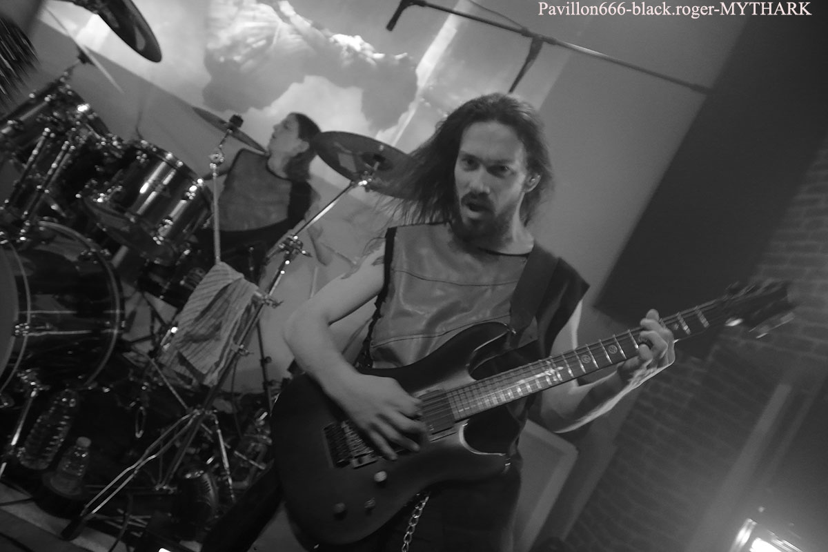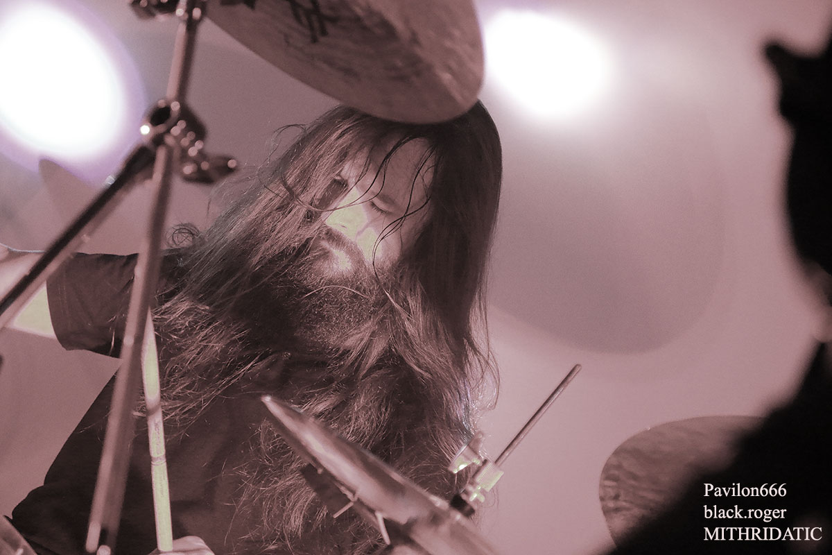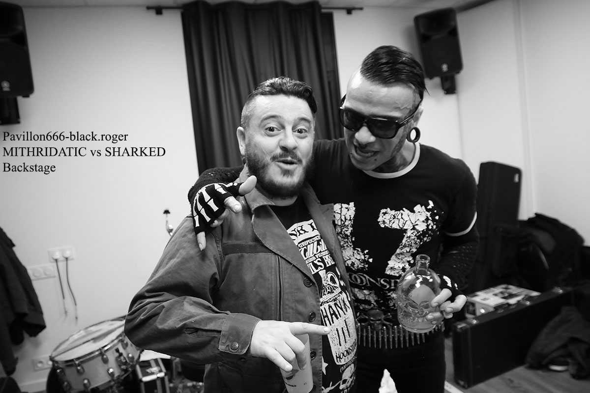 Ce sont nos amis Stéphanois de BROKEN DOWN qui ouvrent en fin d’après-midi devant un public acquit à leur cause. Au menu du death old-school influencé par Bolt Thrower, Morbid Angel, Entomber, Obituary etc…Le groupe nous offre une prestation de metal-de-la-mort-qui-tue pur jus, peut-être classique, mais toujours aussi efficace. Les musiciens se font plaisir et nous aussi par, la même occasion. Voix caverneuse à souhait, miaulement de la guitare même en dérapage death-reggae, basse turbo, claviers pour l’ambiance et batterie plombée, tout y est sur des compositions bien à eux. Merci les gars vous revenez quand vous voulez. Mais où ? Sur les planches d’ici ou d’ailleurs, vous assurez grave ! Bien souvent ce genre de petit festival nous fait découvrir de jeunes groupes en devenir. C’est le cas ce soir lors de ce Metal Fest Winter Blast avec ASHED WINTER de Roanne qui a joué afin de compléter l’affiche initiale au pied levé. Quatre jeunes musiciens sur scène (le bassiste étant absent) pour du thrash-death de bonne facture ma foi. Derrière le micro nous retrouvons deux chanteurs/guitaristes se relayant pour des compositions intéressantes, Lana (honneur au filles) à la guitare rythmique et un batteur qui maltraite ses fûts de belle manière. Alors fatalement nous avons apprécié, groupe en devenir comme dit précédemment, oui pourquoi pas ! Nous restons dans le thrash-death, mais cette fois-ci avec une brutalité inouïe en live, où nous avons un frontman à forte personnalité, au look incroyable et qui en fait des tonnes sur scène. SHARKED n’est pas venu ce soir à la Tour-En-Jarez pour nous susurrer de douces mélopées dans le creux de l’oreille propices à l’endormissement. Non, ici le réveil est brutal, la voix arrache et interpelle, le guitariste scalpel nous découpe ce qu’il nous reste de neurones, le bassiste propulse un mur du son, sans oublier des claviers, des samples dirigés par ArtRose (honneur aux filles encore) et pour enfoncer le clou, voici un batteur mitrailleuse qui donne envie de tout casser dans la salle. Quelle claque mes amis, c’est presque l’arrêt cardiaque à chaque titre. Mais nous sommes « maso » alors on aime ça que voulez-vous ! On vous revoit quand pour prendre à nouveau notre dose ? Set-list en photo. Pas le temps de se remettre de nos émotions que les jeunes loups Lyonnais de PRISMERIA grimpent sur scène afin de nous achever dans un déluge thrash/death au goût de « core ». Leur mélange est explosif car du côté des guitares ça ne rigole pas avec des soli bien placés et appréciés, d’ailleurs un morceau instrumental viendra, étayer tout cela. En moins de deux ans, à l’aide de prestations « coup de poings » et la sortie d’un premier EP intitulé « Lost Individual Thoughts » ces « gones » ont frappé fort dans la scène locale Et chaque prestation, comme celle de ce soir avec de nouveaux titres à la clé, vient confirmer tout le bien que l’on pense d’eux, c’est sans appel ! Nous continuons cette belle soirée avec les Stéphanois de MYTHARK qui nous proposent du black-metal. Mais classer ce groupe dans ce style ce serait trop réducteur, disons que nous naviguons ici sur les eaux troubles des légendes et mythes dans une veine plutôt extrême et symphonique où l’on retrouverait par exemple les démarches d’un Septicflesh, d’un Emperor et pourquoi pas celle des Autrichiens de Summoning. Les costumes sont sombres et cloutés en adéquation avec leur musique qu’ils semblent vivre avec passion. Leur prestation fut sombre également puissante, remarquée et remarquable. Un nouvel album sortira prochainement alors on croise les doigts. En attendant, ce soir cette entité sulfureuse a marqué les esprits. Afin de terminer en beauté ce « Winter Blast » il nous fallait devant et avec nous les Stéphanois que l’on ne présente plus j’ai nommé MITHRIDATIC. Un Mithridatic toutes griffes dehors avec ces griffes qui parcourent le cerveau de son géniteur « Guitou ». Et puis tout ne serait pas possible sans les riffs et soli empoisonnés d’Alex et de Romain, sans la basse monstrueuse de Remolow et enfin dans le tremblement de terre occasionné par le batteur Kevin paradis. Mithridatoc va encore une fois nous lacérer la matière grise à l’aide d’envois presque suffocants où se mêlent black, death et sludge. Pour un résultat bien boueux comme les marécages du bayou de Louisiane et décapant comme du bourbon frelaté de contrebande, où l’on vomit sa bile (sic). Guitou et sa bande nous offrirons ce soir le partage des boissons houblonnées et le partage d’une prestation hors-norme qui déchainera le public sur des déferlements physiques incontrôlés. Bref, c’était Mithridatic et vous savez quoi ? Eh bien c’était énorme (qui a dit comme d’habitude ?). Set-list en photo. Voici venu maintenant le temps des remerciements qui se fera en deux parties, les plus et les moins de ce fest. -les plus : une organisation au top, merci Bloody noise, des timings respectés, des groupes qui ont assuré et se sont entraidés, un accueil des plus sympathiques et un buffet garni, des petits stands sympas. -les moins : eh bien pas de moins tout était bien, on reviendra c’est sûr ! |