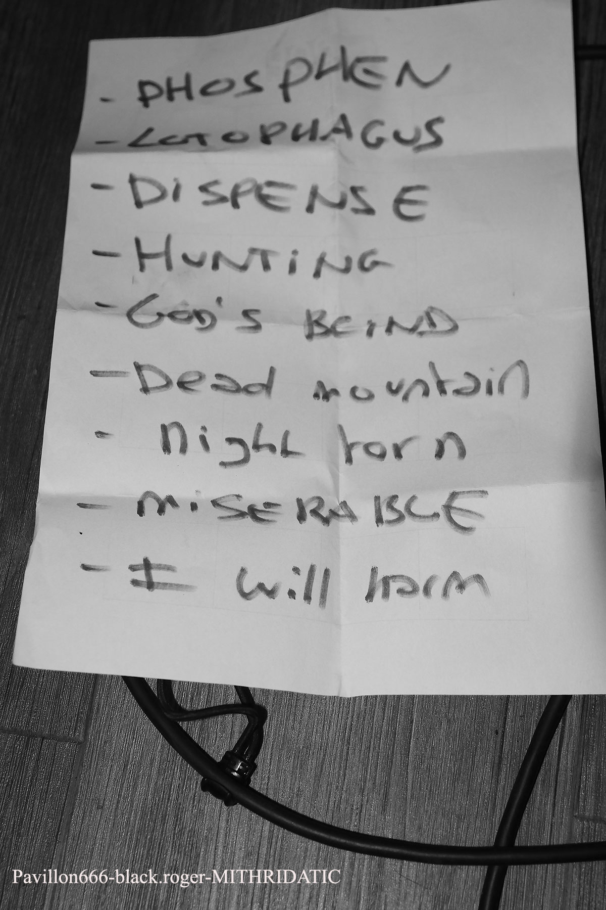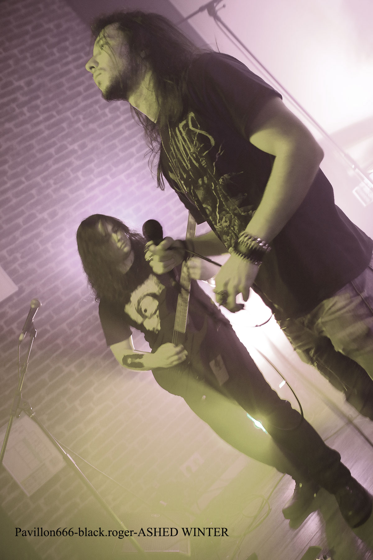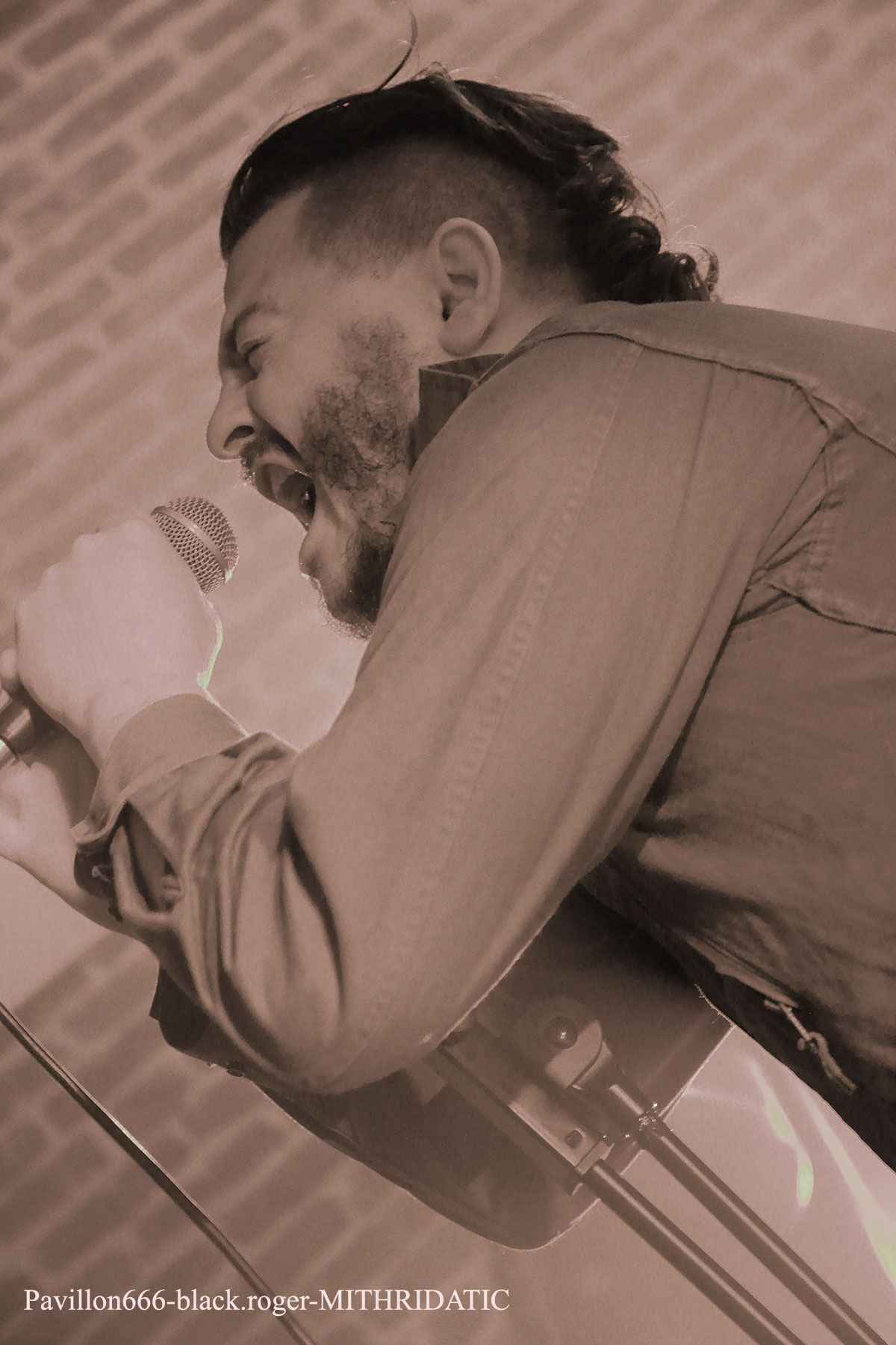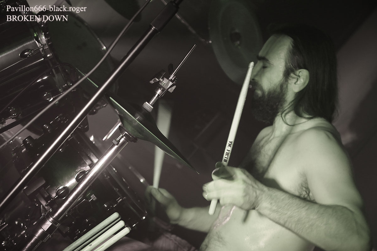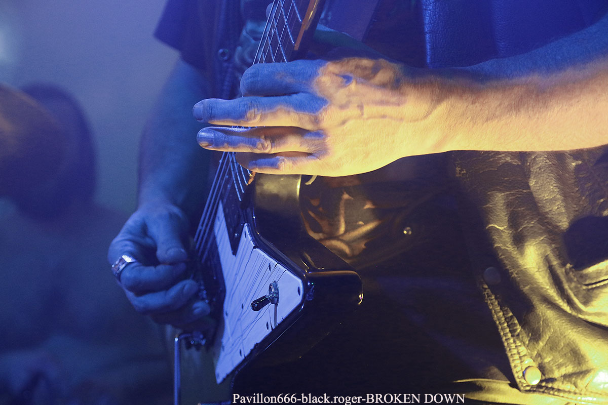Ce sont nos amis Stéphanois de BROKEN DOWN qui ouvrent en fin d’après-midi devant un public acquit à leur cause. Au menu du death old-school influencé par Bolt Thrower, Morbid Angel, Entomber, Obituary etc…Le groupe nous offre une prestation de metal-de-la-mort-qui-tue pur jus, peut-être classique, mais toujours aussi efficace. Les musiciens se font plaisir et nous aussi par, la même occasion. Voix caverneuse à souhait, miaulement de la guitare même en dérapage death-reggae, basse turbo, claviers pour l’ambiance et batterie plombée, tout y est sur des compositions bien à eux. Merci les gars vous revenez quand vous voulez. Mais où ? Sur les planches d’ici ou d’ailleurs, vous assurez grave ! Bien souvent ce genre de petit festival nous fait découvrir de jeunes groupes en devenir. C’est le cas ce soir lors de ce Metal Fest Winter Blast avec ASHED WINTER de Roanne qui a joué afin de compléter l’affiche initiale au pied levé. Quatre jeunes musiciens sur scène (le bassiste étant absent) pour du thrash-death de bonne facture ma foi. Derrière le micro nous retrouvons deux chanteurs/guitaristes se relayant pour des compositions intéressantes, Lana (honneur au filles) à la guitare rythmique et un batteur qui maltraite ses fûts de belle manière. Alors fatalement nous avons apprécié, groupe en devenir comme dit précédemment, oui pourquoi pas ! Nous restons dans le thrash-death, mais cette fois-ci avec une brutalité inouïe en live, où nous avons un frontman à forte personnalité, au look incroyable et qui en fait des tonnes sur scène. SHARKED n’est pas venu ce soir à la Tour-En-Jarez pour nous susurrer de douces mélopées dans le creux de l’oreille propices à l’endormissement. Non, ici le réveil est brutal, la voix arrache et interpelle, le guitariste scalpel nous découpe ce qu’il nous reste de neurones, le bassiste propulse un mur du son, sans oublier des claviers, des samples dirigés par ArtRose (honneur aux filles encore) et pour enfoncer le clou, voici un batteur mitrailleuse qui donne envie de tout casser dans la salle. Quelle claque mes amis, c’est presque l’arrêt cardiaque à chaque titre. Mais nous sommes « maso » alors on aime ça que voulez-vous ! On vous revoit quand pour prendre à nouveau notre dose ? Set-list en photo. Pas le temps de se remettre de nos émotions que les jeunes loups Lyonnais de PRISMERIA grimpent sur scène afin de nous achever dans un déluge thrash/death au goût de « core ». Leur mélange est explosif car du côté des guitares ça ne rigole pas avec des soli bien placés et appréciés, d’ailleurs un morceau instrumental viendra, étayer tout cela. En moins de deux ans, à l’aide de prestations « coup de poings » et la sortie d’un premier EP intitulé « Lost Individual Thoughts » ces « gones » ont frappé fort dans la scène locale Et chaque prestation, comme celle de ce soir avec de nouveaux titres à la clé, vient confirmer tout le bien que l’on pense d’eux, c’est sans appel ! Nous continuons cette belle soirée avec les Stéphanois de MYTHARK qui nous proposent du black-metal. Mais classer ce groupe dans ce style ce serait trop réducteur, disons que nous naviguons ici sur les eaux troubles des légendes et mythes dans une veine plutôt extrême et symphonique où l’on retrouverait par exemple les démarches d’un Septicflesh, d’un Emperor et pourquoi pas celle des Autrichiens de Summoning. Les costumes sont sombres et cloutés en adéquation avec leur musique qu’ils semblent vivre avec passion. Leur prestation fut sombre également puissante, remarquée et remarquable. Un nouvel album sortira prochainement alors on croise les doigts. En attendant, ce soir cette entité sulfureuse a marqué les esprits. Afin de terminer en beauté ce « Winter Blast » il nous fallait devant et avec nous les Stéphanois que l’on ne présente plus j’ai nommé MITHRIDATIC. Un Mithridatic toutes griffes dehors avec ces griffes qui parcourent le cerveau de son géniteur « Guitou ». Et puis tout ne serait pas possible sans les riffs et soli empoisonnés d’Alex et de Romain, sans la basse monstrueuse de Remolow et enfin dans le tremblement de terre occasionné par le batteur Kevin paradis. Mithridatoc va encore une fois nous lacérer la matière grise à l’aide d’envois presque suffocants où se mêlent black, death et sludge. Pour un résultat bien boueux comme les marécages du bayou de Louisiane et décapant comme du bourbon frelaté de contrebande, où l’on vomit sa bile (sic). Guitou et sa bande nous offrirons ce soir le partage des boissons houblonnées et le partage d’une prestation hors-norme qui déchainera le public sur des déferlements physiques incontrôlés. Bref, c’était Mithridatic et vous savez quoi ? Eh bien c’était énorme (qui a dit comme d’habitude ?). Set-list en photo. Voici venu maintenant le temps des remerciements qui se fera en deux parties, les plus et les moins de ce fest. -les plus : une organisation au top, merci Bloody noise, des timings respectés, des groupes qui ont assuré et se sont entraidés, un accueil des plus sympathiques et un buffet garni, des petits stands sympas. -les moins : eh bien pas de moins tout était bien, on reviendra c’est sûr ! |