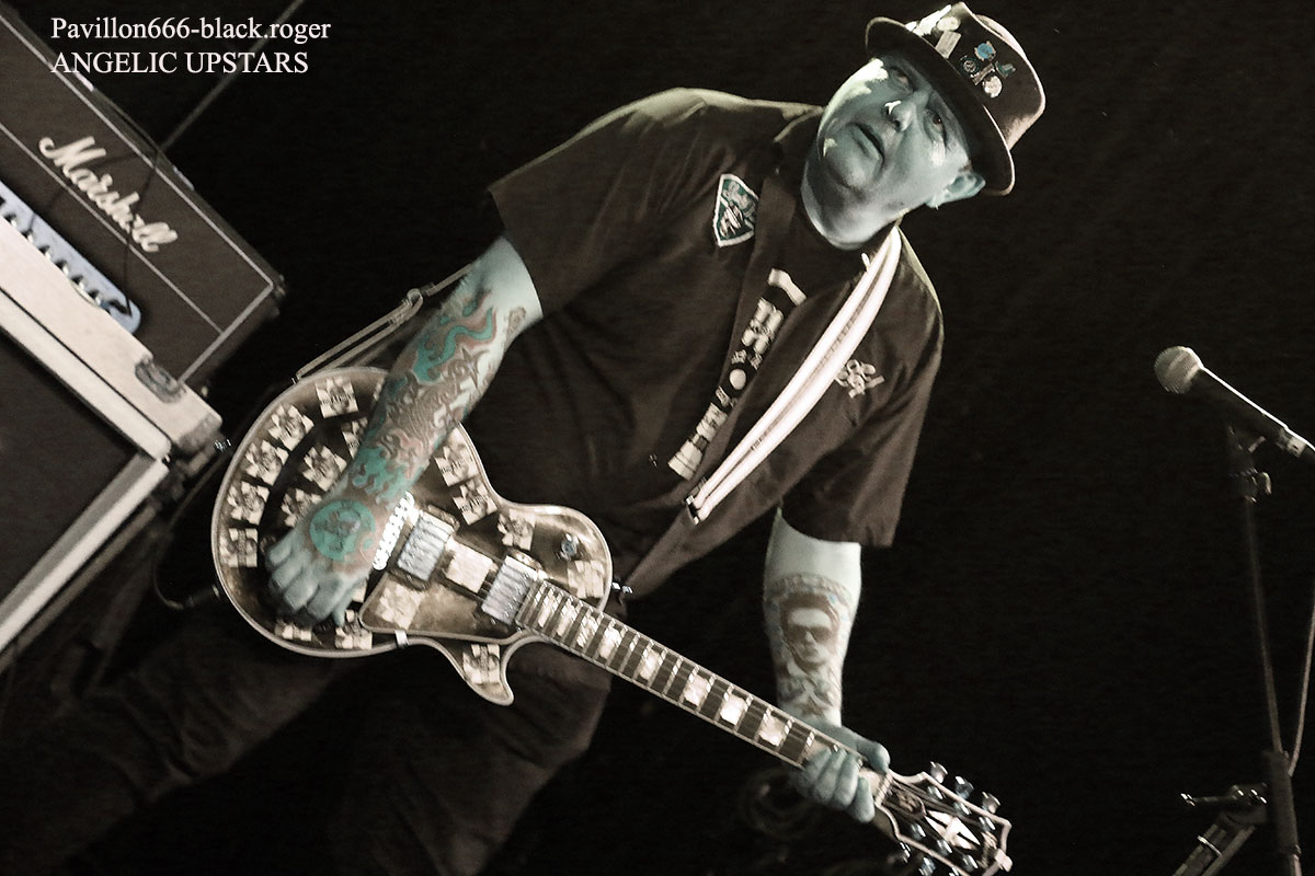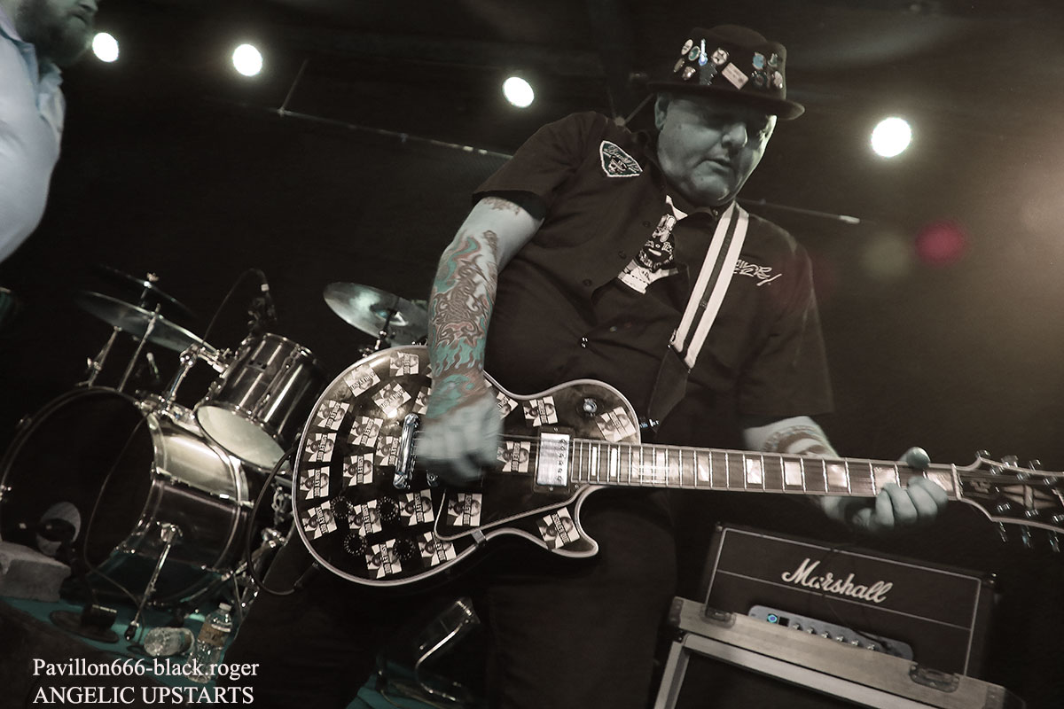 Avec leur devise « allez tous vous faire enculer », le trio de St-Etienne SHOOT THE DOGS nous balance du lourd, du saignant, du décapant, keupons de tous poils accrochez-vous à la scène pour déguster. Mais déguster quoi en fait ? Eh bien du bon street punk qui fait mal (ou du bien, c’est selon), avec des titres extraits de leurs deux albums (LP) « join us » et « we are à gang », et nouveaux titres… Ces vieux renards du rock qui égratigne connaissent la musique en ayant déjà opéré dans d’autres formations du cru comme les Dickheads, les Plastic Guns, les Perfect Cousins, et les Hunchbacks, donc c’est de la « bonne ». Alors de « we are not dead » à « so what », en passant par « join us », gang bang », « junkie » ou encore « bad love », nous avons bien apprécié et même plus ces keupons (et la keupone en duo sur scène), sur des chants de haine, d’amour de rébellion et plus si affinités. Bien sûr les gars vous revenez quand vous voulez nous donner une bonne « quecla dans la chetron ». Set-list en photo. Et puis, et puis, ceux de South Shields, ville du nord-est de l’Angleterre appelés ANGELIC UPSTARTS montent sur la scène du Warmaudio pour un set d’anthologie. Formé en 1977 ce groupe punk emmené par le fondateur Mensi (Thomas Mensforth) va nous donner une bonne leçon de punk rock engagé et enragé. Mais cela ne nous empêchera pas tout au long de la prestation d’apprécier l’humour « so british » du chanteur/frontman, ambiance ! Ambiance qui se voudra chaude et animée, voire houblonnée dès les premiers « brûlots » lancés par une formation en forme (sic). Nous aurons droit, malgré le temps qui passe à une plongée en apnée dans les compositions de ces admirateurs de The Clash au départ de leur aventure, il y a plus de 40 ans, aargh ! Nous pouvons dire que ce groupe pionnier de la « oï » qui depuis son premier 45 tours auto-produit a enregistré pas moins de 14 albums et tourné jusqu’à plus soif un peu partout ne lâche rien. Ce soir le public qui s’éclate devant la scène dans un pogo mouvementé (mais où est passée ma godasse), s’abreuve de paroles décapantes mais pas que, et qui s’abreuve aussi de mousse vous m’avez compris (en fin de set la scène et la fosse seront bien humides…). Normal nous sommes dans un concert de punk avec de « petits agités » comme diraient les Bérus. Il est 23 heures en fait lorsque tout s’arrête, mais nous n’allons pas laisser le quatuor s’en aller comme ça, alors nous les rappelons pour un rappel (sic), et deux titres vont terminer la fête dont le fameux et fédérateur « if the kids are united » de SHAM 69. Excellent moment passé ce mardi soir dans la fournaise du Warmaudio toujours aussi accueillant. Merci aux organisateurs, aux groupes et au public qui a rempli et animé la salle de Décines |
