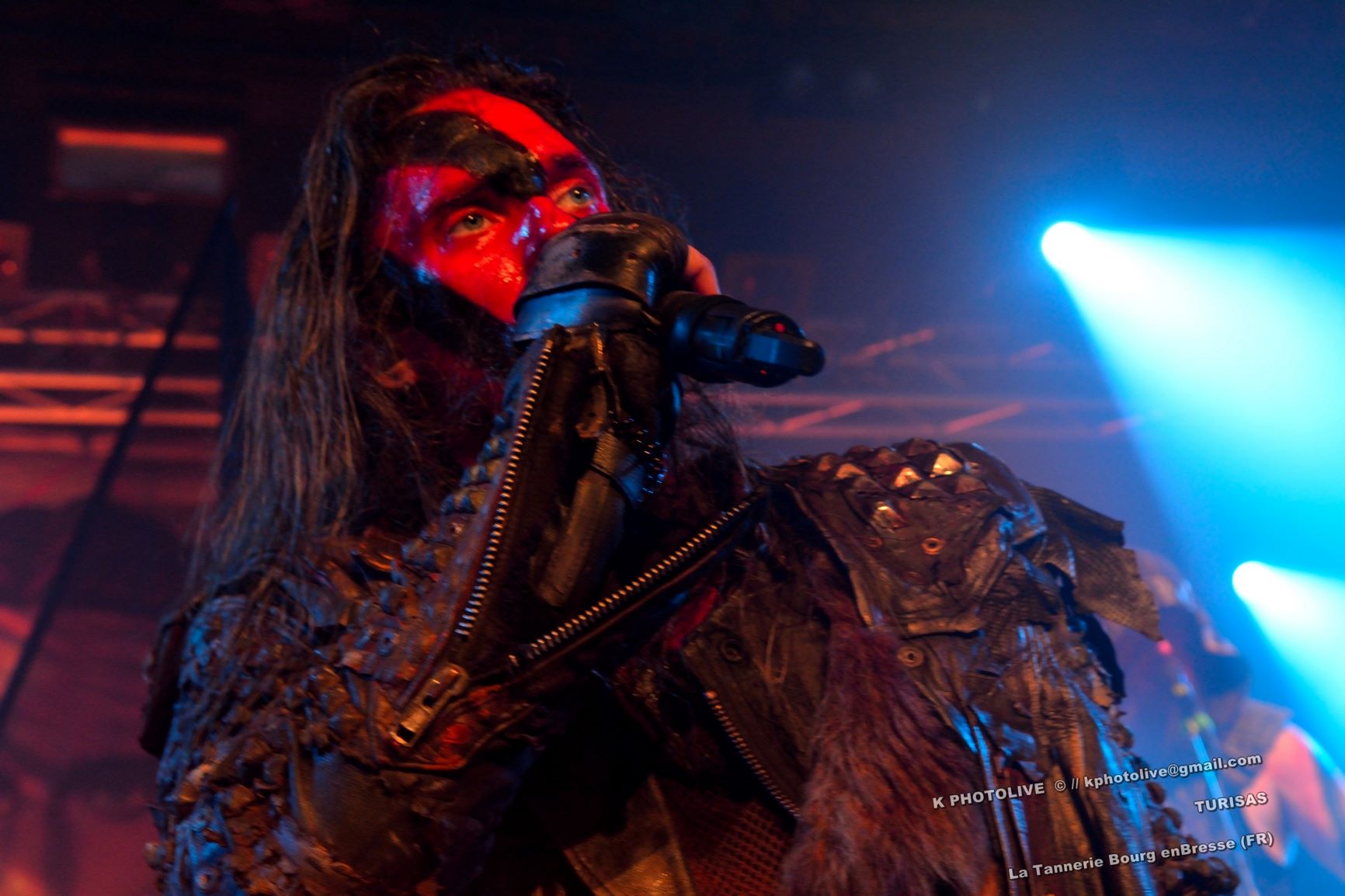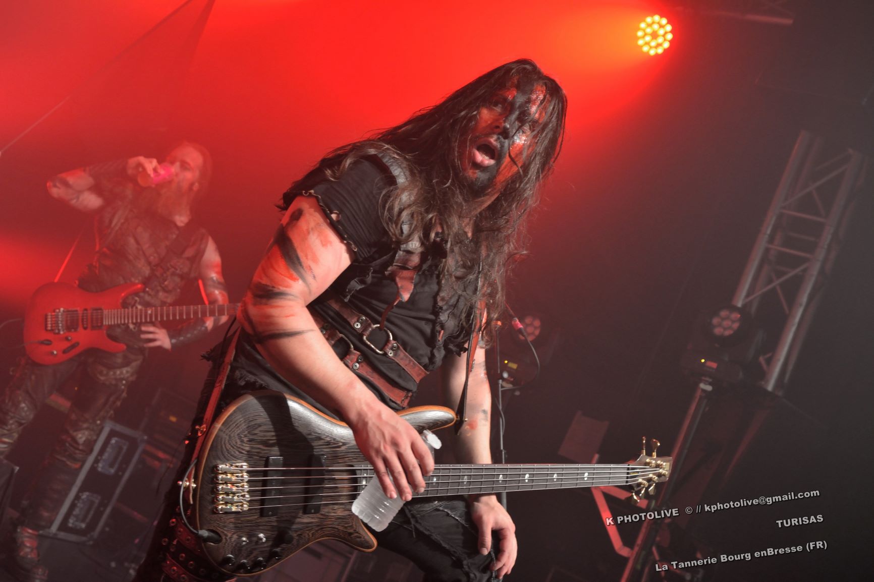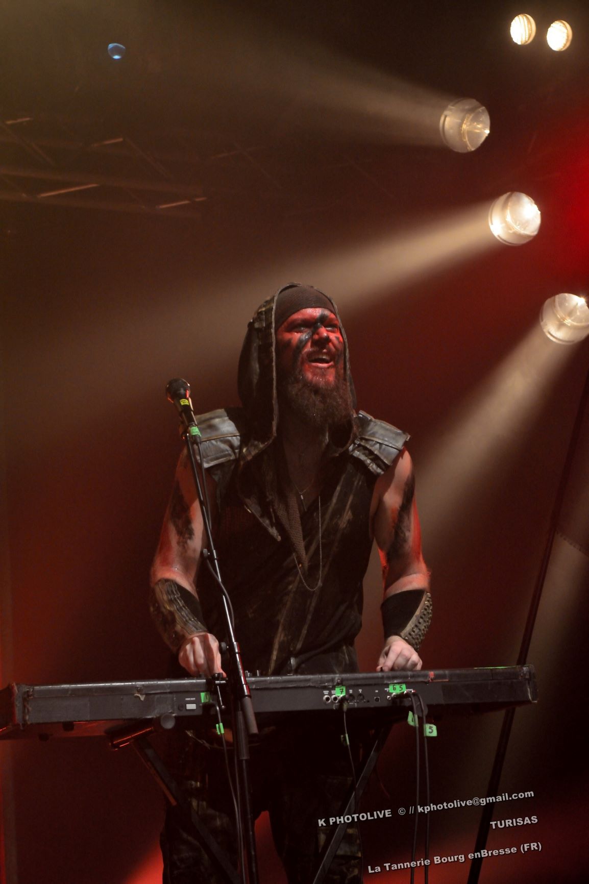 Peu avant 19 heures, TURISAS, la formation finlandaise de « viking metal » succède sur scène, dans un tout autre décor, aux Norvégiens. Sous la houlette de Mathias Nygärd, le chanteur, le groupe a vu le jour en 1997 et a vu défiler depuis cette date plusieurs line-up.