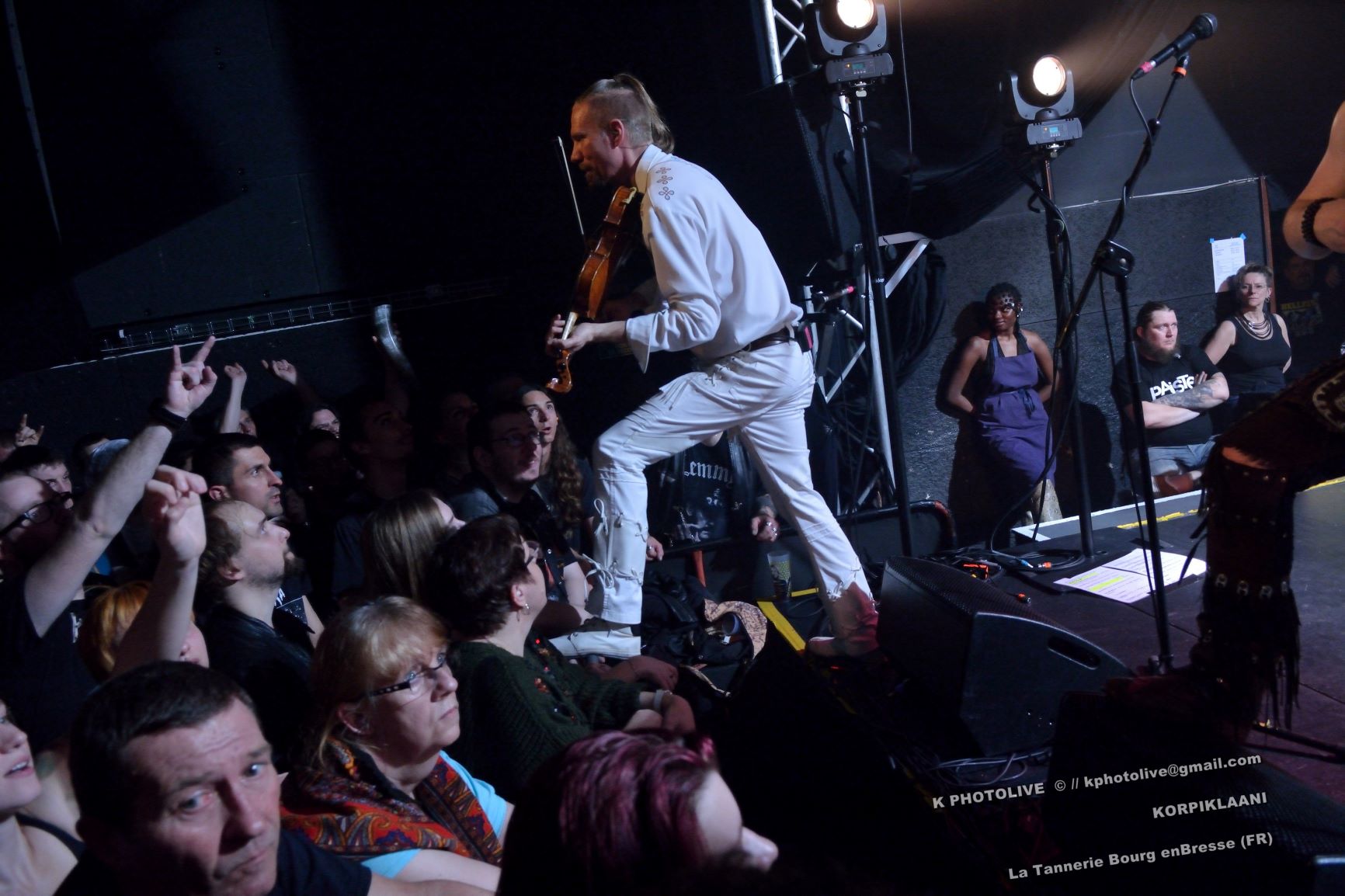 A peine les premières notes se font-elles entendre que déjà la fosse s'enflamme, pour quelques minutes , car bien vite le groupe semble chercher son rythme, l'ensemble donne l'impression de manquer de souffle, un peu « mou », un rien répétitif. Mais rapidement, et c'est heureux, KORPIKLAANI peut-être gagné par la fatigue liée à la longue tournée, se ressaisit, et la salle de même . En effet, la seconde partie de leur set est, selon de nombreux spectateurs entendus ou interrogés, nettement plus énergique que la première, la dynamique est rétablie. Les fans du genre se manifestent activement jusqu'aux derniers rangs de la grande salle. Petite pause, on quitte la scène pour quelques minutes, un rappel s'impose, ovation du public...Tout est bien qui finit bien, tout le monde semble heureux.