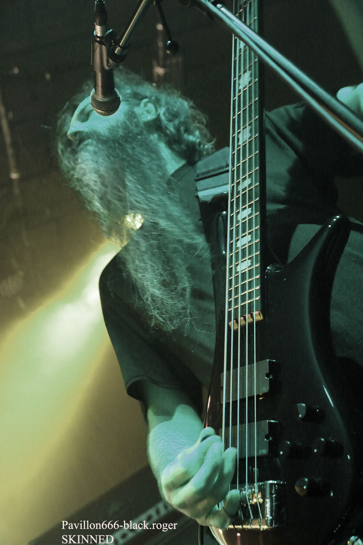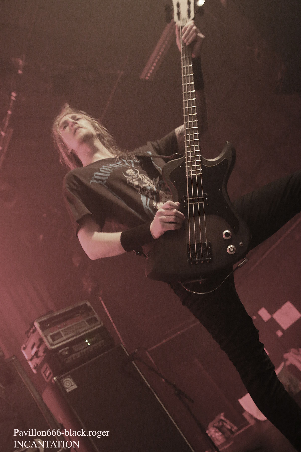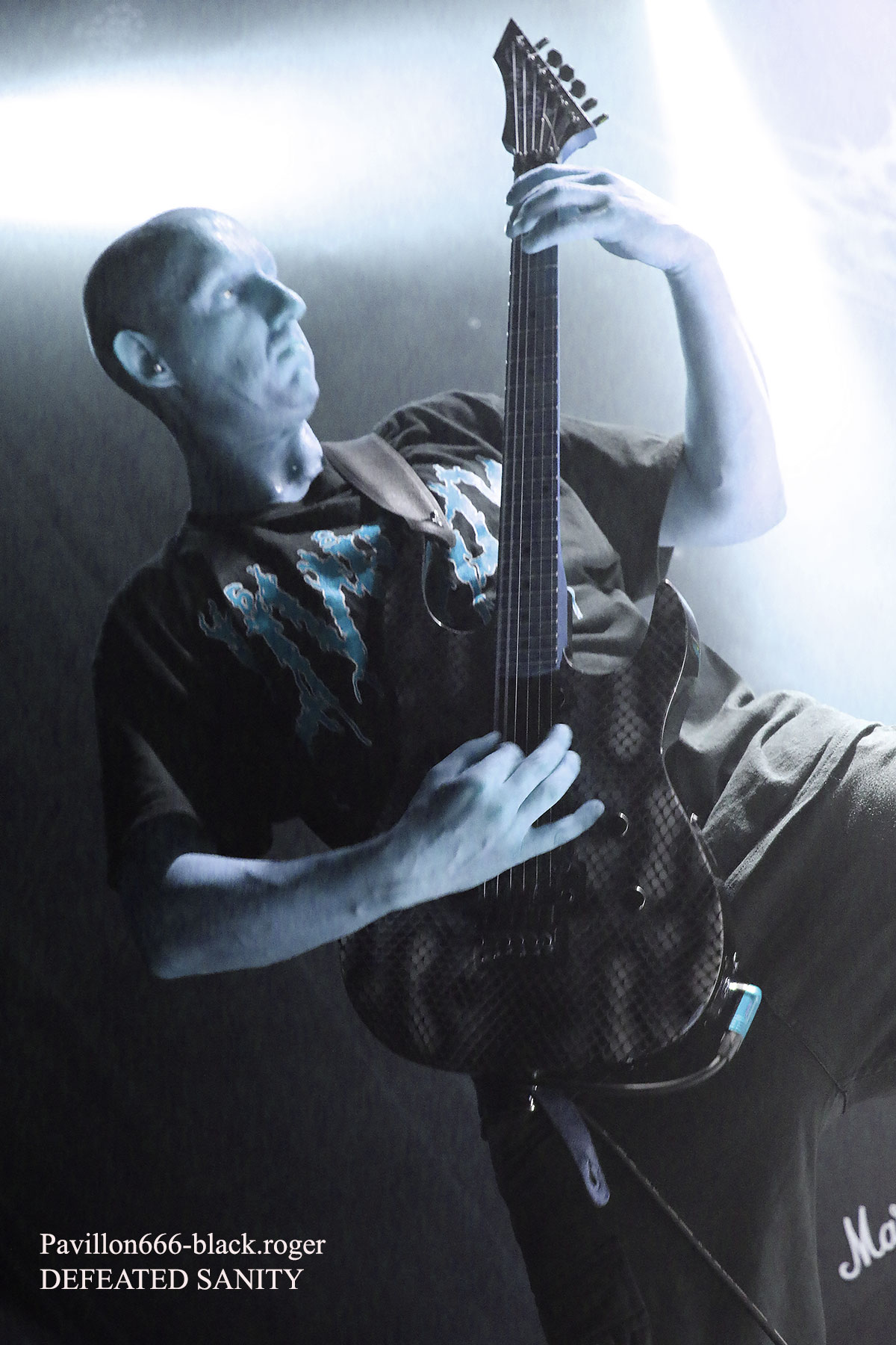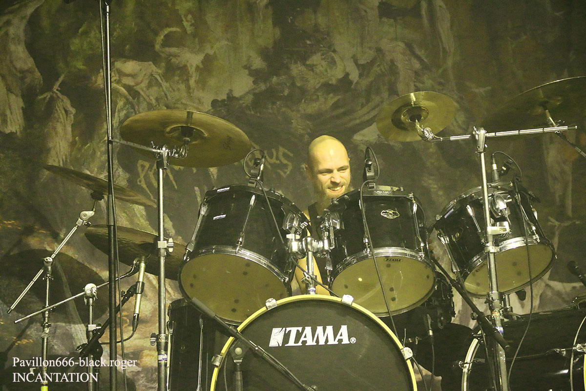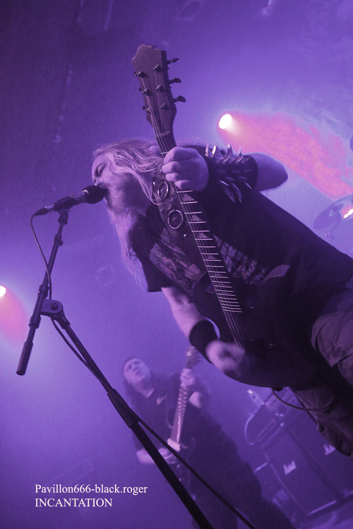 Comme nous sommes donc dans un registre old-school, c’est naturellement ceux du Colorado SKINNED formés en 1995 qui ouvrent les débats ce soir dès 19 heures trente devant un public encore un peu clairsemé. Ceux de Fort Collins profitent de cette tournée pour nous présenter leur récent album de 2018 intitulé « shadow syndicate », 6ème album au compteur pour ces « ricains » officiant dans un brutal death sans concession, brutal de chez brutal. D’ailleurs d’entrée de jeu c’est le batteur qui se fait remarquer par sa vélocité et son savoir-faire. Ce soir ils ne sont que trois sur scène et autour de la batterie, on retrouve un chanteur/guitariste aux « growls » pas spécialement étudiés pour le style, les riffs étant bien souvent classiques pour du death comme la basse d’ailleurs. Pas trop d’originalité même si des essais de déviances black-metal se font jour au détour de quelques compositions. Bref, trente petites minutes pour du death aux penchants gore, mais sans plus. Set-list en photo. Question maintenant, est-ce que nos cousins Germains de Berlin, DEFEATEDV SANITY vont enfin faire démarrer la soirée ? Oui et non en fait car ces « anciens » du death metal (formés en 1994) essaient d’introduire un peu de prog dans leur déferlement de violence, mais sans vraiment arriver à nous faire entrer dans leur jeu. Et pourtant, le frontman nous envoie ses « growls » à la figure de bonne façon sur une chorégraphie mouvementée. Côté guitare on rivalise de technicité et du côté rythmique ça ne rigole pas avec une excellente entente basse / batterie. Mais la mayonnaise n’arrive pas vraiment à prendre ce soir, à qui la faute, nul ne le sait vraiment. A revoir donc afin de se faire vraiment une idée sur ce groupe qui a pourtant défrayé la chronique auparavant. Set-list en photo. Il faudra donc attendre la venue sur les planches d’INCANTATION qui va mettre tout le monde d’accord et provoquer un semblant de remue-ménage devant la scène, ouf ! Ces musiciens originaires du New-Jersey semblent en forme malgré le temps qui passe. Et après l’intro mortuaire à souhait ils vont envoyer la sauce putride dans un CCO qui enfin semble apprécier le death/black de ces vétérans légendaires américains. Ce sont carrément des pionniers de ce genre de metal extrême lourd de chez lourd et malsain surtout au niveau des tricotages vicieux du lead guitariste, remarquable ! Inutile de vous présenter ces maîtres du death ultime qui depuis trente ans déjà, et une dizaine d’enregistrement, nous martyrisent les tympans et nous écrasent les neurones à l’aide d’envois où leur style particulier est reconnaissable entre mille cela va de soi ! Incantation est donc « diaboliquement » votre et c’est toujours un plaisir non dissimulé de participer à l’une de leurs prestations. Prestation envoûtante ce soir donc qui nous emmène directement au royaume des morts à l’aide de compositions lourdes de conséquences et tout simplement imparables et variées. Au final, Incantation nous a tout simplement « rassasié » de metal-de-la-mort-qui-tue comme je le dis souvent, incroyable ! Set-list : christening the afterbirth, shadows of the ancient empire, lus sepulcri, golgotha, profound loating, immortal cessation, forsaken mourning of angelic anguish, rites of the locust, carrion prophecy, dominant ethos, omens to the altar of onyx, impalement of divinity, ascend into eternal, rotting with your christ, the ibex moon, impeding diabolical conquest. Merci à Sounds Like Hell Productions pour ce Dimanche soir passé au CCO en compagnie de trois formations qui ont donné le meilleur d’eux-mêmes, c’était mortel tout simplement ! |
