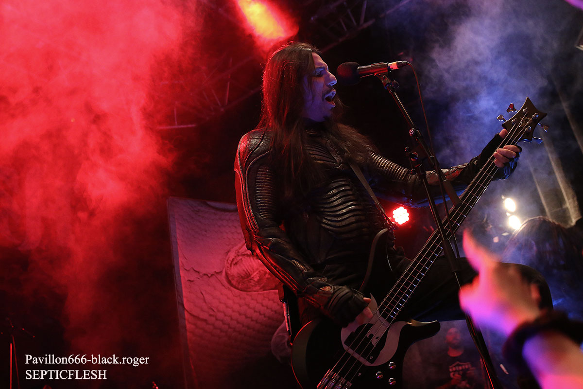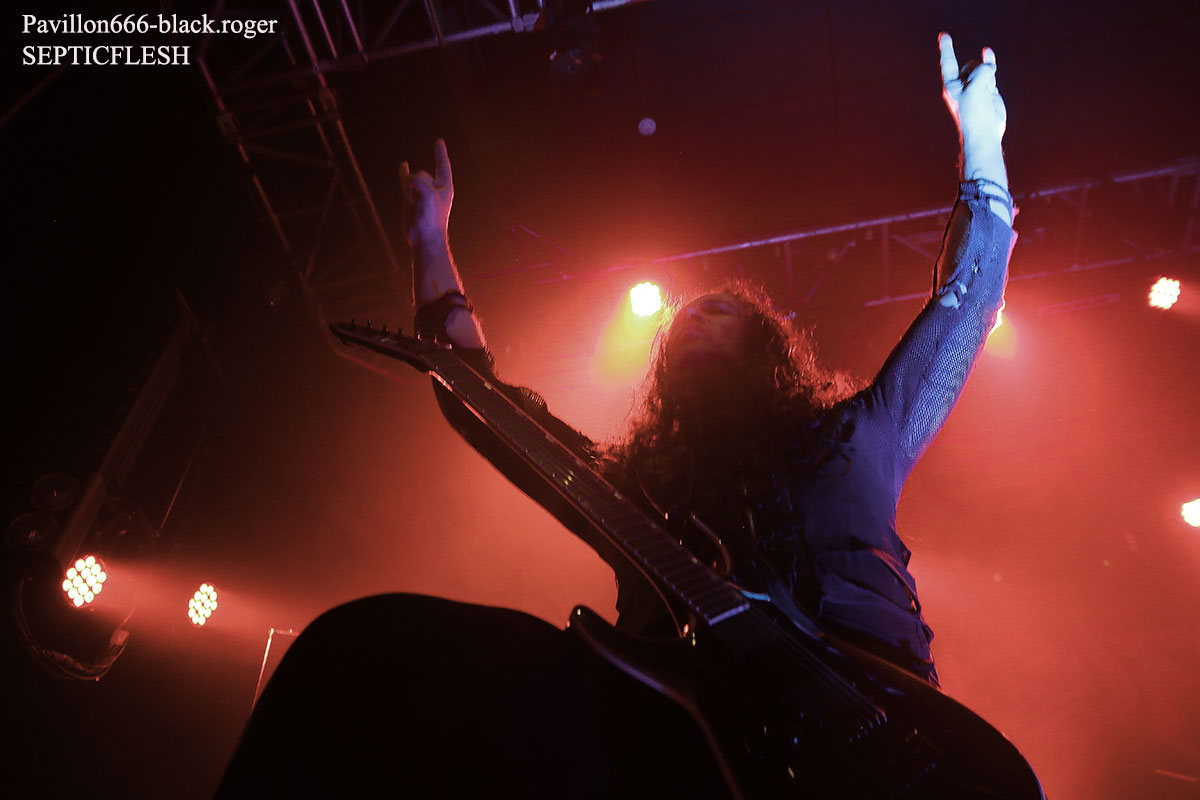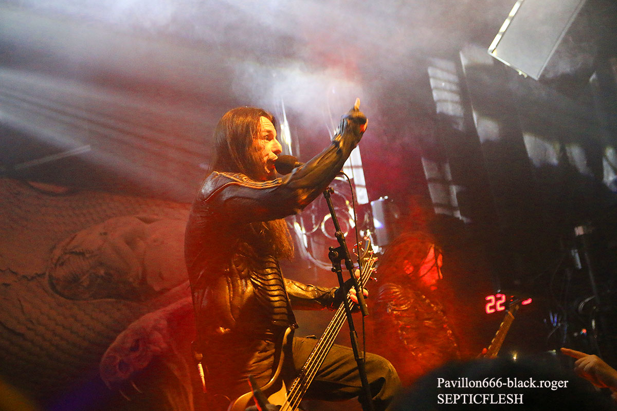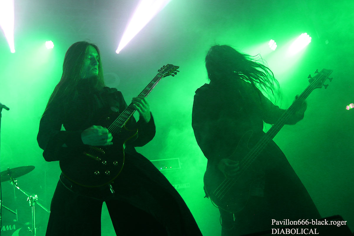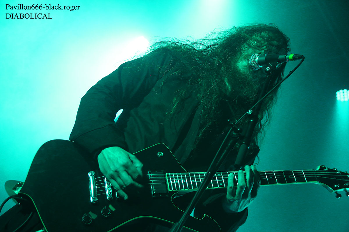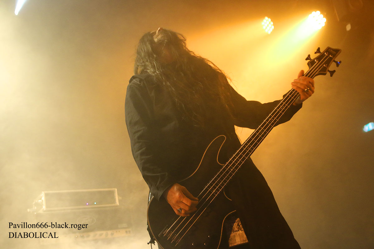 Il fallait être de bonne heure à l’entrée di Ninkasi kao pour ne pas rater la prestation de nos amis Helvètes XAON qui démarraient les hostilités sur scène dès 18heures 30. Cette tournée est en quelque sorte une aubaine pour ce groupe qui traverse encore une fois l’Europe et fait connaitre ainsi sa musique et ses « live » énergiques à un public qui ne les a pas encore découvert et c’est tant mieux ! En effet, Xaon avec sous son bras « the drift », album de 2017 et « solipsis » nouveauté 2019 (sortie prévue en Avril prochain) a de quoi s’éclater sur les planches à l’aide de compositions variées où se mêlent dark et death symphoniques, de la mélodie donc ponctuée de vocaux arrachés et criés se déclinant en parties plus claires pour mieux vous prendre à la gorge sans que vous vous en rendiez compte l’instant suivant. Et Xaon en profite pour faire passer en fond d’écran ses messages tels que l’angoisse et la mort messages qui rebondissent dans votre subconscient. Trente minutes de set pour eux ce soir à Lyon, mais le public semble avoir apprécier cette prestation courte certes, mais d’une rare intensité. C’est au tour maintenant des Suédois de DIABOLICAL de nous interpeller en arrivant devant-nous dans une ambiance sombre et « encapuchonnée ». Mais l’habit ne fait pas le moine et bien vite les capuches tombent et le black/death virulent et rapide reprend ses droits. Diabolical n’est pas un nouveau venu dans la scène extrême (formation en 1996) mais il n’avait pas beaucoup fait parler de lui depuis tout ce temps malgré 5 albums et un EP, dont le dernier de 2019 « eclipse » qu’il va devoir défendre sur scène ce soir à Lyon. Diabolical sait manier à merveille son death brutal avec des déviances black et occultes en donnant à l’ensemble un côté symphonique malsain. Les titres accrochent bien dans l’ensemble mais le climat instauré finit dans certaines répétitions ce qui est dommage. En live leurs compositions ne prennent pas plus d’importance que sur CD et au final il faudrait peut-être mieux se contenter de l’écoute, le rendu sur scène n’étant pas des plus concluants, mais bon le public de ce soir les accueillent avec plaisir et c’est tant mieux pour eux. La tension va soudain monter d’un cran avec la venue là tout de suite devant nous des Brésiliens de KRISIUN que l’on ne présente plus. Un Krisiun que j’ai apprécié maintes et maintes fois en live, mais qui ce soir va littéralement me donner une bonne claque, pourquoi, nul ne le sait, choix de la set-list, son au top niveau, lights incroyables, tout ça, tout ça ! Ceux de Porto Alegre sont donc toujours en pleine possession de leurs moyens malgré 30 années de bons et loyaux services dans le death-metal dit brutal. Brutalité donc même après une douzaine d’enregistrements dont le dernier en date « scourge of the enthroned » qui a mis toute la critique d’accord encore une fois. Mais comme dirai les mauvaises langues, Krisiun c’est toujours la même chose, on vous brutalise les neurones à grands coups de blasts, on vous colle contre les murs avec des riffs de tueurs, etc., etc… Et pourtant ce trio réussit à chaque fois, à l’aide d’une technique éprouvée, à redoubler de vitesse d’exécution en y introduisant un peu de nouveautés meurtrières par ci, par là. Et le résultat est là, Krisiun met la concurrence au tapis et nous détruit encore une fois la matière grise, mais avec doigté SVP et arrive à nous faire avaler sa reprise musclée du fameux titre de Lemmy « Ace of spades. Ces soir nous avons donc dégusté dans tous les sens du terme, aargh ! Vive l’agitation dans la fosse et les shampoings aux boissons houblonnées ! Set-list : ravager, combustion inferno, blood of lions, scourge of the enthroned, hunter of souls, ace of spades (Motörhead), bloodcraft. Trente années d’existence aussi pour les Grecs de SEPTICFLESH qui ont navigué sans relâche sur les eaux troubles du death, du black, du dark et même de l’électro le tout à la sauce symphonique en innovant au gré des albums dans une continuité passionnée en filigrane. Ces démons grecs de la musique extrême vont recevoir ce soir un accueil incroyablement mouvementé de la part d’un public acquit à leur cause, certains les suivant depuis leurs débuts. C’est normal me direz-vous car cette entité grecque inspirée a su tout au long de sa carrière innover sans jamais sacrifier au modes musicales éphémères en nous offrant son metal extrême créatif et remarquable passant d’une certaine brutalité death aux méandres d’un dark empreint de dérives légendaires Helléniques à l’aide d’un son reconnaissable entre mille, ah la « patte » grecque ! Ces Athéniens n’ont donc plus rien à prouver après une carrière et une discographie longues comme le bras, se surpassant à chaque fois encore et encore, mais jusqu’où vont-ils donc aller ? En tous cas ce soir en s’adressant au public à l’aide de ses classiques paroles « are you ready my friends » Septicflesh a tout donné à une assistance motivée et passionnée par leur musique, un coup de cœur assurément ! Set-list : portait of a headless man, pyramid god, martyr, prototype, energy of truth, communion, the vampire from nazareth, lovecraft’s death, prometheus, persepolis, anubis, dark art. Merci à Access-Live, au Ninkasi de Lyon pour cette soirée hors du temps et de l’espace, magique tout simplement ! |