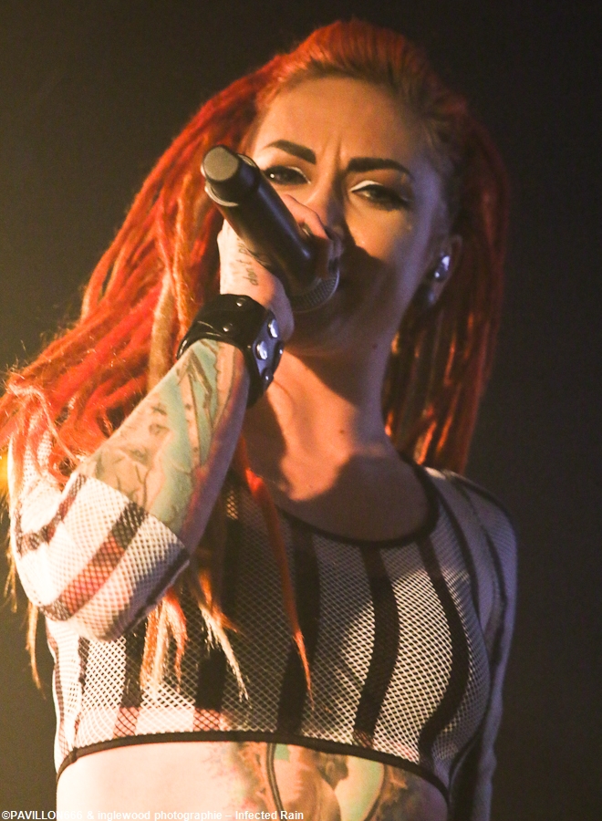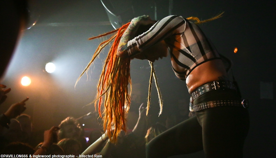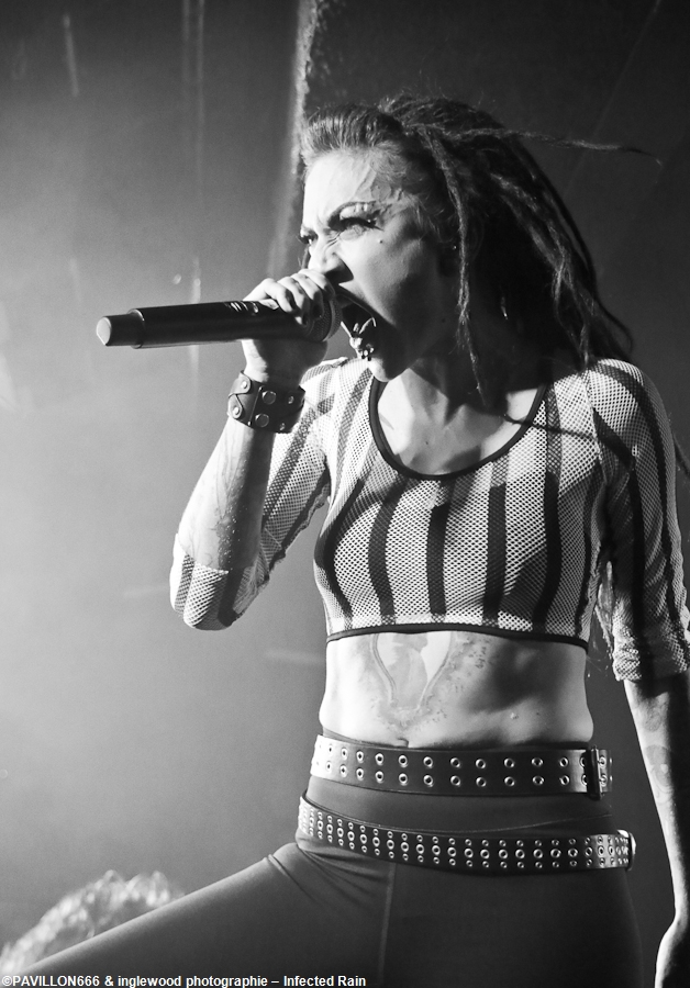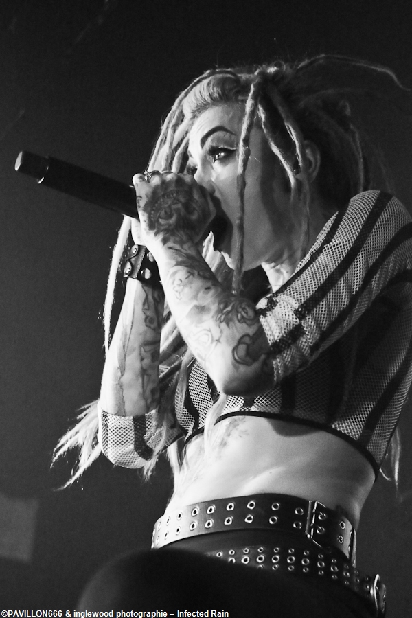 Sur le papier, belle affiche avec quatre groupes (pour 22€, ça va !), Infected Rain, Dust In Mind, Klogr et Moebius. Arrivé en retard et assoiffé, je n’ai pas trop profité du concert de « Moebius », les deux titres entendus m’ont semblé bien agressifs et plutôt techniques avec quelques passages polyrythmiques intéressants. Deuxième groupe Italien de la soirée, « Klogr », entre rapidement en scène. Efficace, percutant et relativement entrainant, le set m’a bien plu. Evoluant dans un registre rock/ metal alternatif, le quatuor est visiblement super à l’aise sur scène et à bien fait le taff. A noter quand même, j’y reviendrai plus tard, que le son était ignoble et que je n’ai peut-être pas saisi toutes les subtilités. Le chanteur semble très engagé (les multiples logos Sea Shepherd en témoignent) sur les questions environnementales. Un set efficace joué devant une audience assez faible mais plutôt conquise. Véritable découverte de la soirée, les Français de « Dust in Mind » prennent possession de la place ! OK, je suis peut-être impardonnable, mais je ne connaissais pas ces jeunes gens, si c’est aussi votre cas, je vous conseille vivement de coller une oreille à leur dernier disque : « From Ashes to Flames ». Quelle créativité, le groupe oscille entre metal indus bien lourd, riffs en béton armé et voix tanto hargneuses, tanto enchanteresses. Car, oui, ce qui fait de « Dust in Mind » une véritable petite pépite, c’est le duo que forment Damien et Jennifer. Lui, guitare en main me fait penser à Robb Flynn du fait de son attitude et son chant, elle, très jolie et charmeuse assure le côté mélodique et donne une touche bougrement attrayante aux compos hypers catchy. Les autres ne sont pas en reste, les placements sur cette petite scène ne sont pas faciles, mais le groupe a su s’en débrouiller avec maestria. Excellente surprise, j’espère vous revoir rapidement et dans de meilleures conditions. L’avantage de ces salles (boîte de nuit, club…) c’est la proximité. En effet le public est en communion avec le groupe, on s’échange notre sueur (quelle chaleur dans ce gourbi), on crie ensemble, on se fait des checks… ça, c’est cool. En revanche, on oublie le son, les lumières, la hauteur de plafond et les jeux de scènes sophistiqués. Et bien, malgré ça, « Infected Rain » a vraiment tout cassé avec un set puissant, maitrisé et digne de grosses formations internationales. Un petit mot sur Lena, la chanteuse, véritable avion de chasse qui est, certes, extrêmement charmante mais pas seulement. Ce serait injuste de la limiter à un physique car sa voix est sa première et plus grande qualité, elle sait se faire hyper agressive en restant distincte ou bien douce et mélodieuse. Son attitude est superbe, Lena est très à l’aise et donne l’impression de prendre beaucoup de plaisir. A ne pas en douter, c’est elle l’argument majeur de l’image d’« Infected Rain », elle a d’ailleurs passé un long moment en séance de dédicaces dès sa sortie de scène et fait des 10e de selfies avec ses fans. Un set de presque une heure trente sans faiblesse joué par un groupe qui tourne depuis longtemps. Tout est bien en place, les musiciens savent se trouver et déroulent leurs morceaux néo-metal à la perfection. Un vrai bon concert sans faute. Mon seul regret va être au niveau des conditions de lumières, notamment pour faire de belles photos (quel dommage quand on a une fille aussi magnifique que Lena) et de son qui n’était pas au niveau d’un concert metal. Je tiens tout de même à saluer l’orga de Garmonbozia et A Jeter Prom car finalement réussir à proposer cette énorme affiche pour 22€, et bien c’est quand même de la balle. Pour des raisons de confidentialité YouTube a besoin de votre autorisation pour charger. Pour plus de détails, veuillez consulter nos Politique de confidentialité. |
