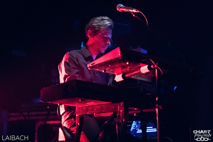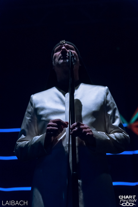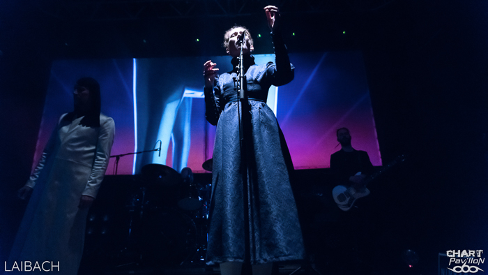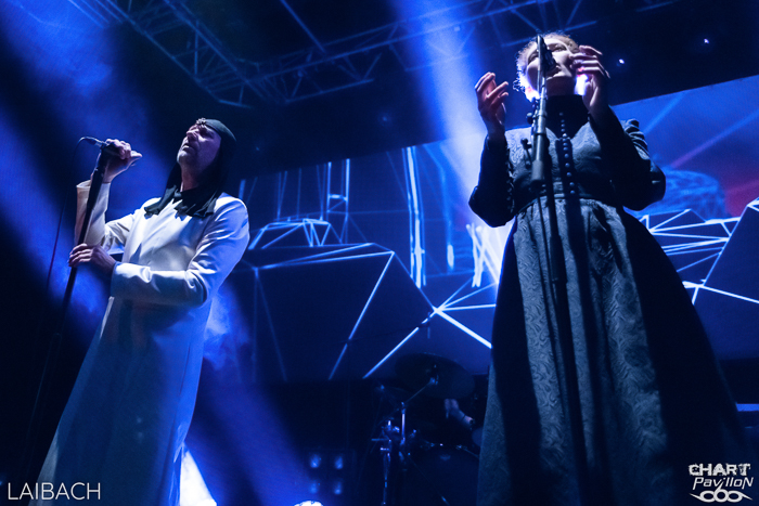LAIBACH est actuellement en tournée promotionnelle pour son nouvel album « The Sound Of Music » sorti en 2018. Il s'agit en fait d'un album reprenant la bande originale du film « La Mélodie du Bonheur » sorti en 1965 et réalisé par Robert WISE. Cette même bande originale a été composée par Richard RODGERS pour la musique et Oscar HAMMERSTEIN pour les paroles. LAIBACH n'en est pas à son premier coup d'essai en termes de reprises mais on ne s'attendait pas forcément à un choix de la sorte. Il y a en effet un fossé entre l'indus et la comédie musicale mais comme les artistes peuvent tout se permettre, pour le meilleur et pour le pire. Cette idée est loin d'être saugrenue. Le résultat est en tout aussi intéressant sur album qu'en concert. Le groupe décompose son set en deux parties et la première partie est donc entièrement consacrée à « The Sound Of Music ». On y ajoute avec cependant « Maria/Korea » et la reprise du traditionnel « Airang » avant un intermède d'un quart d'heure. Le tout est accompagné comme d'habitude par un support vidéo pour le moins travaillé qui vient plonger le spectateur dans une œuvre englobante et hypnotisante. L'ambiance change radicalement sur la seconde partie du set. Si la première partie était un peu plus légère, la seconde est consacrée aux morceaux de LAIBACH. Le groupe revisite quelques uns de ses titres tels que « Mi Kujemo Bodocnost », « Smrt Za smrt », « Nova Akropola », « Vier Personen », « Krvava Gruda – Plodna Zemlja » et « Ti, Ki Izzivas ». L'interprétation scénique est clairement envoûtante malgré l'atmosphère très sombre de ces morceaux. On se laisse très vite emporter par cette musique industriel qui parfois prend une tournure quasi expérimentale. Le groupe revient enfin pour un rappel de quatre titres avec sa célèbre reprise de « Sympathy For The Devil » des ROLLING STONES, « Francia », « The Coming Race », la bande originale du film « Iron Sky 2 » sorti en 2019 et enfin « Surfing Through The Galaxy ». LAIBACH nous a donné un show assez rare. La vidéo vient renforcer la musique d'une manière assez intense, ce qui n'enlève rien au charisme des musiciens. Un groupe à voir sur scène bien entendu. |