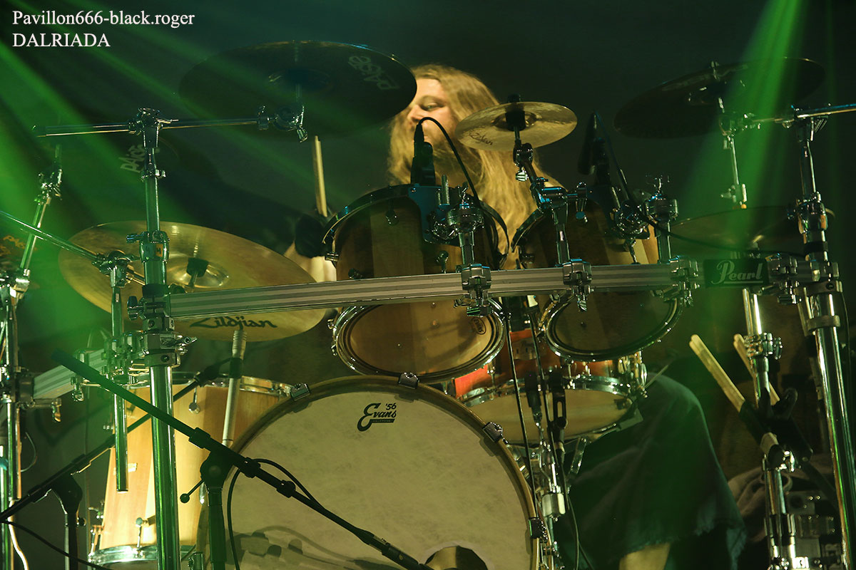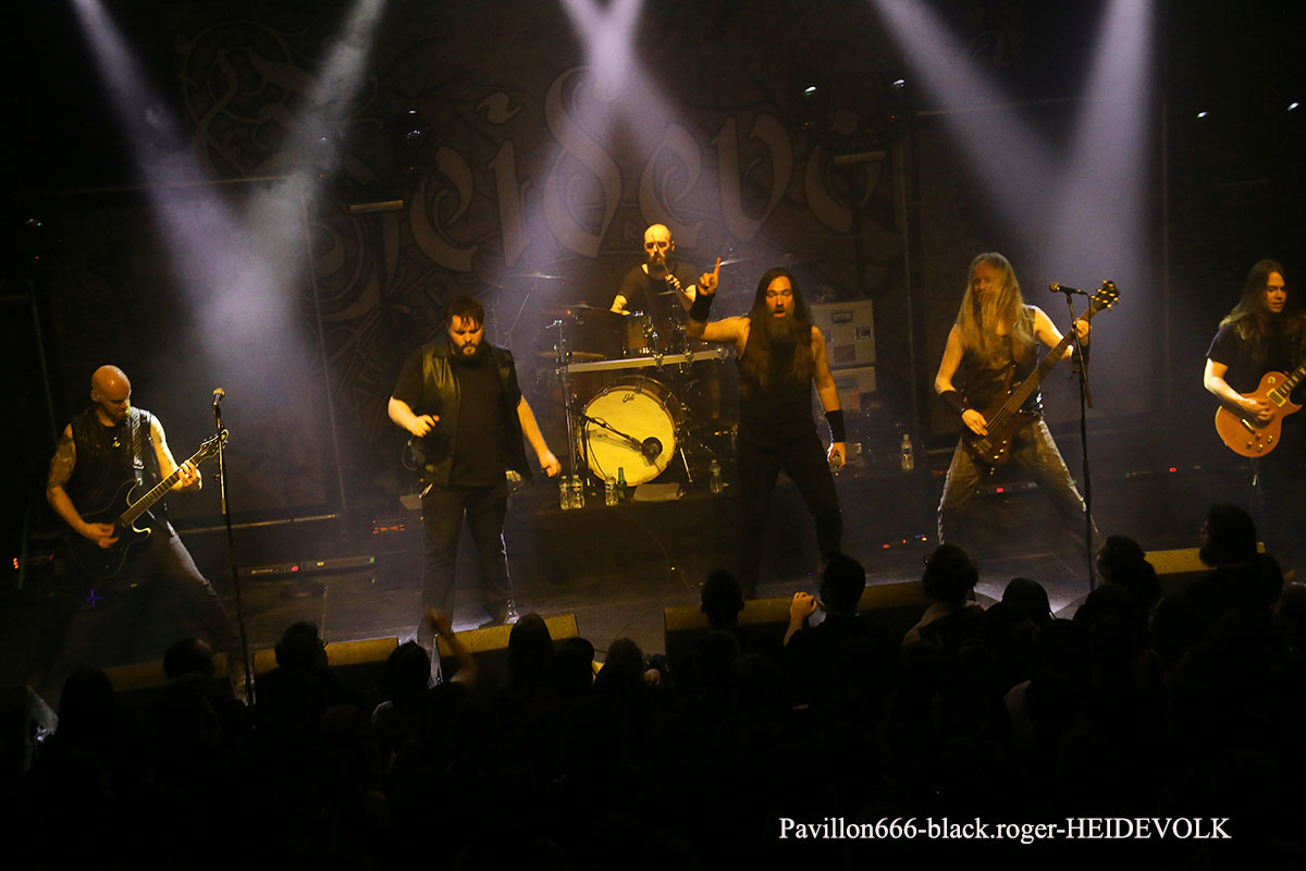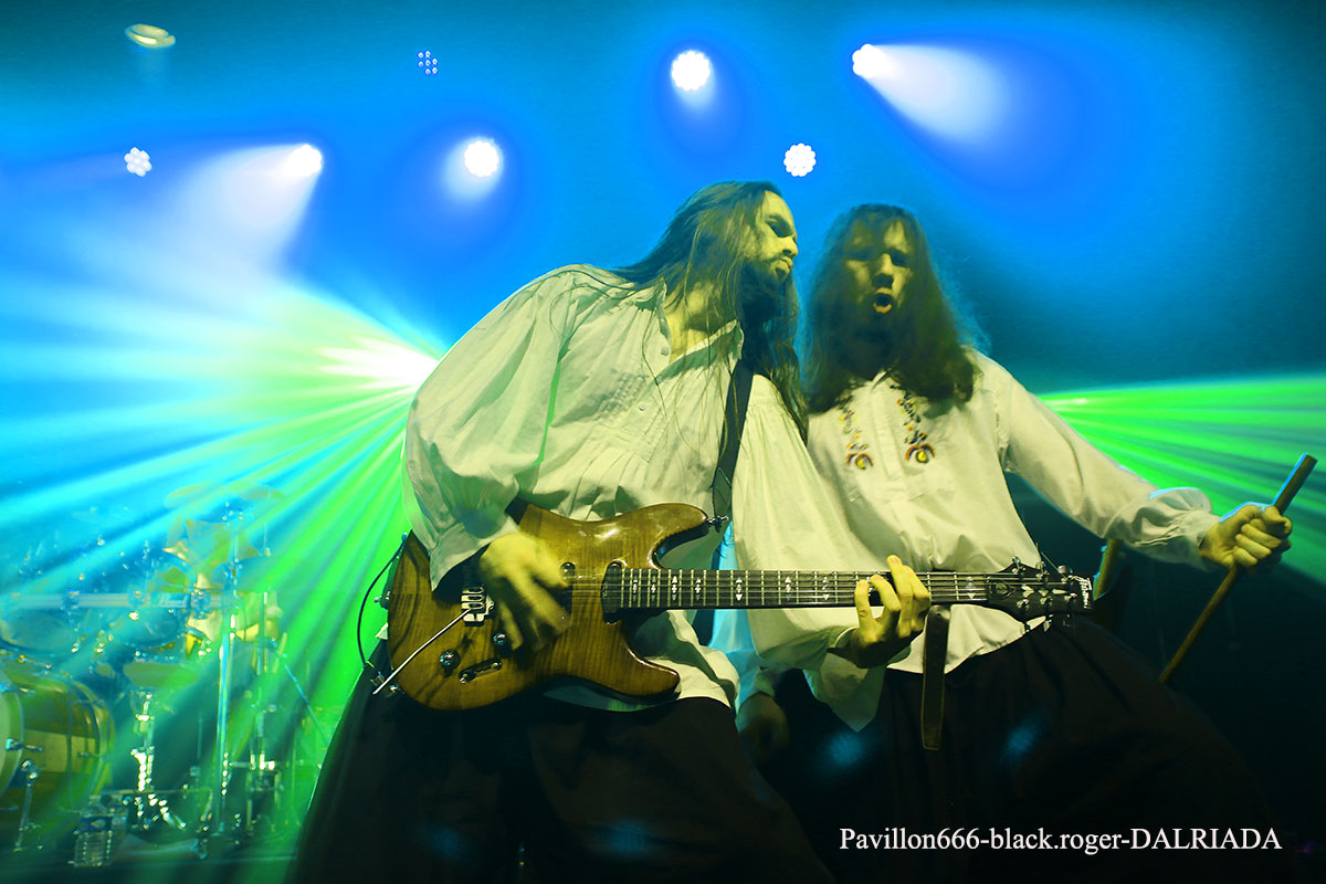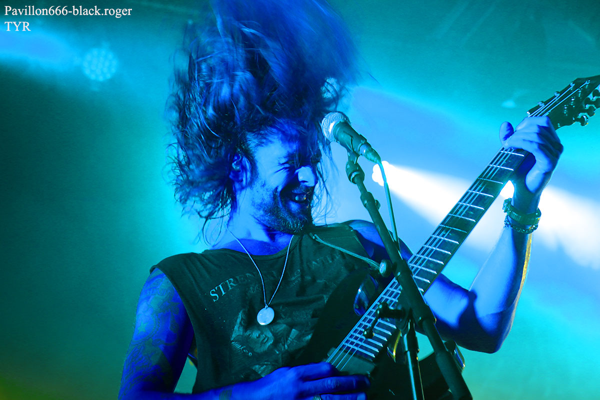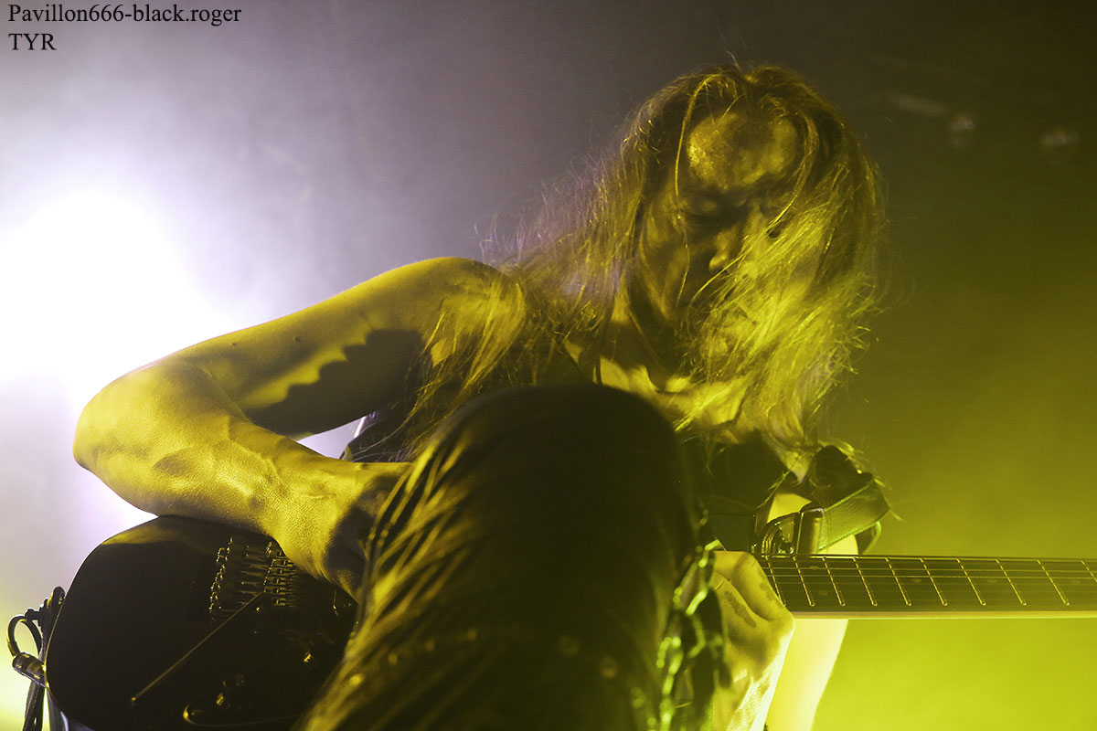 DARLIADA, sextette folk-metal Hongrois a créé un peu (beaucoup ?) la surprise en ouverture de cette soirée dès 19heures 20 devant un public déjà conséquent. Plus folk que metal ce groupe emmené par la talentueuse et dynamique Laura Binder nous propose un metal très influencé par les traditions Magyars qu’il défend sur scène avec une rare pugnacité sur une chorégraphie assez époustouflante. Peu connu sur nos latitudes cette formation a déjà un lourd passé derrière elle fait d’une importante discographie qui vaut largement le détour dont le petit dernier album « nayaruto » paru en 2018. Dalriada mixe avec habilité instruments traditionnels avec les classiques guitare/basse/batterie. Pour les voix, celle de la chanteuse Laura est contrebalancée par des voix plus rugueuses, plus agressives, mais le tout est une démonstration bien sentie de power-metal agrémenté de musique tzigane Hongroise. Et le tout fait un malheur en live comme ce soir au CCO. Bonne surprise donc pour un set de 30 petites minutes, on en aurait bien repris une louche, mais bon ! Set-list en photo. Le plus « viking » des combos Néerlandais de pagan-metal, HEIDEVOLK, prend la suite pour une grosse heure et ce soir ils vont défendre entre autre leur dernier opus en date (le 6ème SVP) intitulé « vuur van verzet ». Après un changement de line-up conséquent il y a quelques années déjà l’on pouvait se demander si ce grand groupe de pagan-metal Européen arriverait à remonter au créneau de ses sorties discographiques précédentes. La réponse est finalement oui, car après un « velua » (2015) en demi-teinte nos bataves préférés ont repris du « poil de la bête » et ce soir nous en aurons la preuve en live, direct « in your face » si vous voulez. Démonstration habituelle de double-voix, compositions d’une solidité à toute épreuve mais qui marquent quand même un changement de direction par rapport à ce que nous proposait par exemple « walhalla watch ». Mais ne crachons pas dans la soupe pagan-metal, Heidevolk à de la ressource et son histoire n’est pas terminée. Puissance et inspiration sont bien à nouveau au rendez-vous malgré une certaine évolution dans leur style constatée dans leur nouvel album. Le public y a trouvé son compte et les Hollandais ont donné un set bien costaud et prenant c’est sans appel. Set-list en photo. Après la « bourrasque » Heidevolk voici la déferlante viking-metal des Iles Féroé au Danemark, TYR et son metal épique et guerrier. Après 20 ans d’existence, cette entité pagan voulant d’une certaine manière « briser » les barrières à l’intérieur de la sphère métallique nous offre donc un 8ème album en cette année 2019. Intitulé « hel » il fait l’objet de la tournée Européenne « the Tour From Hel » CQFD. Mélodies et puissance font bon ménage chez Tyr, leur power-metal ne négligeant pas des « pseudo ballades » et surtout des refrains dont le but est d’être repris en live par un public avide d’épique. Voix fortes et impressionnantes, guitares aux soli décapants avec des rythmiques variées et ondulantes, tout est invitation aux voyages même celui du monde de la mort, monde des enfers que le groupe affectionne particulièrement. Tyr nous a démontré ce soir qu’il avait bien sa place en tête d’affiche car tout était entrainant durant son set qui se savourait de bout en bout sur des titres bien travaillés. Seul petit bémol qui n’engage que moi, certaines « envolées » linéaires qui duraient un peu trop par moments. Mais le public « envouté » par ces musiciens n’en a eu que faire et c’est bien là le principal. Très bon concert donc ! Set-list : thrym, freedom, mare, grind, sunset, swastika, ramund, a solo, gates h, N gate, H solo, fire & flame, heroes, ragnars, T solo, G solo, by the sword, hail, heaten. En conclusion, nous d’utiliserons qu’un seul mot « merci ». Merci aux organisateurs aux trois formations en lice et au public pour l’ambiance instaurée. |