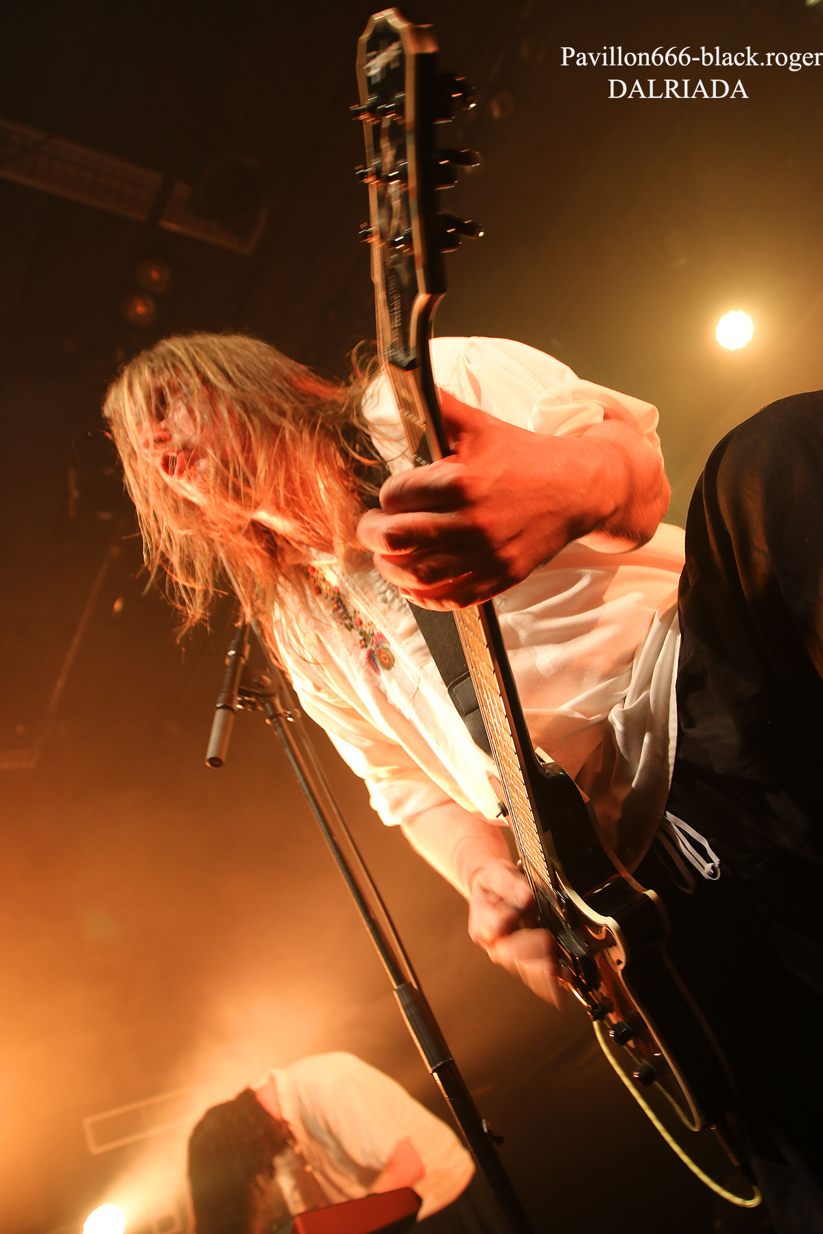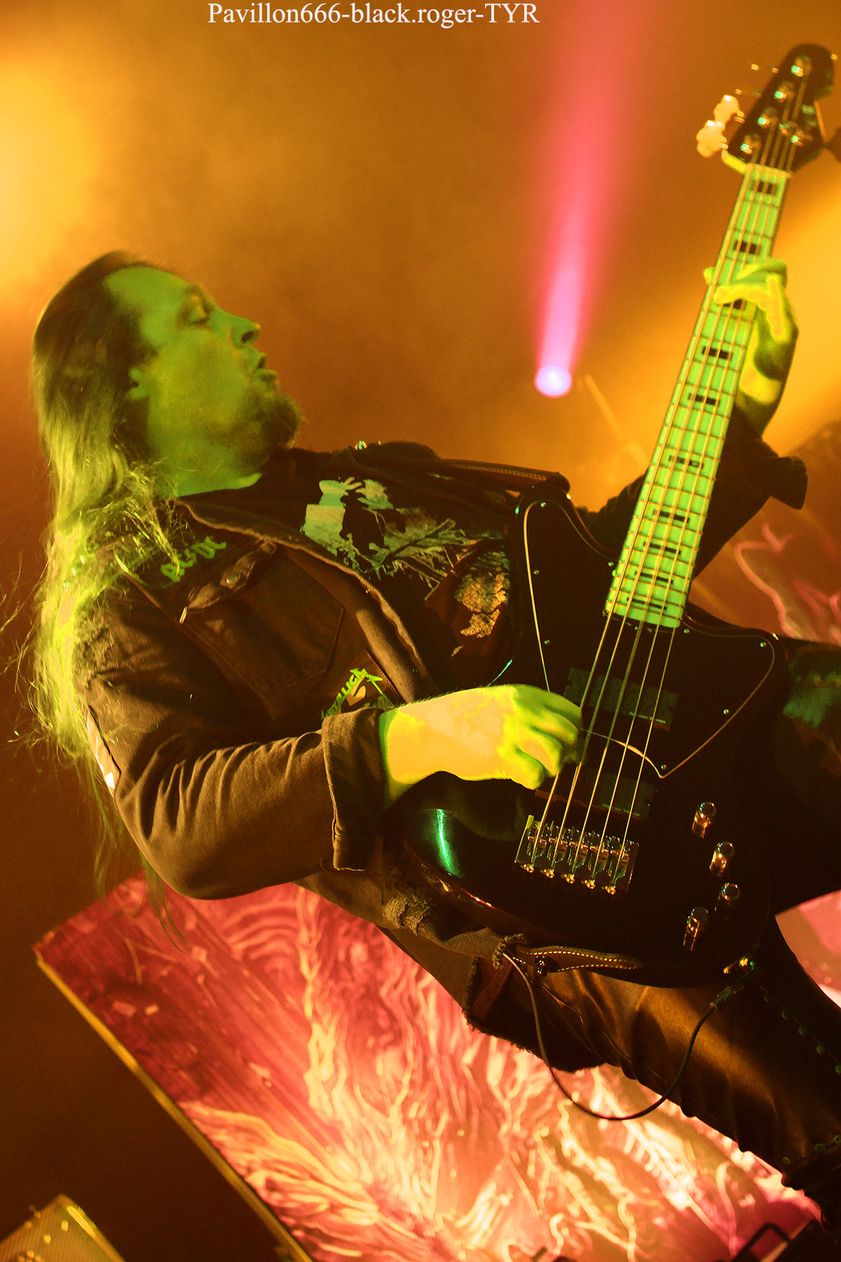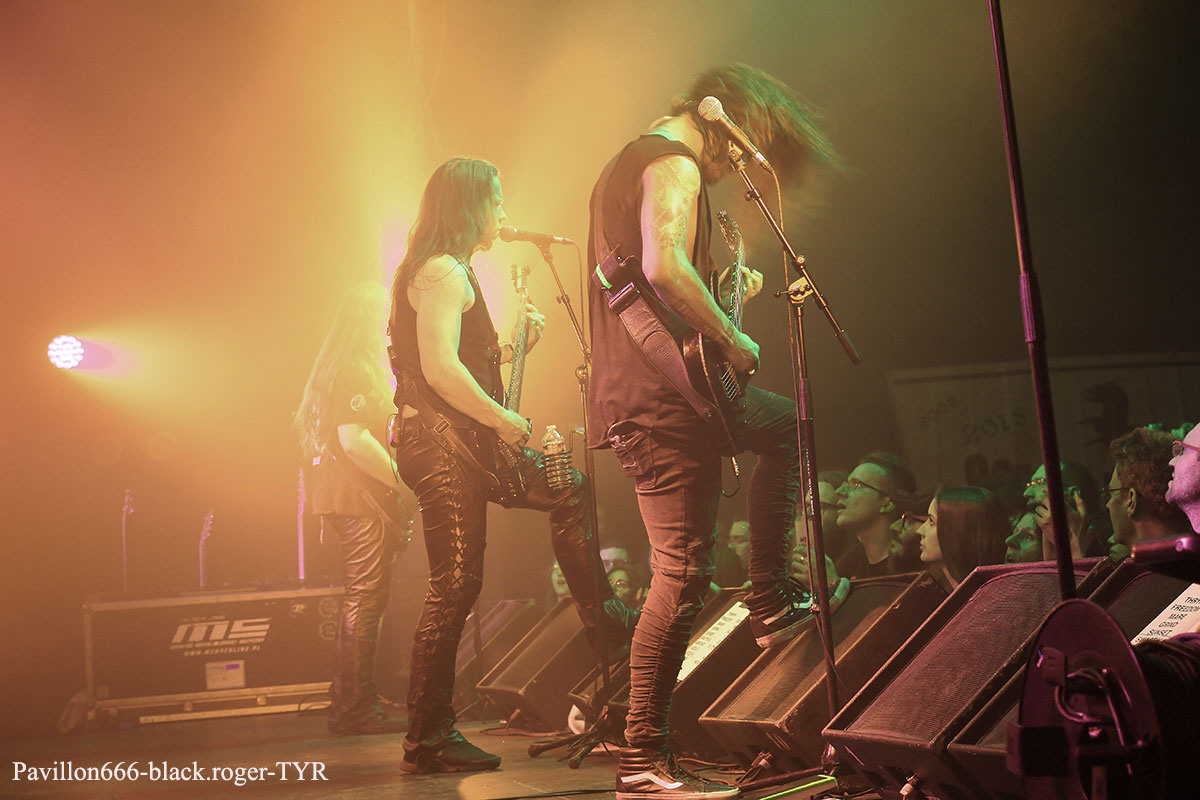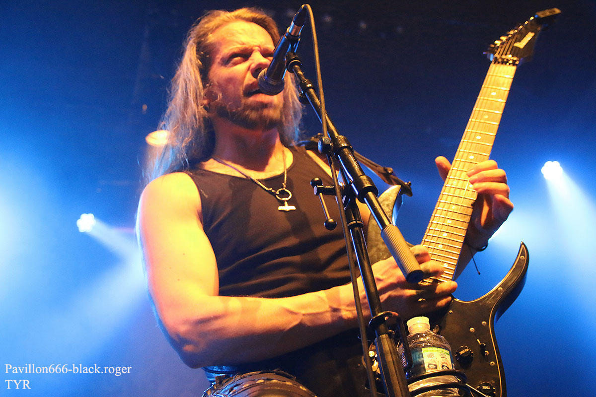DARLIADA, sextette folk-metal Hongrois a créé un peu (beaucoup ?) la surprise en ouverture de cette soirée dès 19heures 20 devant un public déjà conséquent. Plus folk que metal ce groupe emmené par la talentueuse et dynamique Laura Binder nous propose un metal très influencé par les traditions Magyars qu’il défend sur scène avec une rare pugnacité sur une chorégraphie assez époustouflante. Peu connu sur nos latitudes cette formation a déjà un lourd passé derrière elle fait d’une importante discographie qui vaut largement le détour dont le petit dernier album « nayaruto » paru en 2018. Dalriada mixe avec habilité instruments traditionnels avec les classiques guitare/basse/batterie. Pour les voix, celle de la chanteuse Laura est contrebalancée par des voix plus rugueuses, plus agressives, mais le tout est une démonstration bien sentie de power-metal agrémenté de musique tzigane Hongroise. Et le tout fait un malheur en live comme ce soir au CCO. Bonne surprise donc pour un set de 30 petites minutes, on en aurait bien repris une louche, mais bon ! Set-list en photo. Le plus « viking » des combos Néerlandais de pagan-metal, HEIDEVOLK, prend la suite pour une grosse heure et ce soir ils vont défendre entre autre leur dernier opus en date (le 6ème SVP) intitulé « vuur van verzet ». Après un changement de line-up conséquent il y a quelques années déjà l’on pouvait se demander si ce grand groupe de pagan-metal Européen arriverait à remonter au créneau de ses sorties discographiques précédentes. La réponse est finalement oui, car après un « velua » (2015) en demi-teinte nos bataves préférés ont repris du « poil de la bête » et ce soir nous en aurons la preuve en live, direct « in your face » si vous voulez. Démonstration habituelle de double-voix, compositions d’une solidité à toute épreuve mais qui marquent quand même un changement de direction par rapport à ce que nous proposait par exemple « walhalla watch ». Mais ne crachons pas dans la soupe pagan-metal, Heidevolk à de la ressource et son histoire n’est pas terminée. Puissance et inspiration sont bien à nouveau au rendez-vous malgré une certaine évolution dans leur style constatée dans leur nouvel album. Le public y a trouvé son compte et les Hollandais ont donné un set bien costaud et prenant c’est sans appel. Set-list en photo. Après la « bourrasque » Heidevolk voici la déferlante viking-metal des Iles Féroé au Danemark, TYR et son metal épique et guerrier. Après 20 ans d’existence, cette entité pagan voulant d’une certaine manière « briser » les barrières à l’intérieur de la sphère métallique nous offre donc un 8ème album en cette année 2019. Intitulé « hel » il fait l’objet de la tournée Européenne « the Tour From Hel » CQFD. Mélodies et puissance font bon ménage chez Tyr, leur power-metal ne négligeant pas des « pseudo ballades » et surtout des refrains dont le but est d’être repris en live par un public avide d’épique. Voix fortes et impressionnantes, guitares aux soli décapants avec des rythmiques variées et ondulantes, tout est invitation aux voyages même celui du monde de la mort, monde des enfers que le groupe affectionne particulièrement. Tyr nous a démontré ce soir qu’il avait bien sa place en tête d’affiche car tout était entrainant durant son set qui se savourait de bout en bout sur des titres bien travaillés. Seul petit bémol qui n’engage que moi, certaines « envolées » linéaires qui duraient un peu trop par moments. Mais le public « envouté » par ces musiciens n’en a eu que faire et c’est bien là le principal. Très bon concert donc ! Set-list : thrym, freedom, mare, grind, sunset, swastika, ramund, a solo, gates h, N gate, H solo, fire & flame, heroes, ragnars, T solo, G solo, by the sword, hail, heaten. En conclusion, nous d’utiliserons qu’un seul mot « merci ». Merci aux organisateurs aux trois formations en lice et au public pour l’ambiance instaurée. |