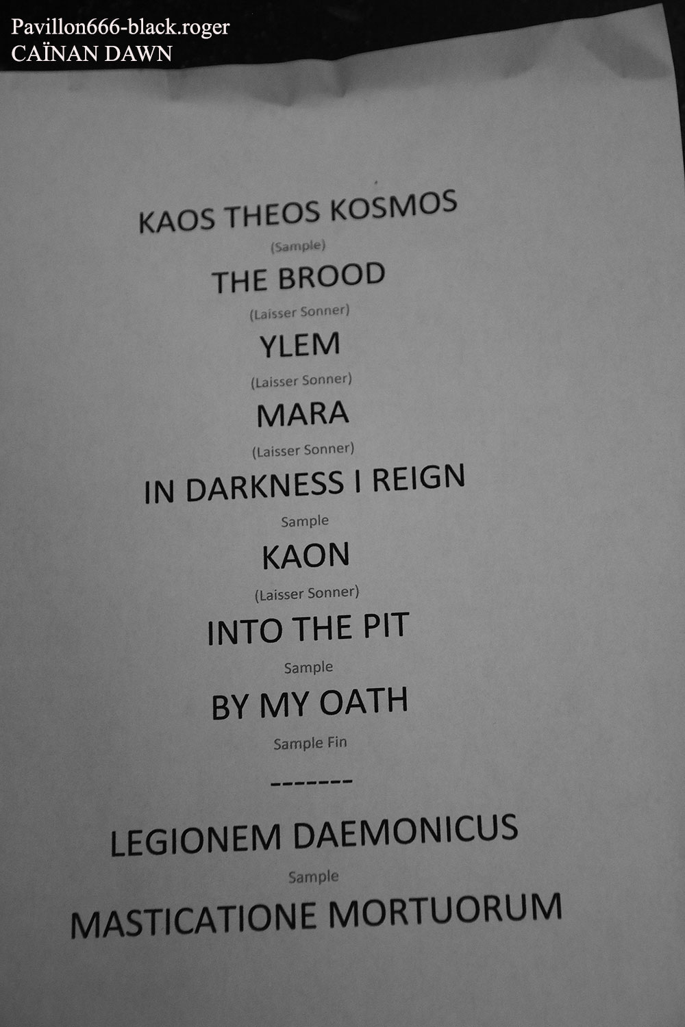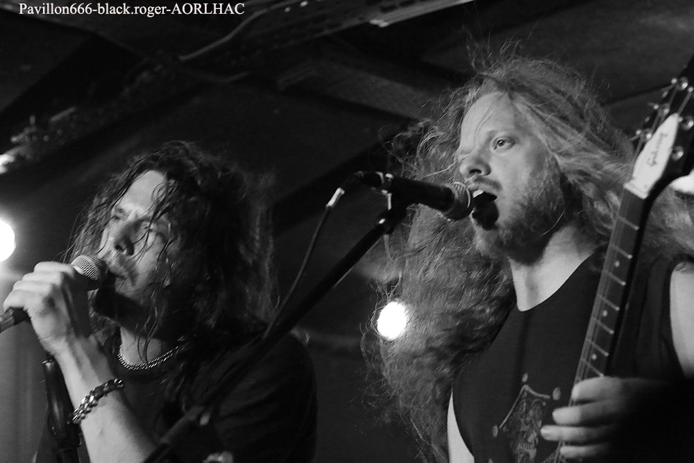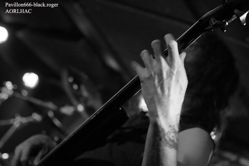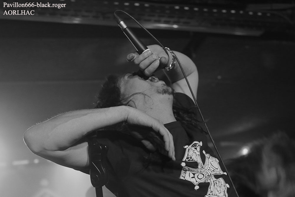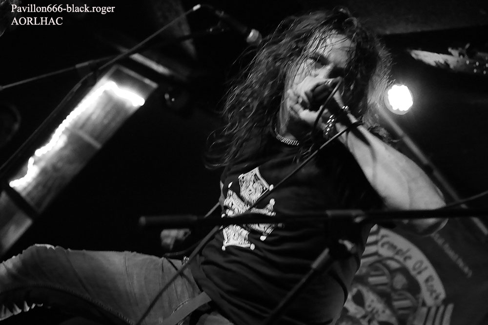 Après 15 années de carrière et trois albums à son actif, ceux de CAÏNAN DAWN sont de plus en plus convaincants dans leur démarche black-metal occulte, froid et malsain. Et en live le groupe devient de plus en plus prenant du point de vue atmosphérique. Le groupe réussit à nous faire entrer dans son monde résolument hypnotique à l’aide de compositions longuement étudiées afin de nous faire passer de l’ombre, à une certaine lumière dans une débauche instrumentale assurément bien exécutée où la voix du frontman et son attitude comme possédée ne vous laisse aucun répit. Ces musiciens ménageant avec doigté passages lourds et accélérations démoniaques. Alors oui, ceux de Chambéry nous ont surpris encore une fois sur scène confirmant tout le bien que je pensais de leur démarche après les avoir vus et apprécié plusieurs fois ici ou ailleurs pour un parcours initiatique et orthodoxe sur la route du black-metal, non pas venu d’ailleurs (pays Nordiques) mais bien de chez-nous, on aime. Set-list en photo. Quittons maintenant les musiciens Savoyards pour ceux venus d’Aurillac en Auvergne du Sud, AORLHAC. Du black occulte passons au black épique et païen dans une veine plu « folk » dirons-nous. Aorlhac nous emmène depuis une douzaine d’années dans le vent de son particularisme occitan à l’aide d’albums intitulés « la chronique des vents », « A la croisée des vents », « la cité des vents » et « l’esprit des vents » (2018). Ce qui frappe d’entrée de jeu et dès le début du set, c’est la démarche énergique et passionnée, guerrière et épique aussi de cette horde qui a choisi le chant en Français pour nous conter certaines aventures historiques d’Auvergne. Tout ceci se passe furieusement en live, le frontman faisant vire dans un registre black sauvage ces aventures réelles ou légendaires. Et du côté guitare, du côté rythmique c’est un flot de riffs et de blasts n’acceptant que peu souvent des ralentissements ambiancés. Alors Aorlhac nous propose un black bien « frenchie » si l’on peut dire qui revendique une certaine appartenance, une certaine identité fière et sans concessions. Mélodies et fureur ont fait bon ménage durant une bonne heure de prestation, une prestation bien enlevée qui a mis tout le monde d’accord ce soir dans la chaleur et la sueur du club rock/metal du Quai Arloing de Lyon. Ce fus énorme en fait et l’on se donne rendez-vous bientôt à Clisson où cet hiver à Bourg en Bresse pour apprécier de nouveau ces black-métalleux, chiche ! Set-list en photo. Très bonne soirée donc qui mérite bien un coup de cœur de la part de pavillon666. Merci au Rock n’Eat, aux deux « hordes » black-metal et au public venu en nombre, il fallait le préciser encore une fois. |
