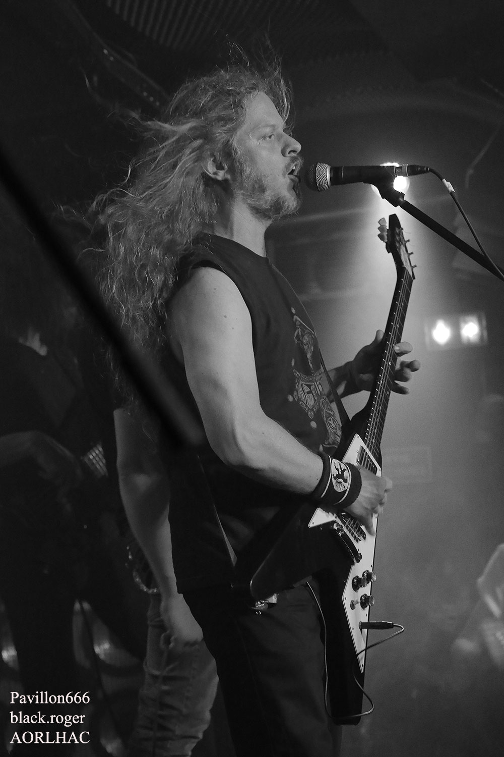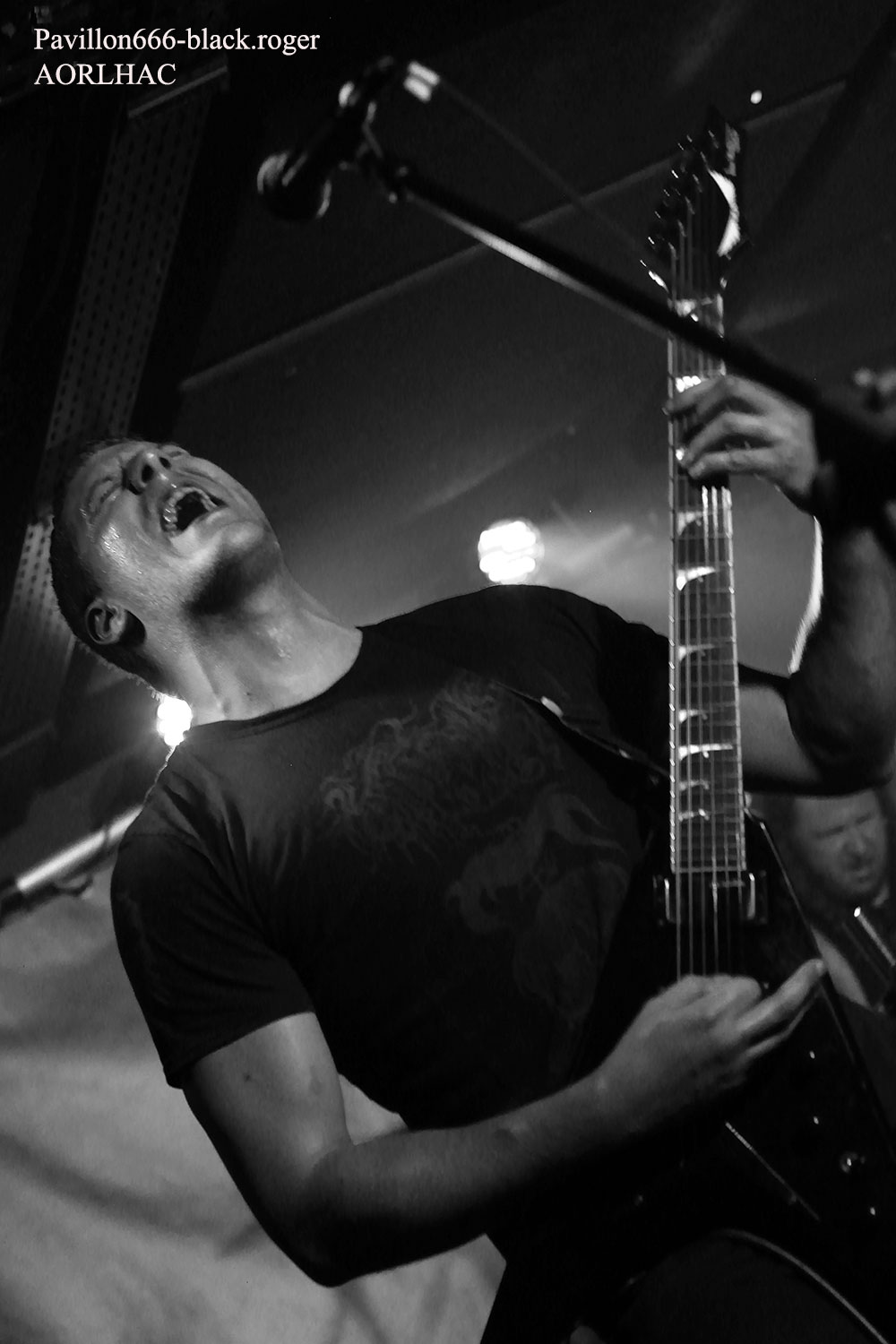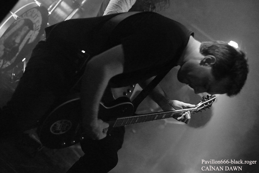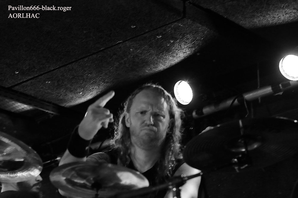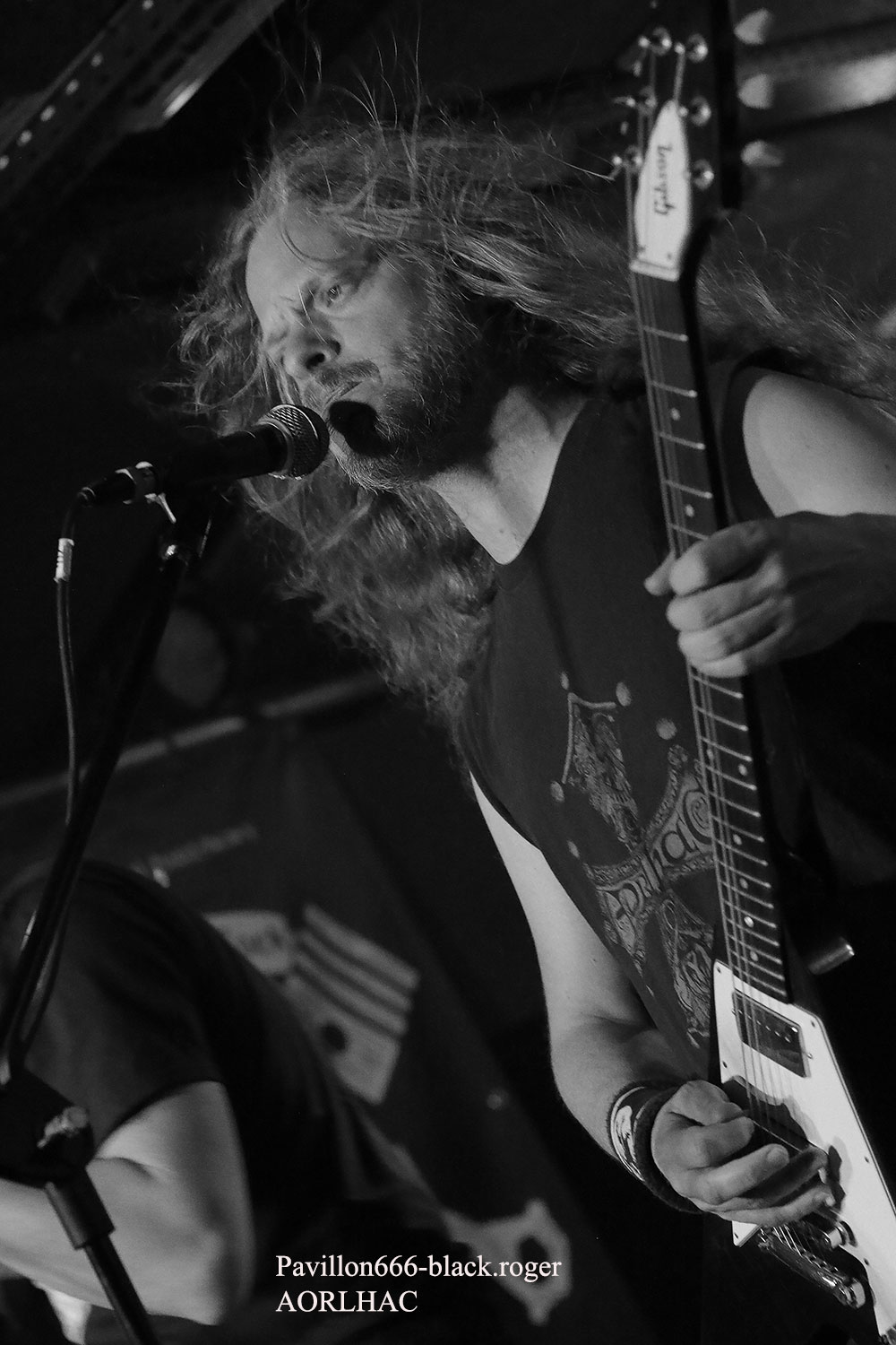Après 15 années de carrière et trois albums à son actif, ceux de CAÏNAN DAWN sont de plus en plus convaincants dans leur démarche black-metal occulte, froid et malsain. Et en live le groupe devient de plus en plus prenant du point de vue atmosphérique. Le groupe réussit à nous faire entrer dans son monde résolument hypnotique à l’aide de compositions longuement étudiées afin de nous faire passer de l’ombre, à une certaine lumière dans une débauche instrumentale assurément bien exécutée où la voix du frontman et son attitude comme possédée ne vous laisse aucun répit. Ces musiciens ménageant avec doigté passages lourds et accélérations démoniaques. Alors oui, ceux de Chambéry nous ont surpris encore une fois sur scène confirmant tout le bien que je pensais de leur démarche après les avoir vus et apprécié plusieurs fois ici ou ailleurs pour un parcours initiatique et orthodoxe sur la route du black-metal, non pas venu d’ailleurs (pays Nordiques) mais bien de chez-nous, on aime. Set-list en photo. Quittons maintenant les musiciens Savoyards pour ceux venus d’Aurillac en Auvergne du Sud, AORLHAC. Du black occulte passons au black épique et païen dans une veine plu « folk » dirons-nous. Aorlhac nous emmène depuis une douzaine d’années dans le vent de son particularisme occitan à l’aide d’albums intitulés « la chronique des vents », « A la croisée des vents », « la cité des vents » et « l’esprit des vents » (2018). Ce qui frappe d’entrée de jeu et dès le début du set, c’est la démarche énergique et passionnée, guerrière et épique aussi de cette horde qui a choisi le chant en Français pour nous conter certaines aventures historiques d’Auvergne. Tout ceci se passe furieusement en live, le frontman faisant vire dans un registre black sauvage ces aventures réelles ou légendaires. Et du côté guitare, du côté rythmique c’est un flot de riffs et de blasts n’acceptant que peu souvent des ralentissements ambiancés. Alors Aorlhac nous propose un black bien « frenchie » si l’on peut dire qui revendique une certaine appartenance, une certaine identité fière et sans concessions. Mélodies et fureur ont fait bon ménage durant une bonne heure de prestation, une prestation bien enlevée qui a mis tout le monde d’accord ce soir dans la chaleur et la sueur du club rock/metal du Quai Arloing de Lyon. Ce fus énorme en fait et l’on se donne rendez-vous bientôt à Clisson où cet hiver à Bourg en Bresse pour apprécier de nouveau ces black-métalleux, chiche ! Set-list en photo. Très bonne soirée donc qui mérite bien un coup de cœur de la part de pavillon666. Merci au Rock n’Eat, aux deux « hordes » black-metal et au public venu en nombre, il fallait le préciser encore une fois. |