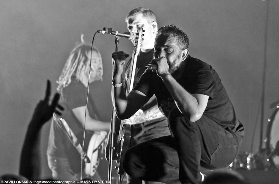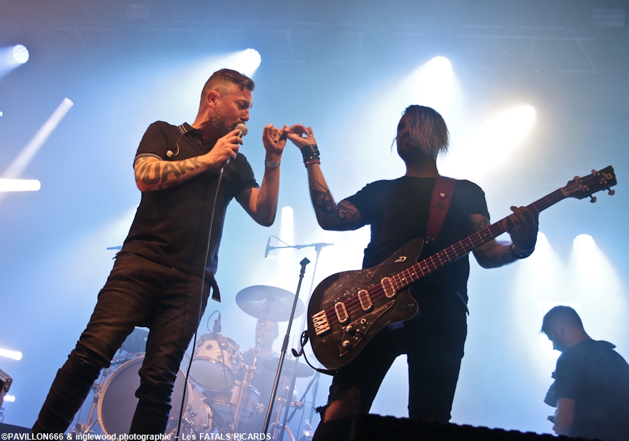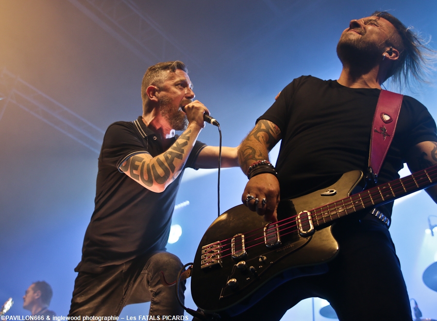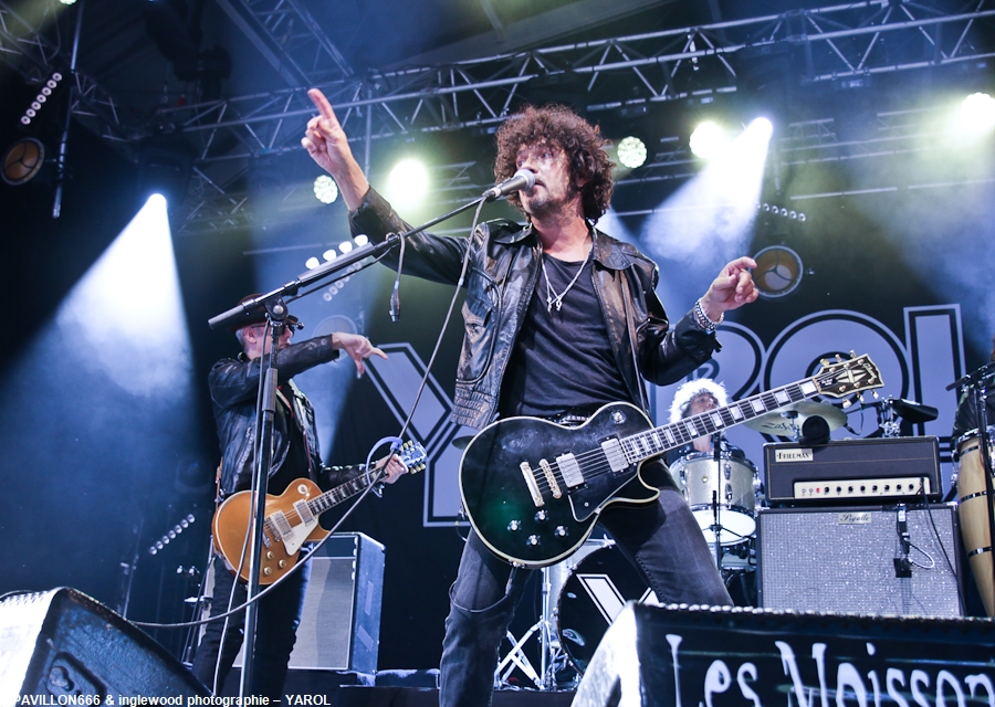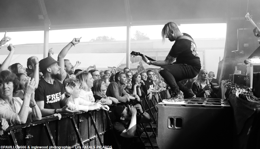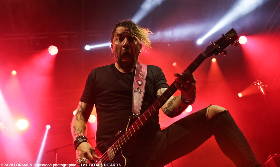 Installé à Juvigny, petit village de la Marne, le festival des Moissons Rock est superbement organisé et frôle la perfection. A l’extérieur, un énorme parking balisé et encadré ainsi qu’un camping pour les festivaliers et à l’intérieur le site est superbe. De nombreux stands de nourritures variés, un bar à vins, une crèche (eh oui !!), des protections auditives gratuites et même un dispositif appelé « moissonneur sobre » qui encourage à rester calme et raisonnable sur l’alcool. C’est vraiment nickel, bravo aux orgas et aux nombreux bénévoles. Deux scènes, la première, une petite sur laquelle le groupe Dirty Raven à assurer quatre mini-concerts afin de combler le temps de mise en place de la grande scène et la seconde, quelle grande scène ! Une sorte de copie miniature des chapiteaux Altar et Temple du Hellfest qui nous a permis de s’abriter du soleil et d’apprécier les éclairages nombreux et superbes. De bien belles conditions pour les festivaliers et les artistes. Je vous parlerais ici de la journée du vendredi. L’affiche se composait de : Mass Hysteria, Les Fatals Picards, Yarol, Catfish et Dirty Raven. 18h45, c’est au duo (en trio pour le live ?) Catfish de démarrer la journée. Guitare, clavier et percu-chant, le groupe évolue sur un registre blues-rock vintage dans la lignée d’un White Stripes. La chanteuse Amandine se donne beaucoup et sa voix est parfaite. Malheureusement, je suis resté un peu en dehors du set. C’est surement parce que ce n’est pas mon style mais j’ai trouvé que les titres tournaient un peu en rond. Le groupe n’a jamais vraiment réussi à faire décoller un public encore assez peu nombreux. On file en face afin de se faire réveiller par les excellents Dirty Raven. Le trio Rémois a donc assuré 4 concerts !! et toujours avec la même énergie. Un rock couillu surfant sur le grunge et le stoner extrêmement efficace qui a su bien décrasser les tympans des festivaliers. Bravo les mecs ! Je n’attendais rien de Yarol, même si on ne présente plus le guitariste et directeur musical du taulier, fantastique dans FFF et depuis 2018 sous son propre nom, l’écoute de son album ne m’avait pas fait grand-chose, trop lisse et produit, pas assez sale et rock n’roll. Eh, bien, les amis, Yarol, en live, c’est une tout autre affaire ! Encadré par une belle bande de tueurs, les titres sont efficaces, groovys, funky et superbement emmenés. Le gaillard est évidemment très à l’aise sur scène et sait comment conduire un concert de rock. Belle surprise et moment très agréable. Petit bonus avec les deux derniers titres, « Fils de personne », la reprise du « Fortunate Song » de Creedence Clearwater Revival que chantait Johnny et surtout le méchamment fonky « Barbès » de FFF qui a enflammé le festival. Concert magistral de Yarol ! Rapide changement de plateau et c’est place à la gaudriole avec Les Fatals Picards. Comme tout le monde j’avais déjà eu vent de ces petits comiques, mais je n’avais jamais vu ça en live. Avant tout, il faut bien avouer deux, trois trucs. Ce fut un réel succès, le devant de scène était comble et une fan base énorme était présente pour reprendre en cœur les refrains, pour rire et danser et, il me semble que beaucoup de monde a grandement apprécié la prestation des Fatals Picards. Quant à moi, je dois avouer qu’il y avait beaucoup d’énergie, quelques bonnes blagues, des titres entrainant et un humour omniprésent, mais j’ai trouvé ça un peu long. Sur la durée, les vannes un brin simpliste m’ont lassées. Les FP maitrisent musicalement, mais j’ai eu parfois l’impression d’assister à un live des Inconnus. Je ne suis pas déçu parce que je n’étais pas venu pour eux, les fans ont apprécié, c’est là, le principal. Avec Mass Hysteria, le doute n’a pas sa place, l’ambiance sera là, aussi bien sur scène que dans la fosse. Ce fut évidemment encore le cas, ce vendredi aux Moissons Rock. Comme tous les fans présents, je me suis régalé. Il est toutefois à signaler que le groupe revenait d’une pause d’un mois et que ça s’est senti. Quelques faux départs et notre bon Mouss qui a eu un joli trou de mémoire sur « Contradiction » mais surtout un petit manque de communication et de contact avec le public. Pour appuyer mon propos, je vous dirais juste que le groupe n’a pas joué « P4 », c’est pourtant un moment très attendu pendant lequel les musiciens descendent dans la fosse et n’a pas joué non plus « Respect to the dance floor » qui donne l’occasion aux furieuses de monter sur scène. Attention, excellent concert qui a fait bouillonner le festival, le pit a bien bougé et les 2000 spectateurs en ont pris plein les yeux et les oreilles à n’en point douter. On attend le Hellfest avec impatience, messieurs, il faudra tout donner … Merci à Jean-Louis Coquillard et Laurent Charnot pour l’accréditation, merci également à tous ceux qui ont travaillés sur ce beau et grand festival, à l’année prochaine et encore bon 25e anniversaire ! |