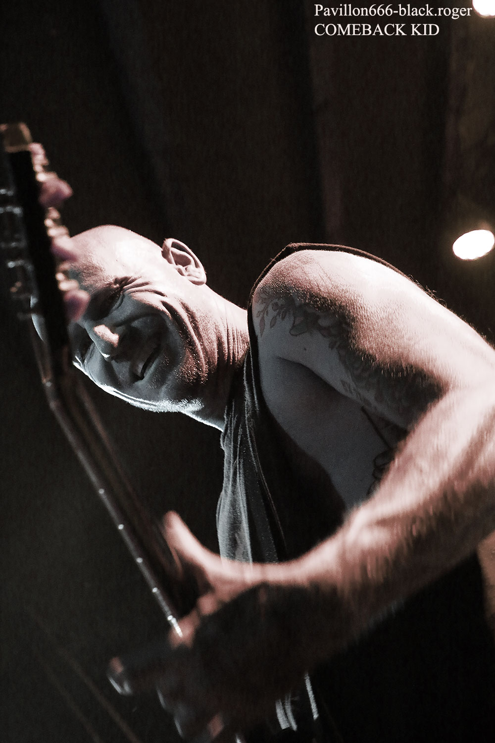 T.A.R.LD., après ses exploits scéniques au récent Hellfest remet le couvert ce soir devant un public qui lui est acquit il me semble. Alors on va faire simple, ces « gones » ne tiennent pas en place, énergie et compositions « coup de poing » sont au rendez-vous et ce n’est pas de « Refused » ! Bon, mis à part cette blague douteuse faisant référence à l’une de leurs influences nous allons dire que T.A.R.L.D. vous met une « tarte » dans la face à l’aide d’un punk/hardcore de haute volée. D’ailleurs le frontman s’envole vers le public et retombe par terre bien souvent. Mais ses acolytes envoient du bois, c’est net, carré, précis et diablement efficace. Après 14 années d’existence, 3 albums, 3 EPs et une démo plus des concerts explosifs données un peu partout, nos lyonnais n’ont plus rien à prouver et ce soir c’est parti dans tous les sens niveau musique musclée et acrobaties en tous genre, on aime tout simplement. Nos cousins Québécois MUTE sont venus nous faire goûter à leur punk/rock mélodique et coloré ce soir. Du punch, de la technique aussi, du chant, des chants qui restent gravés dans nos, têtes. Tout ça me rappelle un peu le bon vieux punk Callifornien, le punk « à roulette », ce terme n’étant pas péjoratif je le précise. Bref, en live c’est un peu « tubesque » avec des rythmiques quand même plombées, les amateurs du genre ont sûrement apprécié il me semble, mais l’on sentait bien que le public attendait avec impatience la tête d’affiche de la soirée, ce qui n’enlève rien à la prestation, somme toute agréable de ceux de la « belle province » au Canada. Et bien entendu avec la tête d’affiche COMEBACK KID ce fus la guerre dès les premiers titres je ne vous fait pas un dessin, garez-vous c’est du costaud, du punk/hardcore qui vous déboîte les cervicales et qui vous fait partir en vol plané sur vos petits copains (et copines) ! Ici on ne rigole plus et les canadiens de Winnipeg sont plus hardcore que punk ce qui nous donne des envois directs « in your face » sur une rythmique d’enfer. En presque 20 années passées au service du punk/hardcore/rock, Comeback Kid s’est je crois plus endurci scéniquement parlant. Bien entendu un certain côté mélodique reste en filigrane mais Andrew, sans négliger ce penchant, arrive à faire ressortir une hargne palpable. Et que dire des « boulets » que le groupe nous envoie, d’une efficacité redoutable, imparable à l’aide d’un son à nous détruire les cages à miel. Alors leur set fut chaud, show, rien de plus à ajouter vous n’aviez qu’à venir à Décines ce Lundi 1er Juillet prendre votre dose de brutalité en live, incroyable ! Merci encore une fois Lyon-Hardcore vous nous gâtez tous ces temps et merci à notre cher Warmaudio pour son accueil indéfectible. Ah, j’oubliais, merci aux 3 formations présentes, vous avez « brûlé les planches » ce soir. Et bien entendu merci au public hardcore en nage pour sa fidélité, on recommence quand ? |
