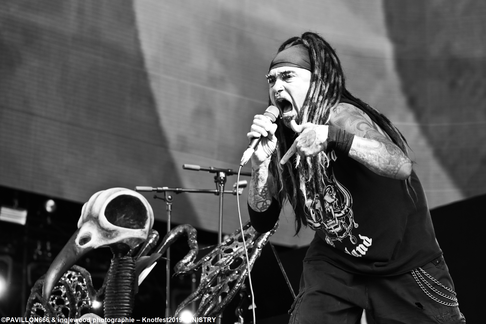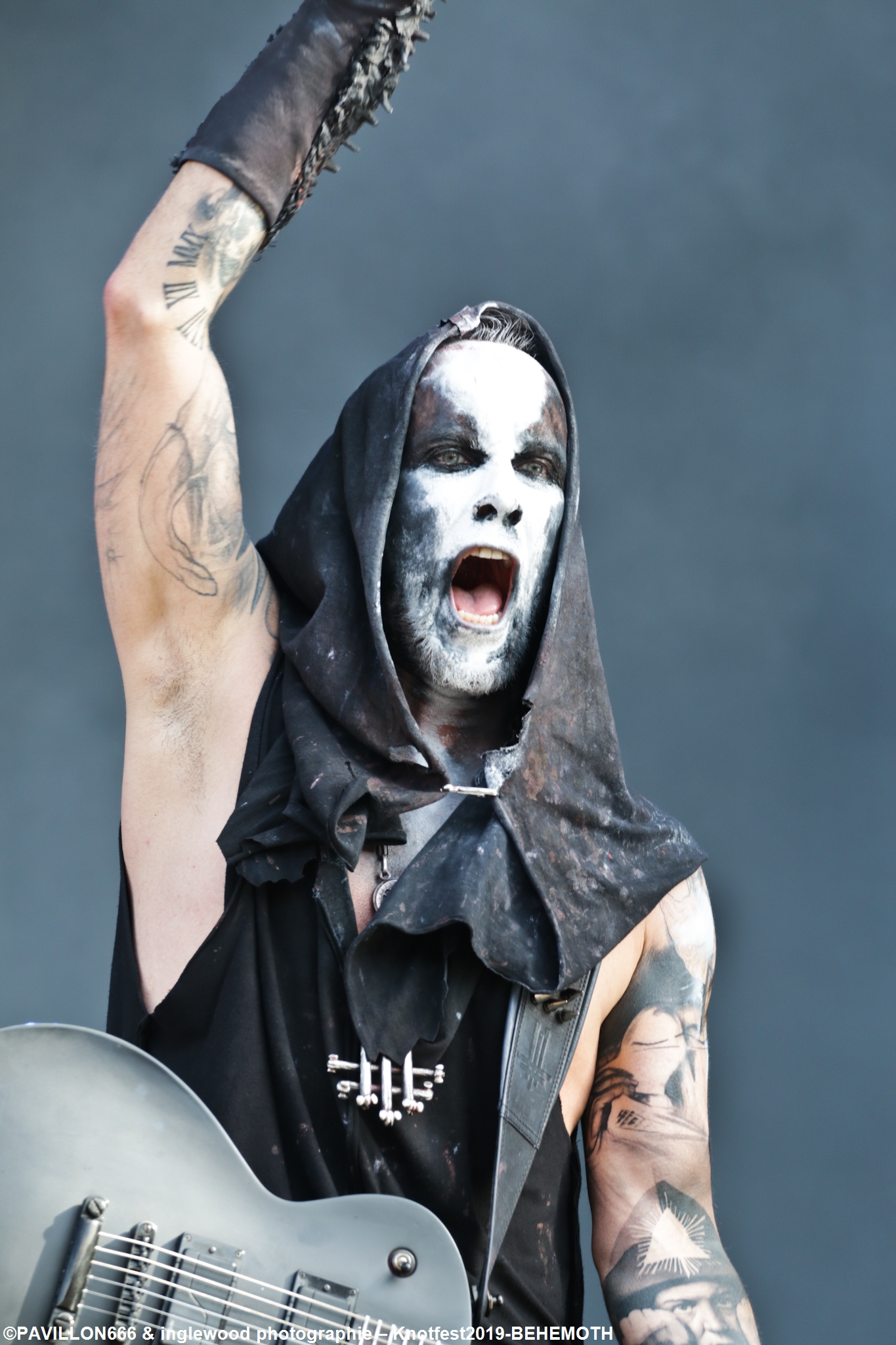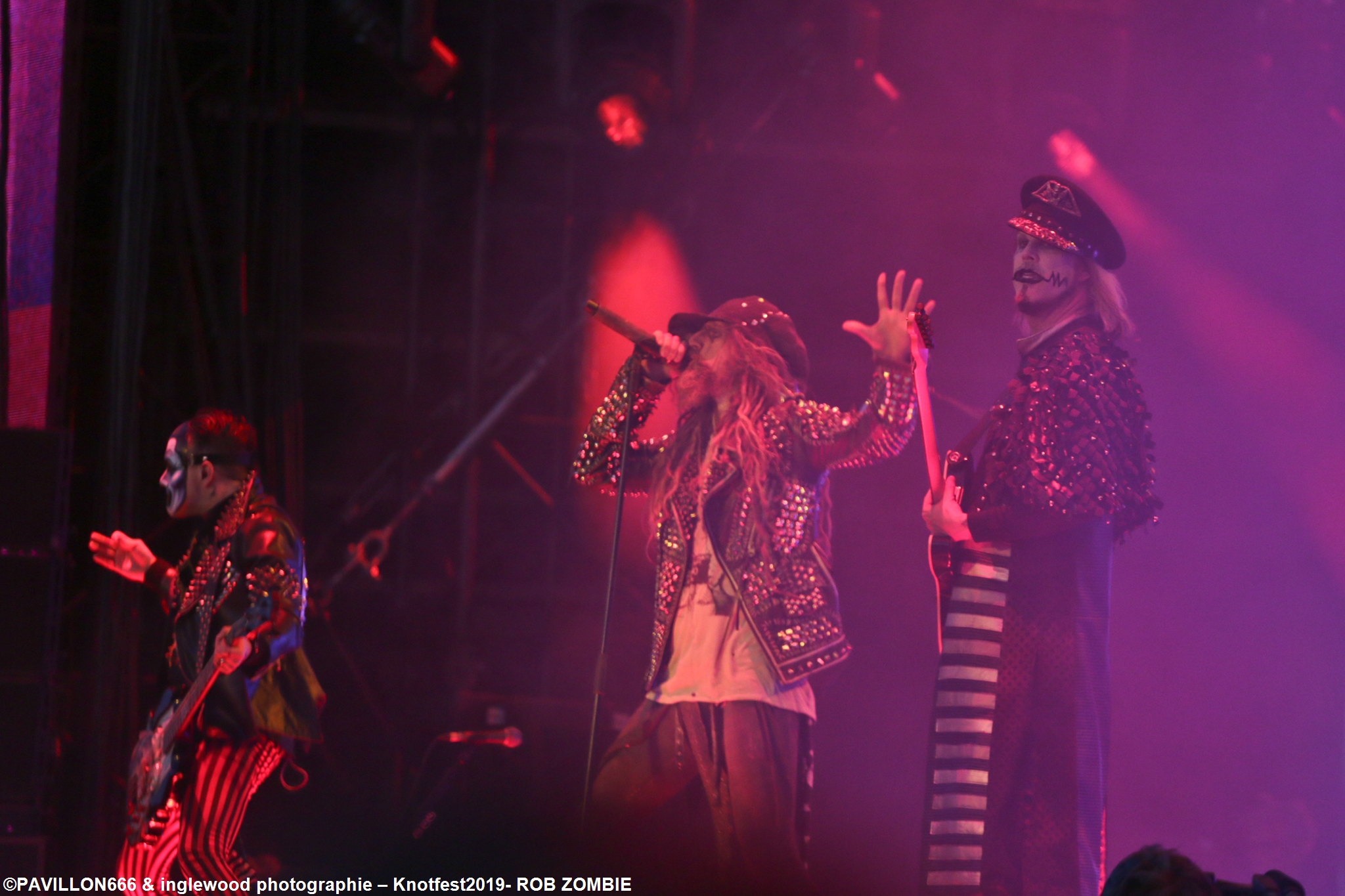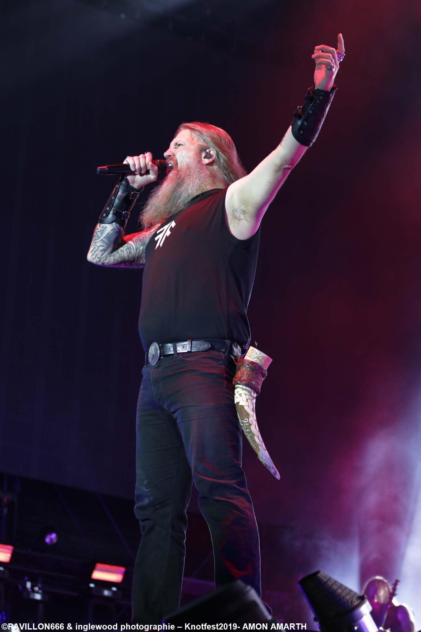 Ce jeudi 20 juin, c'est un soleil radieux et une chaleur relativement supportable qui nous ont accueillis sur le site du Hellfest pour une journée "bonus" : le Knotfest ! À ce titre, l'accès à Valley, Altar, Temple ou à la War Zone était encore bouclé puisque tous les concerts du Knotfest prenaient place sur les main stage. Grosse nouveauté, dans tous les sens du terme, puisque les deux main stage sont tapissées d'un bout à l'autre de la scène d'immenses écrans incurvés sur lesquels les groupes projettent leur propre support visuel. Pile à l'heure, c'est le groupe Sick of it All qui a ouvert le bal devant une fosse encore clairsemée. Un bon nombre de festivaliers a préféré se jeter sur le merch officiel pour ne pas avoir faire la queue trop longtemps et donc ne pas manquer trop de concert. La première place n'est donc pas toujours la meilleure. Une bonne moitié de l'affluence totale du fest est là lorsque Amaranthe prend possession de la main stage 2. Le set qui était pourtant bien parti s'est trouvé interrompu par un léger problème avec les balances ayant lieu sur l'autre main stage : le son de la guitare du groupe Ministry passait dans les amplis d'Amaranthe. Qu'à cela ne tienne, le groupe fait alors participer les fans pour demander à ce que cette guitare indésirable se taise ! Il aura fallu au groupe faire preuve d'un peu d'imagination pour parer à cet imprévu et c'est sur Elize Ryd, chanteuse du groupe que cela est tombé puisqu'elle a dû combler l'espace en étant la seule à être restée sur scène, entonnant quelques morceaux à cappella pour meubler. Heureusement, le problème technique a vite été résolu et le concert a pu reprendre son cours devant une fosse de plus en plus peuplée. Si le Knotfest bénéficie de la structure du Hellfest, il ne bénéficie néanmoins pas de son ambiance mythique. La zone est à 1/3 fermée mais c'est le fait qu'il y ai parfois des moments de blanc complet entre les concerts qui fait un peu redescendre l'ambiance, surtout quand le groupe suivant, Ministry, débute son set en retard (probablement à cause du problème de balance). La suite des festivités est assurée par les Polonais de Behemoth qui nous ont offert un spectacle épique. Ce sont les premiers de la soirée à utiliser de la pyrotechnie sur scène et pas qu'un peu. Des flammes de plusieurs mètres de haut s'envolent régulièrement sur le devant de la scène tandis que des boules de tailles plus raisonnables apparaissent de temps à autre derrière la ligne que forment les musiciens et leurs pieds de micro sculpté dans le métal arborant l'imagerie complexe du groupe. Une imagerie qui a d'ailleurs été très bien exploité grâce aux écrans panoramiques et aux kakemonos que le groupe a disposé sur les côtés. Pour ajouter à cette expérience très immersive, le groupe est proche de son public, Adam Darski alias Nergal, chanteur du groupe viendra plusieurs fois interagir avec le public pour le faire plonger corps et âme dans l'univers de Behemoth. Il est dommage cependant que beaucoup de personnes, ayant changé de scène trop tôt, aient raté le splendide final avec tambour concocté par le groupe. Le groupe suivant a reçu un accueil du tonnerre et ne devait pas être loin de faire l'unanimité. En effet dès le premier morceau, Papa Roch a eu le plaisir de voir une masse de monde reprendre en cœur les refrains (et pas que). Côté ambiance, ils sont le premier groupe à demander explicitement un wall à la foule rassemblée devant la scène. La communication avec le public est excellente. Le set de Papa Roch est un succès sans conteste. Après une telle réussite cela a dû être un peu la douche froide pour Powerwolf qui a pris place sur scène à leur suite. Le groupe a vu une bonne partie des spectateurs quitter la zone des concerts pour se diriger vers le coin restauration. En bon groupe de power métal, ils avaient pourtant amené un sympatrique décor comportant un couloir de feu et les membres arboraient des maquillages en cohérence avec l'imagerie du groupe. Il faut croire que le power métal n'était pas ce que la plupart des spectateurs du Knotfest avaient envie d'entendre. Le public est revenu en masse lorsque l'heure du concert de Rob Zombie s'est profilée. Une nouvelle fois, c'est un carton plein. Rob est une pile électrique, il est toujours en mouvement, à sauter un peu partout ou à arpenter la scène tel un lion en cage. Les seuls moments où il n'est pas monté sur ressorts sur scène, il n'est tout simplement pas sur scène, en train de changer de tenue en backstage ou bien de jouer avec les chanceux du premier rang pendant le superbe solo de guitare de John 5. En dehors de ça, il n'y a aucun temps mort : les communications avec le public sont courtes mais percutantes à l'image de celle-ci, lorsqu'il nous dit qu'il pense à chaque fois qu'il vient jouer au Hellfest que c'est le meilleur endroit pour jouer et nous demande de ne pas le faire changer d'avis ce soir. Le global est grandiose, tous les décors et les costumes des musiciens sont faits pour vous transporter ailleurs, quelque part dans l'imaginaire de M.Zombi. C'est un monde bien diffèrent qui a suivi celui de Rob Zombi puisque c'est quelques siècles en arrière chez les Vikings qu'Amon Amarth nous a ensuite emmené. La scène est décorée d'un immense casque à cornes sur lequel est perché la batterie. Le reste de la scène est occupé par de la pyrotechnie et des combats de vikings qui prennent vie au rythme du set. Ce dernier se terminera d'ailleurs dans un mur de feux d'artifice blanc. L'heure tourne et c'est déjà le moment pour les membres de Slipknot de venir parader dans le festival qui porte leur nom. La structure de la scène est impressionnante : celle-ci comporte plusieurs niveaux étalés sur la longueur totale de la scène et est recouverte de nombreux écrans, que l'on retrouve également sur les fûts des percussionnistes. Les ventil