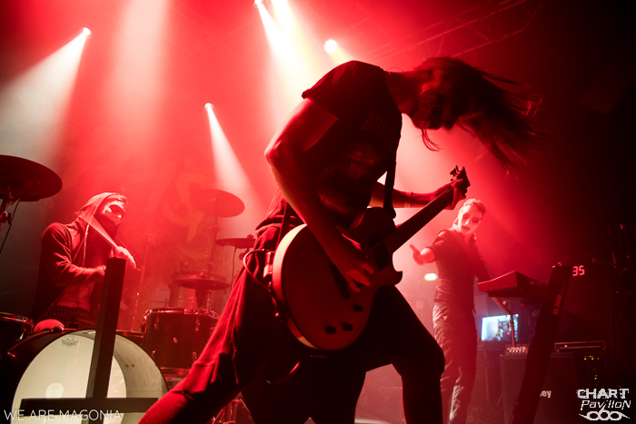 Ce sont les lyonnais de WE ARE MAGONIA qui ont l'honneur d'ouvrir cette soirée. Il s'agit du premier concert de cette formation mais déjà le buzz est fait sur les réseaux sociaux. Nous y reconnaissons d'ailleurs un guitariste et un batteur plutôt connus de la scène lyonnaise puisqu'il s'agit de Jiben et de Flo de IN ARKADIA. Il est plutôt surprenant de les retrouver ici, dans un projet electro indus mais leur présence apporte un plus à cette prestation, c'est certain. WE ARE MAGONIA pourrait paraître difficile d'accès en concert, puisque sa musique est instrumentale. Mais le groupe a su jouer sur le visuel et sa présence pour combler cet espace. On se laisse donc très vite embarquer dans cet univers très riche musicalement. Le buzz est là et il est justifié. Il n' y a pas beaucoup de doute à avoir sur l'avenir de WE ARE MAGONIA. On poursuit la soirée avec ALACRITY. Le groupe nous vient tout droit de LOS ANGELES. Il s'agit du projet de Jason ALACRITY que l'on retrouve ce soir au chant accompagné d'un batteur. C'est plutôt soft comme line up et visuellement moins intéressant que peuvent l'être WE ARE MAGONIA et COMBICRHIST. C'est donc du côté de la musique que l'on porte toute son attention et de ce côté là le groupe se révèle très intéressant. Nous sommes plus du côté d'une sorte d'electro New Wave. On pense notamment à des formations telles que FRONT LINE ASSEMBLY ou encore les norvégiens de APOPTYGMA BERZERK. C'est mélodieux et réussi. Cela dit, avec une batterie, du chant et des samples, le groupe minimise la prise de risque sur l'interprétation live de son répertoire. Un groupe à découvrir. COMBICHRIST est de retour sur Lyon et on ne pouvait pas rater ça. Le groupe bénéficie encore de l'aura de RAMMSTEIN puisqu'il a accompagné le groupe en tournée en 2009. Clairement, ouvrir pour une telle formation ne peut que vous apporter du crédit si votre musique le mérite. Ce coup de projecteur à permis à COMBICHRIST de se faire connaître et sa prestation de 2009 est restée dans les mémoires. 10 années se sont écoulées et le groupe a suivi sa carrière avec pas mal de changements récents dans son line up. Seul Eric13 à la guitare depuis 2014 est resté dans le groupe. On accueille donc Dane WHITE à la batterie et Will SPODNIK aux percussions. Changement de line up et changement d'habitudes vont de paire. Exit les batteries et percussions imposantes face à face. Elles sont dorénavant un peu moins spectaculaires et le kit de percussions ressemble un peu plus à un kit batterie. Mais on peut compter sur Will SPODNIK le percussionniste pour assurer le spectacle debout la plupart du temps derrière ses fûts. COMBICHRIST est là pour nous présenter son petit dernier, « One Fire ». Ce nouvel album se démarque un peu des précédents par des aspects indus un peu plus prononcés. Cela nous donne une prestation énergique, bien plus qu'au CCO 2014 dans mes souvenirs. On se laisse très vite embarquer dans cette ambiance survoltée avec des titres tels que « Hate Like Me », « Shut Up And Swallow », « Satan's Propaganda » ou « Guns At Last Dawn ». On n'oublie pas quelques titres plus anciens comme « Follow The Trail Of Blood » ou « Blut Royale » qui font toujours leur petit effet. On termine cette soirée après un rappel composé de « Get Your Body Beat », « Maggots At The Party » et le nouveau mais déjà fédérateur « One Fire ». SOUNDS LIKE HELL nous aura une nouvelle fois proposé une soirée riche en découverte et confirmations. COMBICHRIST était en pleine forme et ça s'est clairement ressenti. Ces changements lui ont apporté un renouveau non négligeable et qui, même si on regrette toujours les départs, aura profité au groupe et à son public. Pour des raisons de confidentialité YouTube a besoin de votre autorisation pour charger. Pour plus de détails, veuillez consulter nos Politique de confidentialité. |