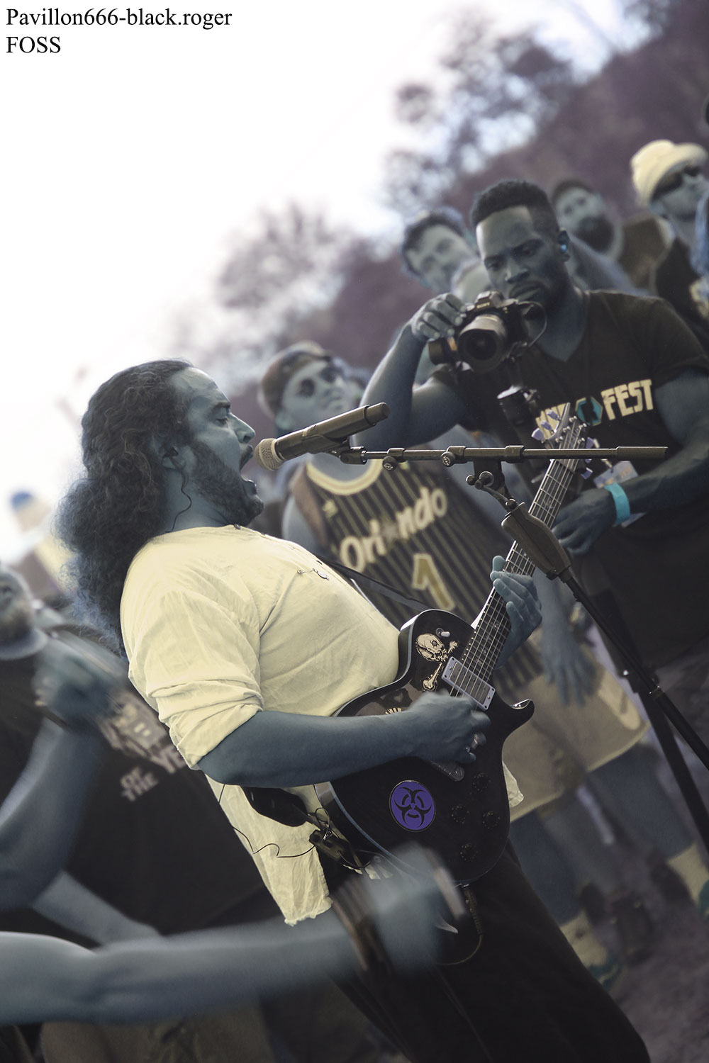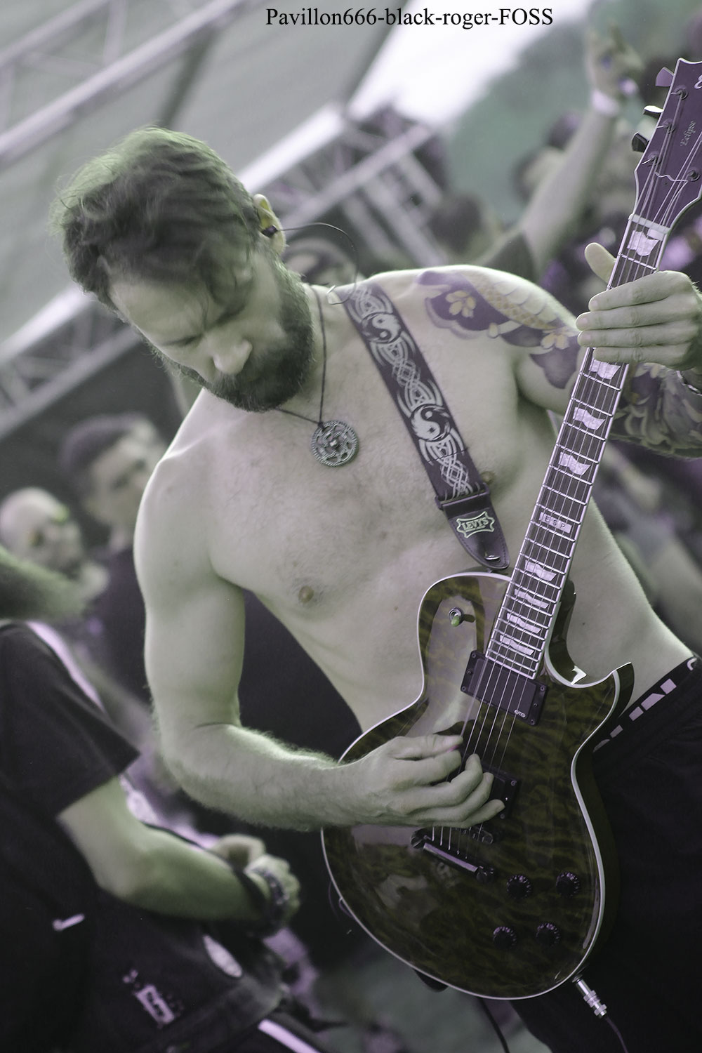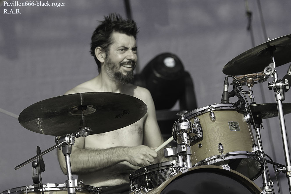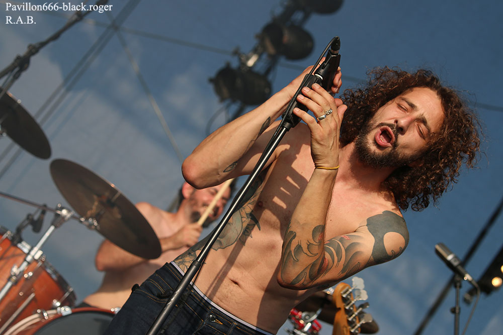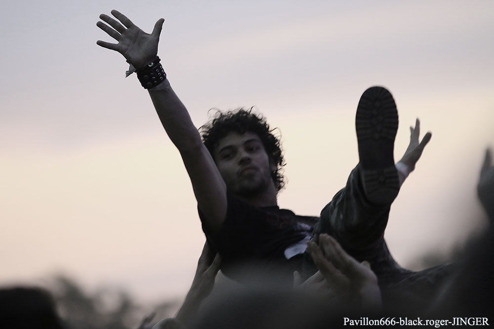 Et dès le Vendredi 5 Juillet, 6 formations vont se succéder sur la grande scène des lieux. Ces lieux agréables et fonctionnels avec tout ce qu’il faut pour satisfaire tous les besoins des festivaliers avec, il faut le souligner, une organisation au top niveau, la sympathie en prime. Alors que la fête commence avec ouverture des portes à 18 heures ce vendredi et une première formation sur les planches dès 19 heures. Alors, pour l’ouverture c’est R.A.B. qui s’y colle. Les Lyonnais sont à l’aise sur scène car il est vrai que la route et les concerts à répétition, ils connaissent. Ici pas de plans alambiqués, pas de dérives fusionnelles, pas de math-rock, mais du rock dur le vrai celui qui tâche dans des dérives désertiques du stoner. Là le groupe nous présente son nouvel album, le rose-album, non en fait c’est le black album vous m’avez compris ! Et cet après-midi dans la chaleur de Montcul ils vont assurer comme des bêtes (de scène) devant un public acquit à leur cause évidemment. Après le rock, voici du brutal, qu’il soit death ou grind avec les incontournables enfants terribles de BENIGHTED. Alors nous allons en prendre plein les dents car rayon boucherie le combo frenchie a tout ce qu’il faut pour vous faire saigner les oreilles je ne vous fais pas un dessin. Du coup le public est aux anges (au diable pardon) et dans la sueur et la bonne humeur on s’éclate, on s’envoie en l’air, sans oublier les circles-pit bien entendu. Benighted avec un Julien rouge comme un coquelicot face au soleil n’a pas déçu (qui a dit comme d’habitude ?) et l’on a pris notre dose de brutalité incontrôlée. Merci les gars ce fus fort bien et même plus, une heure après nos esgourdes sifflent encore ! Le duo FOSS va maintenant jouer dans le public carrément car leur volonté entre autres, c’est de « casser » les codes convenus des concerts « normaux ». Donc tout se passe dans la « fosse » et le public apprécie cette chaleur et cette proximité humaine avec l’embarquement imprévu d’un caméraman dans le circle-pit. Les deux guitaristes envoient du lourd, du metal qui arrache et l’on apprécie car c’est de la « bonne ». Ce duo qui a joué après Benighted reviendra par deux fois entre les groupes suivants afin de vous donner un peu de « rab » en clip. Ce fus bon aussi, décidément, cette journée (soirée) s’annonce bien ! Dire que les Ukrainiens de JINGER étaient très attendus relève d’un doux euphémisme. Grosse affluence donc devant les « crash », une affluence qui s’impatiente. Et puis tout d’un coup Tatiana s’accapare « sa » scène en virevoltant entre « growls » et voix claires, entre émotion et brutalité accompagnée de musiciens tenant le haut du pavé métallique, un metal qui fait mal ou du bien en alternance. Nous allons dire que c’est du metalcore avec tout ce que cela comporte en terme de mélanges, plus ou moins heureux. Jinger semble avoir trouvé sa voix et les festivaliers du jour ne se sont pas posé de question en adhérant pleinement, quelques-uns d’entre eux- apportant quand même des réserves quant à leur succès grandissant, mais bon… Alors on va dire que la musique et le show de ceux venus de l’Est a fait mouche ce soir au Plane-r-Fest, pourquoi pas ? Décidément aujourd’hui on n’a pas peur de mélanger les genres en fusion, mais non confusion. Alors après le metalcore, voici le ragga-metal de la bande à Benji, SKINDRED, qui donne un spectacle mouvementé en live que ce soit sur les planches ou dans le public. Ceux de Londres (anciennement Newport) au Royaume Uni arrivent à réunir sous leur bannière un peu tout le monde, les « keupons » de tous poils, les métalleux purs et durs, les « reggae-men » et les rockers invétérés. Le mriage contre-nature entre reggae et metal, Skindred s’en est fait le dépositaire depuis une vingtaine d’années et la mixture proposée passe comme une « lettre à la poste » et même si vous n’allez pas voir, ces Britishes en live, c’est eux qui viendrons vous chercher c’est inévitable. Bien entendu c’est sur les planches que tout se passe visuellement parlant avec l’inénarrable Benji qui en fait des tonnes et vous interpelle le plus souvent. Finalement vous suivez et en fin de set, tout le monde assis, tout le monde en l’air, vous avez aimé, alors maintenant vous êtes contaminé par cesse fusion hors-norme. Allez hop pour terminer cette nuit agitée voici un peu de polka Finlandaise (humppa) à la sauce metal avec ceux de KORPIKLAANI qui font figure de vétérans dans le folk-metal soit dit en passant. Au menu, vitalité, joie de vivre dans les forêts Finlandaises, mais aussi en live avec ces bûcherons du metal qui feraient danser un « cul de jatte ». Ambiance festive donc au clair de lune à Montcul. L’énergie est toujours présente, la musicalité aussi, alors vous voulez danser ? Oui, tout le monde s’est « éclaté » contre les « crashs » et ce fus bien, je l’ai déjà dit mais le redis, merci Korpi vous revenez quand vous voulez, on aime. Et maintenant au lit où sous la tente au camping, car demain est un autre jour et il vous faudra prendre des forces afin d’affronter le Samedi qui possède un programme chargé, cela va s’en dire ! |