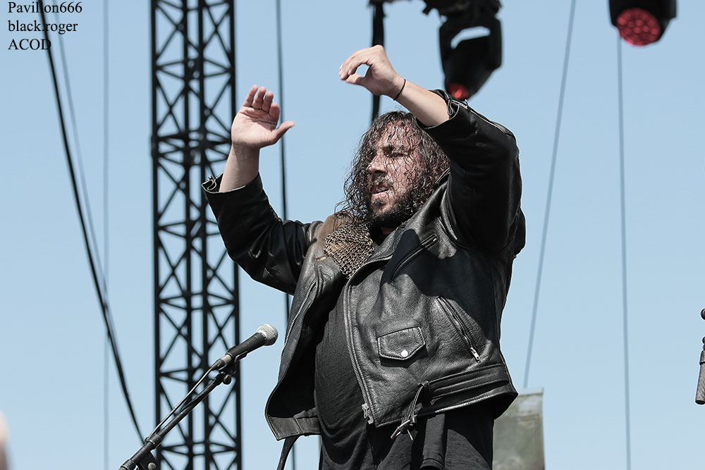 Mâchurés et en « perfecto », ceux d’ACOD n’ont pas peur de la chaleur infernale qui règne devant la grande scène du Plane-R-Fest en ce milieu d’après-midi du Samedi. Mais les Marseillais en ont vu d’autres et leur black-death intense va faire remuer le pit dès les premiers titres.