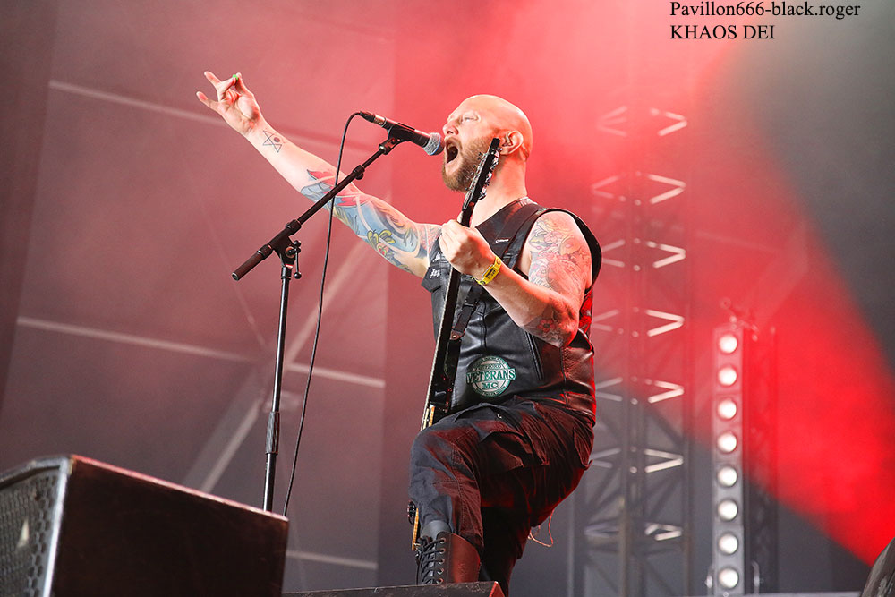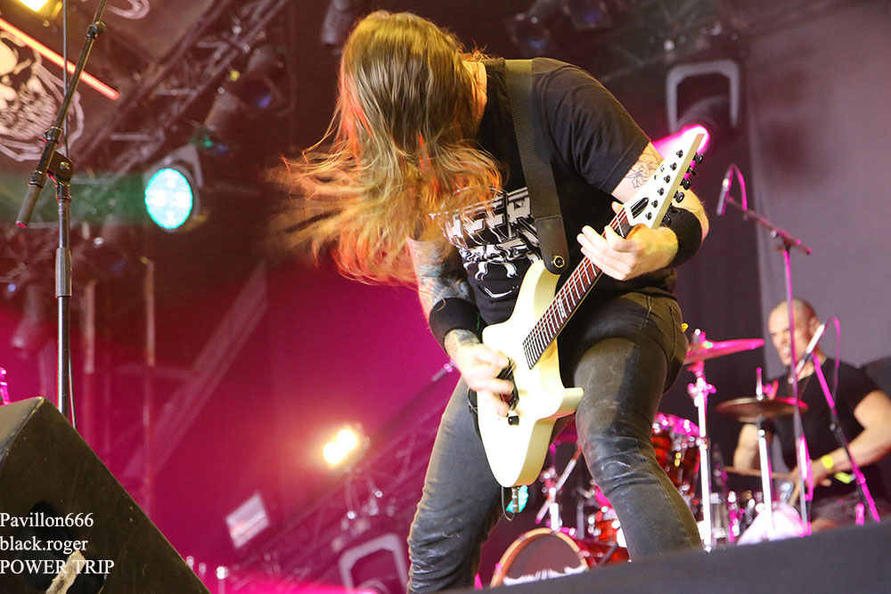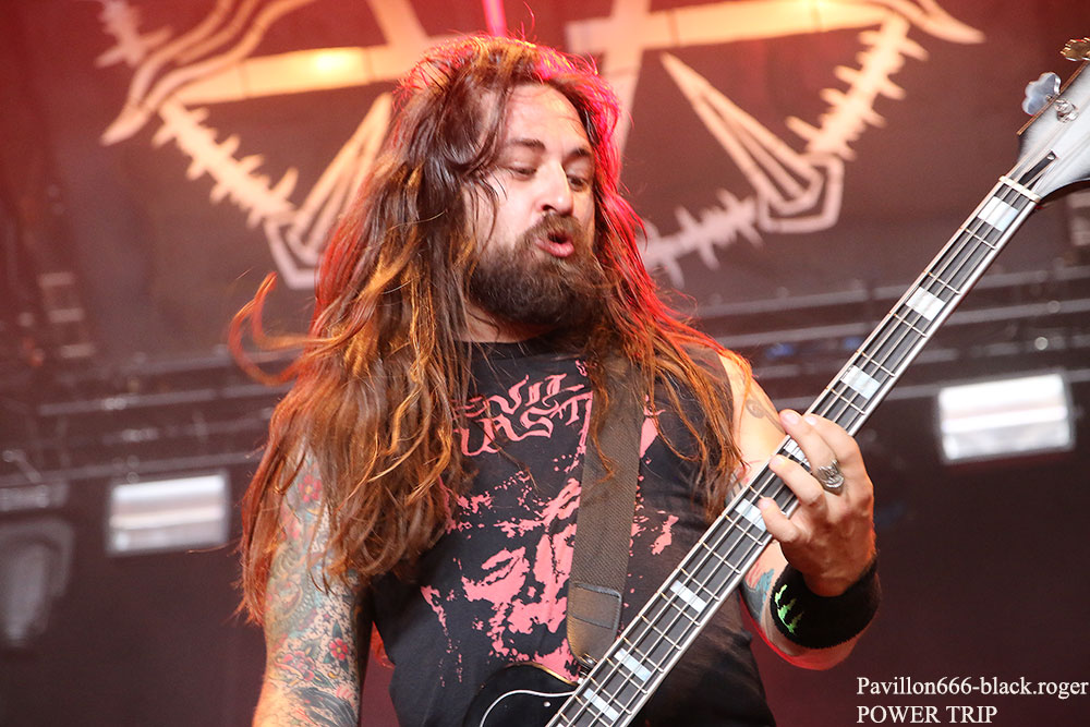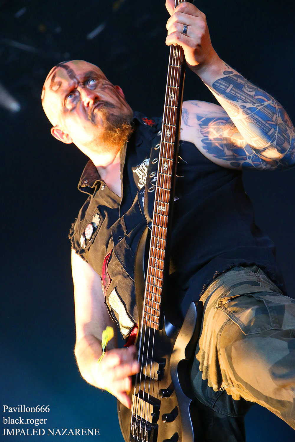 Pavillon666 avait délégué deux chroniqueurs/photographes afin de couvrir cette fête du rock/metal/hardcore/punk et plus si affinité. Voici tout d’abord la chronique et les photos de black-roger pour la journée du Vendredi 21 Juin ; Jean-Philippe vous fera part de ses impressions et photos sur un autre post, alors bonne lecture ! KHAOS DEI – 11 heure 05 – Temple Je commence cette journée du Vendredi avec du black-metal frenchie, Khaos dei ayant frappé les esprits avec son second « méfait » intitulé « catechism », une ode à Satan, un Satan guerrier. Ici pas de compromis ni de carton-pâte, le black du trio part en guerre avec un chant guttural parfois, crié aussi pour des compositions bien travaillées sur des paroles en français SVP, la noirceur est là bien palpable. SUBLIME CADAVERIC DECOMPOSITION – 11 heure 40 – Altar Sur la scène à côté de la Temple, l’Altar, on nous propose du grindcore, mais pas n’importe lequel, celui de Sublime Cadaveric Décomposition. Le trio « parigot » n’est pas venu au Hellfest pour enfiler des perles c’est certain. Alors que ce soit en petit club ou sur une grande scène SCD est à l’aise et vous emmène dans son « porno-gore » mâtiné de black, bien épais, bien « crade », sans concession. SCD sublime le grindcore, c’est sans appel, alors fatalement on aime sans faux semblant. GLORYHAMMER – 12 heure 15 –Mainstage 1 Et puis hop, en passant devant la mainstage 1 nous ne pouvons que nous arrêter et apprécier (ou pas) les aventures spatiales, « heroïc fantasy » et power-metal de Gloryhammer qui nous présente en live son nouvel opus « legends from beyond the galactic terror vortex », mais pas que ! Voyage intersidéral coloré garanti en live. UADA – 13 heure 35 – Temple Retour à la Temple pour du black à nouveau, celui de UADA venu de Portland, Oregon, afin de nous brutaliser avec du B.M 90’ classique mais d’une efficacité redoutable. Ces encapuchonnés ont tout comprit au film de l’agressivité entrecoupée de mélodies empoisonnées. Du coup en live on déguste ce mix bien agencé techniquement et visuellement, on aime tout simplement. DAUGHTERS – 14 heure 20 – Altar Après 8 ans de silence radio, Daughters remet les pendules du rock nerveux à l’heure. En effet ils ne nous offrent pas seulement du binaire, mais du mathcore et de la noise à vous coller au plafond de votre salon. Et en live c’est une autre histoire, le quatuor se déchaine et le frontman suivi de ses acolytes sort le plus souvent sur les « crash-barrières » et dans le public, alors c’est complètement dément, jouissif et violent en même temps, quelle baffe mes amis pour un retour fracassant sur les planches ! POWER TRIP – 16 heure 00 – Altar Même scène que Daughters, même combat, si j’ose m’exprimer ainsi avec les « ricains » de Power Trip qui vont nous infliger une « raclée » crossover/thrashcore pas piquée des vers. Power trip en live met tout le monde d’accord, que vous soyez métalleux dans l’âme ou « coreux » en casquette, ça fait mal, très mal (enfin ça fait du bien quoi !). L’an dernier à Genève j’avais pris une baffe sur la joue droite et aujourd’hui à Clisson j’en ai pris une sur la joue gauche. Mais je suis prêt à les revoir encore et encore, la classe quoi ! PESTILENCE – 17 heure 40 – Altar Voici donc des death métalleux mythiques spécialistes des séparations/reformations depuis 1986. Alors en cette fin d’après-midi du vendredi nous profitons de la prestation des Hollandais toujours emmenés par l’incontournable Patrick Mameli. Pestilence, l’un des groupes fondateurs du death-metal Européen continue sur sa lancée nous offrant son death, certes old-school et technique, mais innovant dorénavant avec des touches plus modernes. Bref, ce fus un set excellent donné à Clisson pour les amateurs du genre. IMPALED NAZARENE – 18 heure 35 – Temple Ce sont des blackeux peut-être, des punks sûrement, des extrémistes purs et durs et provocateurs, enfin quoi ! Ces Finlandais incontrôlables et incontrôlés. Impaled Nazarene nous propose donc son « nuclear metal » depuis l’an 1990 et reste fidèle à son style, si style il y a bien entendu. De toutes façon avec eux c’est rapide, tranchant et répétitif à souhait ; et on en ressort pas indemne à la fin de leur set, quelle haine, quelle destruction, incroyable ! KVELERTAK – 19 heure 40 – Altar Dire que les Norvégiens de Kvelertak étaient très attendus serait un doux euphémisme. En effet la scène Altar a fait le plein et même plus pour leur show très chaud. Alors, punk-hardcore, black n’roll et plus si besoin tout est mis en œuvre pour vous donner le tournis ; ça virevolte dans tous les sens et ça tabasse sec dans un style vraiment surprenant et atypique et tout cela en Norvégien, CQFD. Leur set fut donc explosif ce soir au Hellfest, un set incroyable, mouvementé et même envoutant, très particulier quoi mais accrocheur en diable tout simplement, nous avons donc adoré ! VENOM INC. – 20 heure 45 – Temple A l’origine nous avions Venom, maintenant nous avons deux Venom et ce soir c’est Venom Inc. Qui est là devant nous à 20 heure 465 sous la Temple pour un moment…peut-être nostalgique qui sait avec Mantas et Abaddon (ex- qui vous savez…), et Tony Dolan au chant/basse. Les Anglais nous proposent une ambiance bien old-school, spped/punk/heavy/thrash comme au bon vieux temps de Cronos ‘oups !). N’empêche que la reprise du fameux titre « black-metal » fait du bien dans les cages à miel. Merci Venom Inc. Vous assure, on aime. POSSESSED – 21 heure 50 – Altar Pionniers du death-metal les « ricains » de POSSESSED avaient mis fin à leurs activités en 1987. Mais l’appel du metal extrême a fait son œuvre et depuis 2007 le groupe est remonté sur scène régulièrement en sortant même un nouvel opus intitulé « revelations of oblivion » en cette