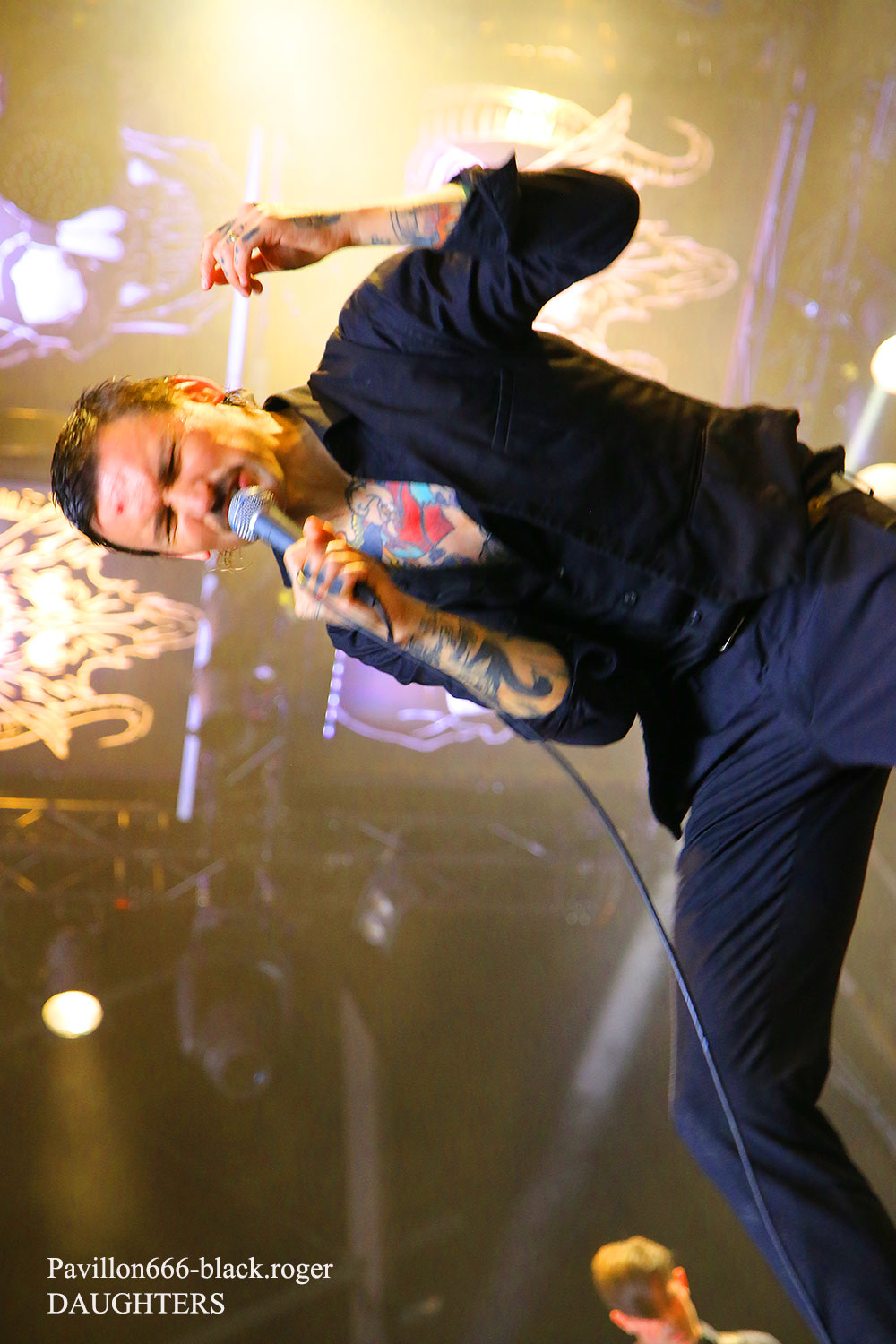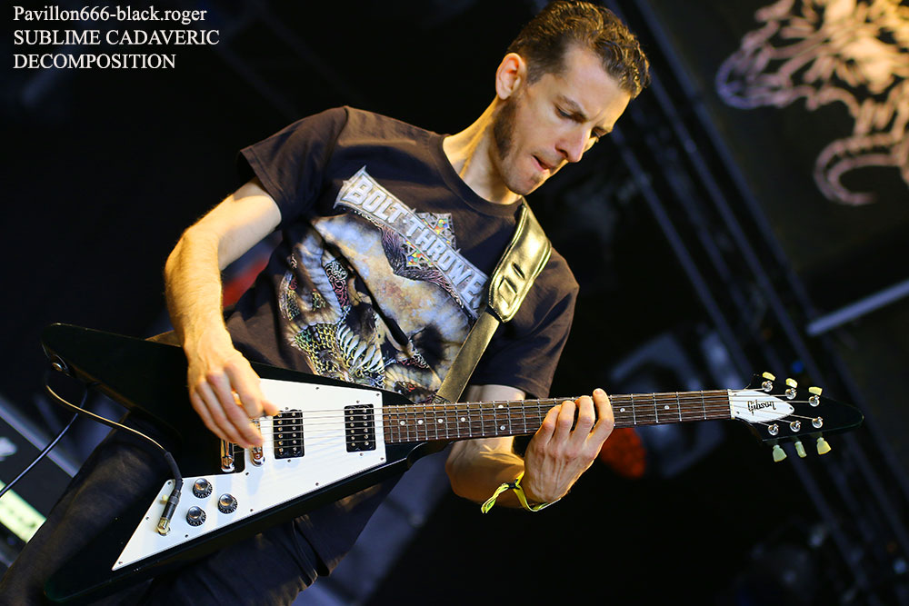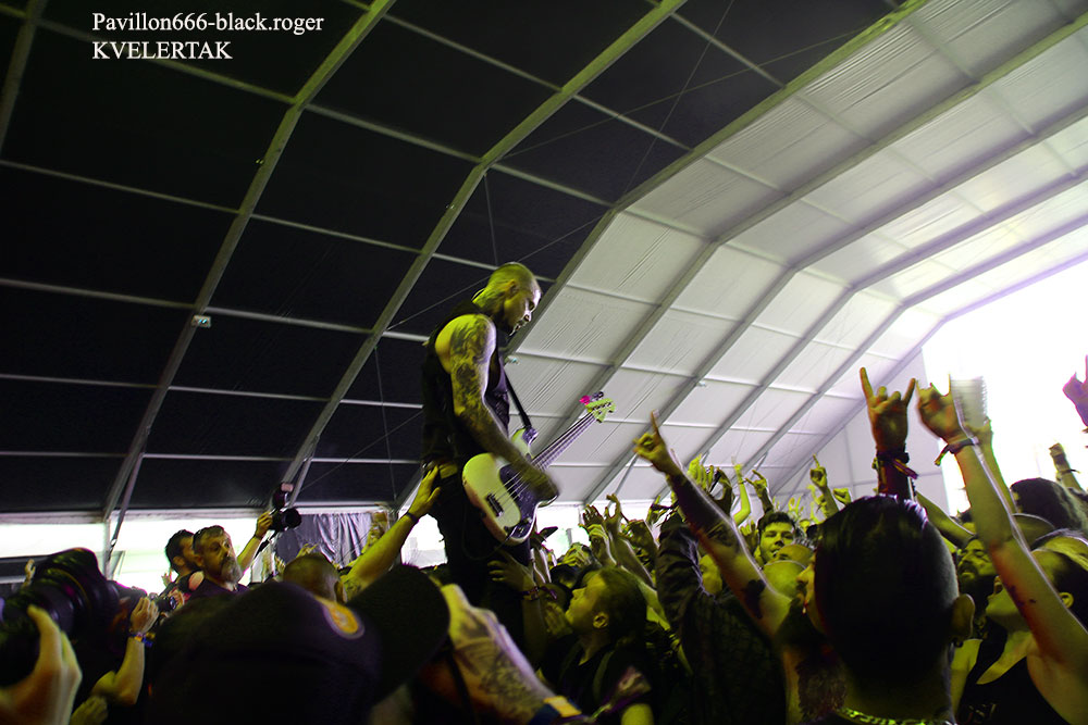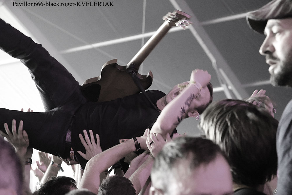 Pavillon666 avait délégué deux chroniqueurs/photographes afin de couvrir cette fête du rock/metal/hardcore/punk et plus si affinité. Voici tout d’abord la chronique et les photos de black-roger pour la journée du Vendredi 21 Juin ; Jean-Philippe vous fera part de ses impressions et photos sur un autre post, alors bonne lecture ! KHAOS DEI – 11 heure 05 – Temple Je commence cette journée du Vendredi avec du black-metal frenchie, Khaos dei ayant frappé les esprits avec son second « méfait » intitulé « catechism », une ode à Satan, un Satan guerrier. Ici pas de compromis ni de carton-pâte, le black du trio part en guerre avec un chant guttural parfois, crié aussi pour des compositions bien travaillées sur des paroles en français SVP, la noirceur est là bien palpable. SUBLIME CADAVERIC DECOMPOSITION – 11 heure 40 – Altar Sur la scène à côté de la Temple, l’Altar, on nous propose du grindcore, mais pas n’importe lequel, celui de Sublime Cadaveric Décomposition. Le trio « parigot » n’est pas venu au Hellfest pour enfiler des perles c’est certain. Alors que ce soit en petit club ou sur une grande scène SCD est à l’aise et vous emmène dans son « porno-gore » mâtiné de black, bien épais, bien « crade », sans concession. SCD sublime le grindcore, c’est sans appel, alors fatalement on aime sans faux semblant. GLORYHAMMER – 12 heure 15 –Mainstage 1 Et puis hop, en passant devant la mainstage 1 nous ne pouvons que nous arrêter et apprécier (ou pas) les aventures spatiales, « heroïc fantasy » et power-metal de Gloryhammer qui nous présente en live son nouvel opus « legends from beyond the galactic terror vortex », mais pas que ! Voyage intersidéral coloré garanti en live. UADA – 13 heure 35 – Temple Retour à la Temple pour du black à nouveau, celui de UADA venu de Portland, Oregon, afin de nous brutaliser avec du B.M 90’ classique mais d’une efficacité redoutable. Ces encapuchonnés ont tout comprit au film de l’agressivité entrecoupée de mélodies empoisonnées. Du coup en live on déguste ce mix bien agencé techniquement et visuellement, on aime tout simplement. DAUGHTERS – 14 heure 20 – Altar Après 8 ans de silence radio, Daughters remet les pendules du rock nerveux à l’heure. En effet ils ne nous offrent pas seulement du binaire, mais du mathcore et de la noise à vous coller au plafond de votre salon. Et en live c’est une autre histoire, le quatuor se déchaine et le frontman suivi de ses acolytes sort le plus souvent sur les « crash-barrières » et dans le public, alors c’est complètement dément, jouissif et violent en même temps, quelle baffe mes amis pour un retour fracassant sur les planches ! POWER TRIP – 16 heure 00 – Altar Même scène que Daughters, même combat, si j’ose m’exprimer ainsi avec les « ricains » de Power Trip qui vont nous infliger une « raclée » crossover/thrashcore pas piquée des vers. Power trip en live met tout le monde d’accord, que vous soyez métalleux dans l’âme ou « coreux » en casquette, ça fait mal, très mal (enfin ça fait du bien quoi !). L’an dernier à Genève j’avais pris une baffe sur la joue droite et aujourd’hui à Clisson j’en ai pris une sur la joue gauche. Mais je suis prêt à les revoir encore et encore, la classe quoi ! PESTILENCE – 17 heure 40 – Altar Voici donc des death métalleux mythiques spécialistes des séparations/reformations depuis 1986. Alors en cette fin d’après-midi du vendredi nous profitons de la prestation des Hollandais toujours emmenés par l’incontournable Patrick Mameli. Pestilence, l’un des groupes fondateurs du death-metal Européen continue sur sa lancée nous offrant son death, certes old-school et technique, mais innovant dorénavant avec des touches plus modernes. Bref, ce fus un set excellent donné à Clisson pour les amateurs du genre. IMPALED NAZARENE – 18 heure 35 – Temple Ce sont des blackeux peut-être, des punks sûrement, des extrémistes purs et durs et provocateurs, enfin quoi ! Ces Finlandais incontrôlables et incontrôlés. Impaled Nazarene nous propose donc son « nuclear metal » depuis l’an 1990 et reste fidèle à son style, si style il y a bien entendu. De toutes façon avec eux c’est rapide, tranchant et répétitif à souhait ; et on en ressort pas indemne à la fin de leur set, quelle haine, quelle destruction, incroyable ! KVELERTAK – 19 heure 40 – Altar Dire que les Norvégiens de Kvelertak étaient très attendus serait un doux euphémisme. En effet la scène Altar a fait le plein et même plus pour leur show très chaud. Alors, punk-hardcore, black n’roll et plus si besoin tout est mis en œuvre pour vous donner le tournis ; ça virevolte dans tous les sens et ça tabasse sec dans un style vraiment surprenant et atypique et tout cela en Norvégien, CQFD. Leur set fut donc explosif ce soir au Hellfest, un set incroyable, mouvementé et même envoutant, très particulier quoi mais accrocheur en diable tout simplement, nous avons donc adoré ! VENOM INC. – 20 heure 45 – Temple A l’origine nous avions Venom, maintenant nous avons deux Venom et ce soir c’est Venom Inc. Qui est là devant nous à 20 heure 465 sous la Temple pour un moment…peut-être nostalgique qui sait avec Mantas et Abaddon (ex- qui vous savez…), et Tony Dolan au chant/basse. Les Anglais nous proposent une ambiance bien old-school, spped/punk/heavy/thrash comme au bon vieux temps de Cronos ‘oups !). N’empêche que la reprise du fameux titre « black-metal » fait du bien dans les cages à miel. Merci Venom Inc. Vous assure, on aime. POSSESSED – 21 heure 50 – Altar Pionniers du death-metal les « ricains » de POSSESSED avaient mis fin à leurs activités en 1987. Mais l’appel du metal extrême a fait son œuvre et depuis 2007 le groupe est remonté sur scène régulièrement en sortant même un nouvel opus intitulé « revelations of oblivion » en cette
