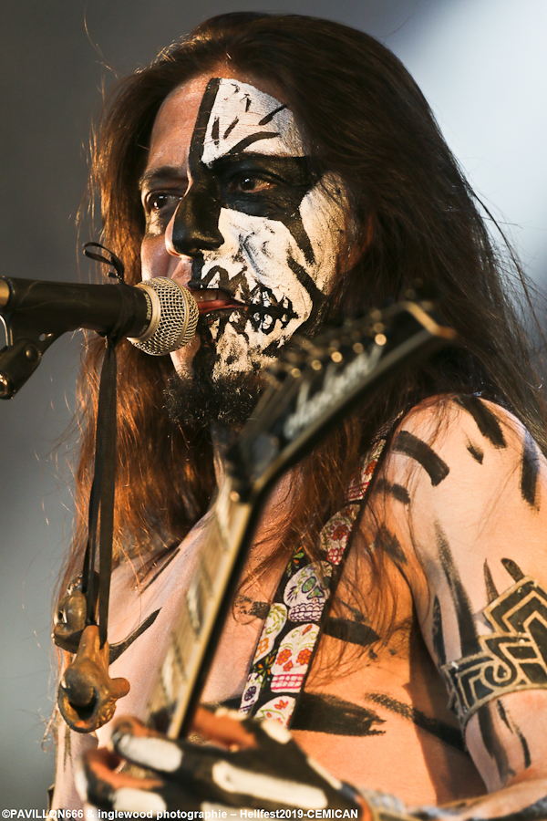 Voilà bien le type d’ovni que l’on ne voit qu’au Hellfest. Un groupe mexicain mêlant musique traditionnelle et black métal. Très original dans sa présentation et les costumes ainsi que les interventions rituelles (simulations de sacrifices …), le côté musical est un peu moins intéressant. Globalement un bon moment.