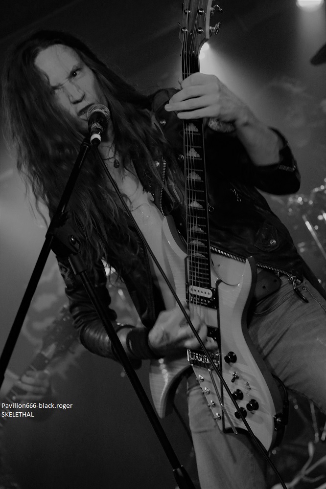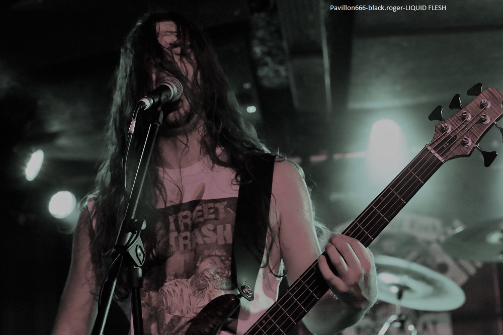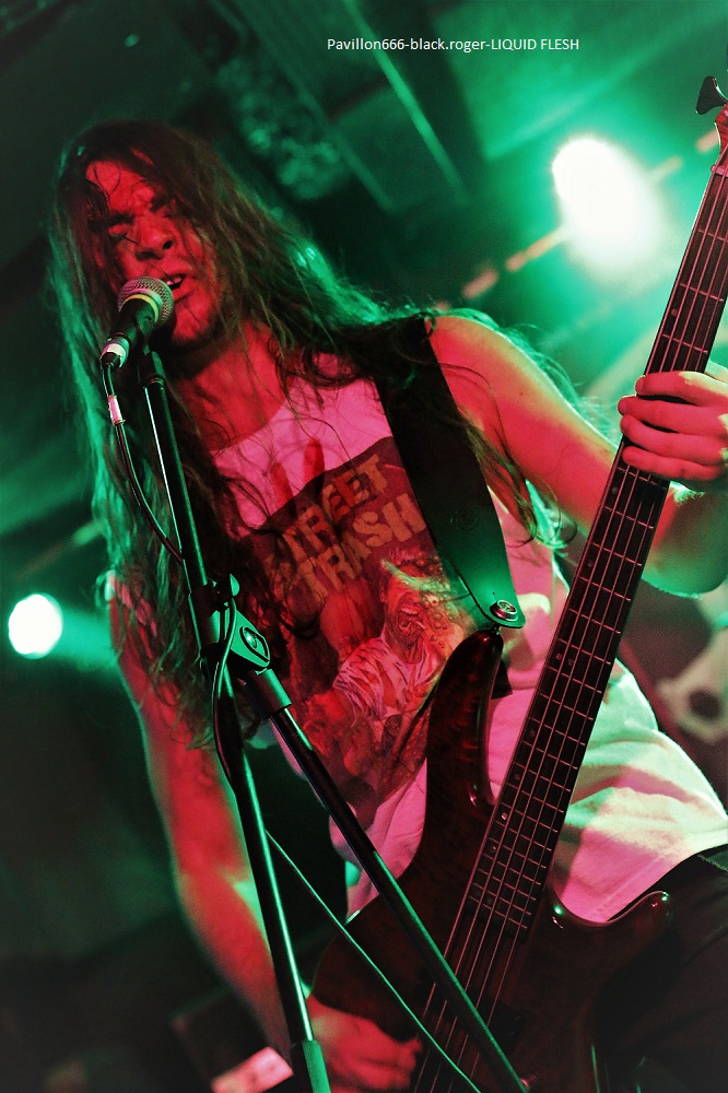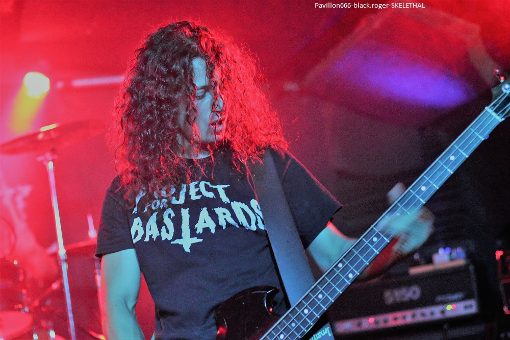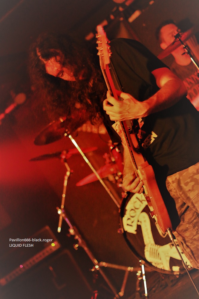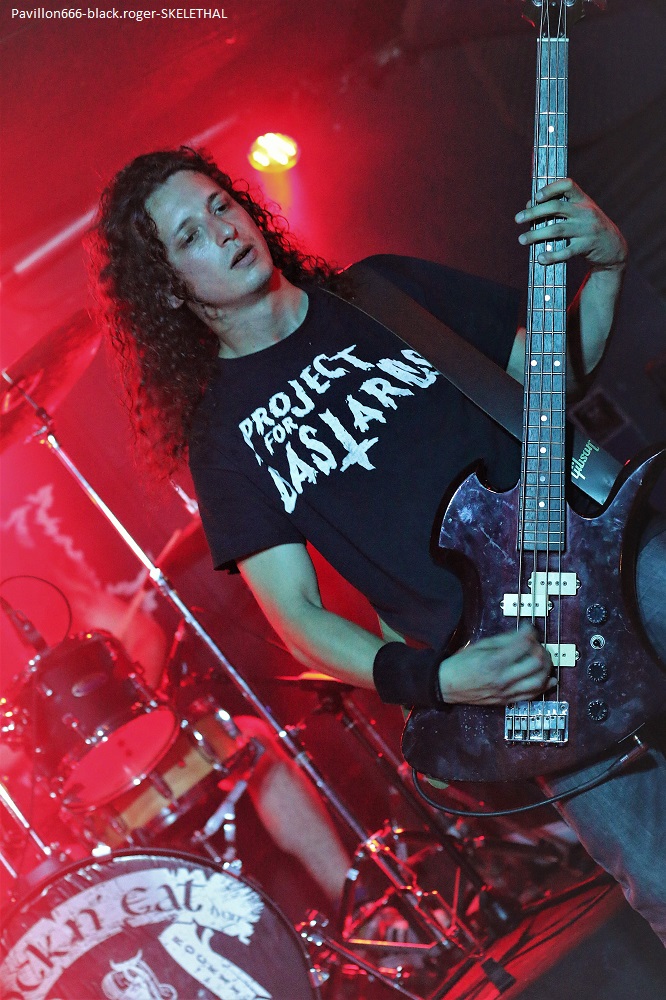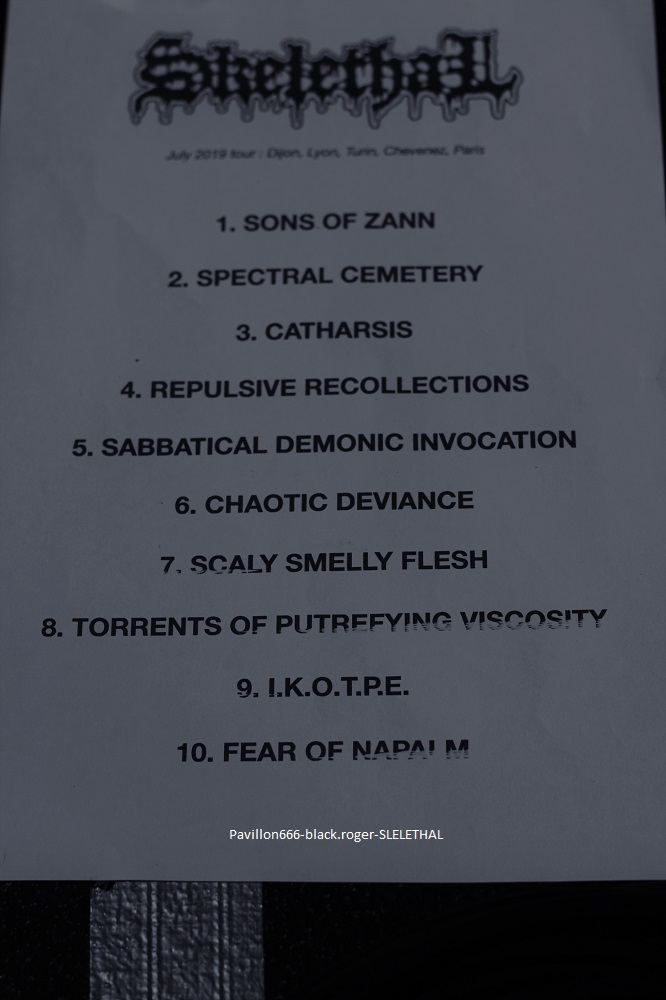 LIQUID FLESH se présente à nous sous la forme d’un trio de retour après un break assez long il me semble. Au menu du death inspiré par les films d’horreur dont les compositions avaient été gravées sur leur CD de 2016 « spontaneous liquefaction », tout un programme. Leur death tient la route avec un côté death’n roll (Entombed ?) pas désagréable du tout qui va faire bouger enfin le public sur le dernier titre quand même ! Set-list en photo ABSOLVTION quant à lui donne plutôt dans le black/death bien sombre. Ces nantais viennent de sortir un split-CD intituklé « elegy of purification » avec Goatslave. Ils reprendront des titres de cette galette ce soir mais pas que. Alors que dire en fait de leur prestation ? Pour être franc je n’ai pu apprécier à leur juste valeur leurs compositions car le son ne leur était pas favorable ce soir. Donc je ne m’avancerai pas plus loin tout en souhaitant les revoir dans de meilleures conditions. Set-list en photo Les Lillois de SKELETHAL placent d’entrée de jeu la barre très haute dans le domaine du death-metal sauvage. A leur actif, deux EPs et un album intitulé « of the dephts… » et des concerts bien entendu. Au menu du death old-school qui fait mouche, c’est furieux, sauvage (je l’ai déjà dit) et les maitres du death Suédois ne sont pas loin. Ici ce soir au Rock n’Eat ils vont enchanter le public qui va s’agiter dans tous les sens dès les premiers titres, il n’y a pas photo ! Compositions variées, présence et tranchant y sont pour beaucoup, alors ce fus bien, énorme sûrement, nous avons tous aimé je crois. Set-list en photo. Merci donc au Rock n’Eat pour cette soirée du metal-de-la-mort et merci aux trois formations qui ont donné le meilleur d’eux-mêmes sur les planches. |